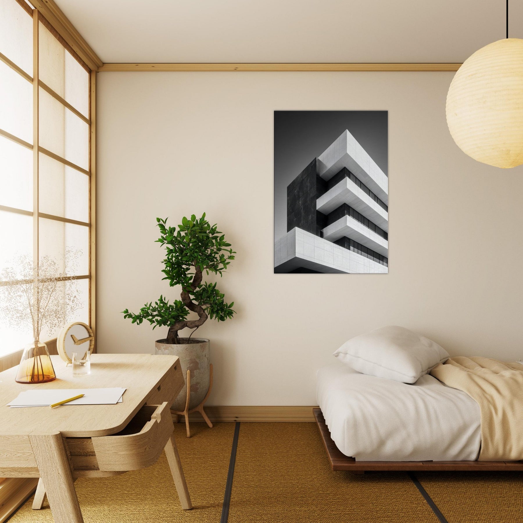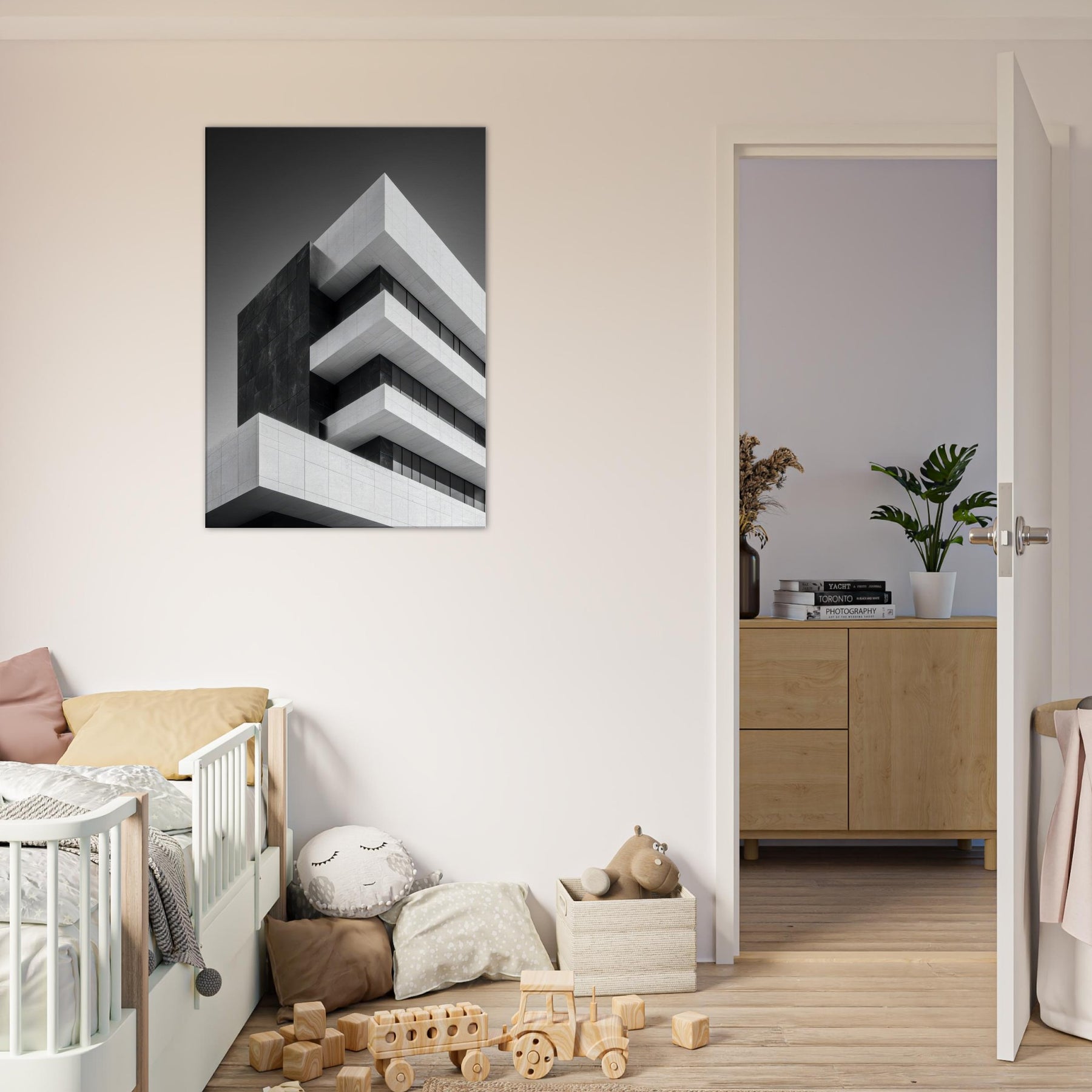 Bauhaus Blocks arrives as a quiet conversation of form and shadow, a black and white ode to disciplined geometry. The composition folds light and shadow into layered ranges, inviting the eye to travel and pause. The Primary Subject, Bauhaus Blocks, anchors a room with timeless balance, turning walls into a gallery of calm precision. Perfect above a sofa, dining nook, or entry, it elevates surroundings with sculptural elegance, translating a modern ethos into everyday mood cool, refined, and deeply breathable.
