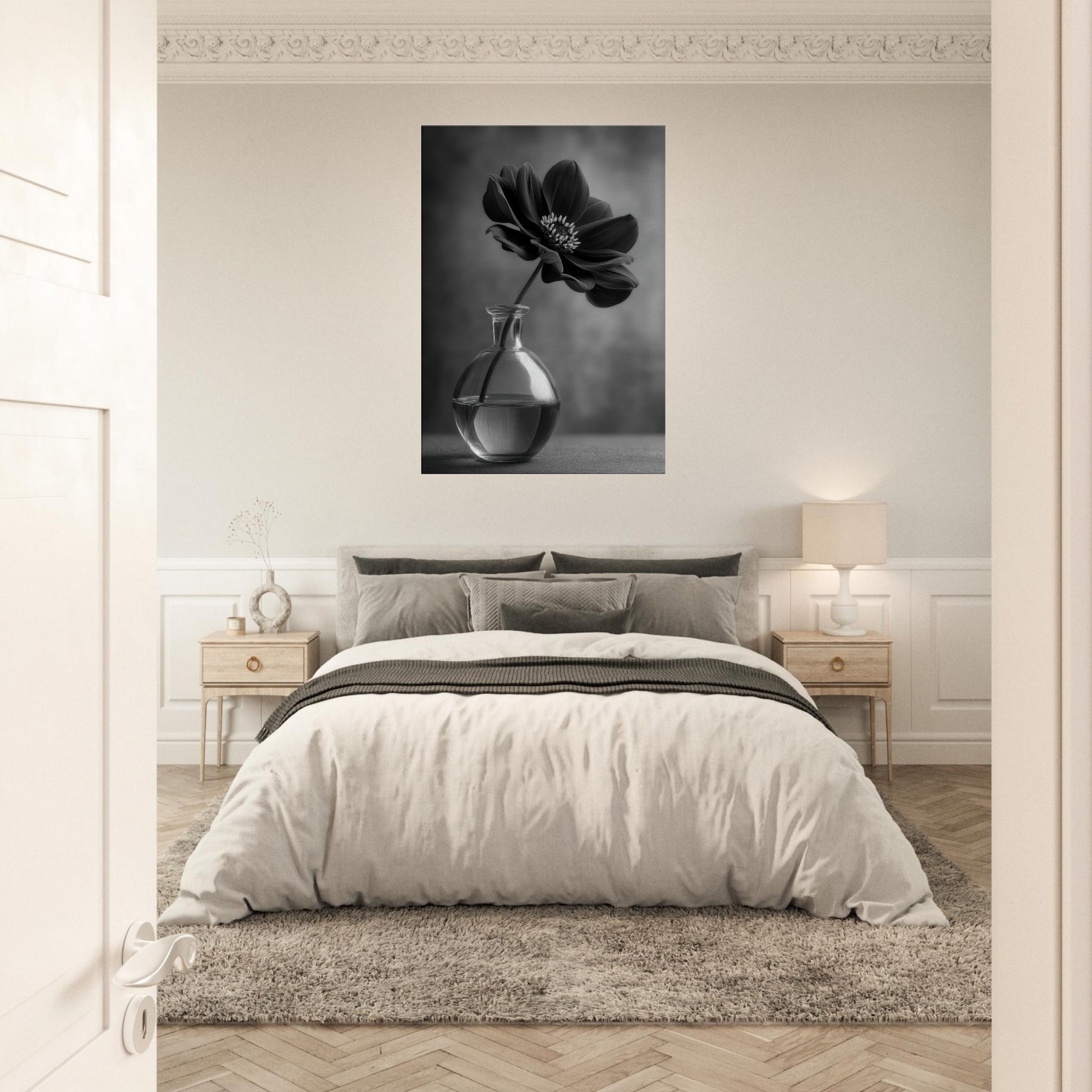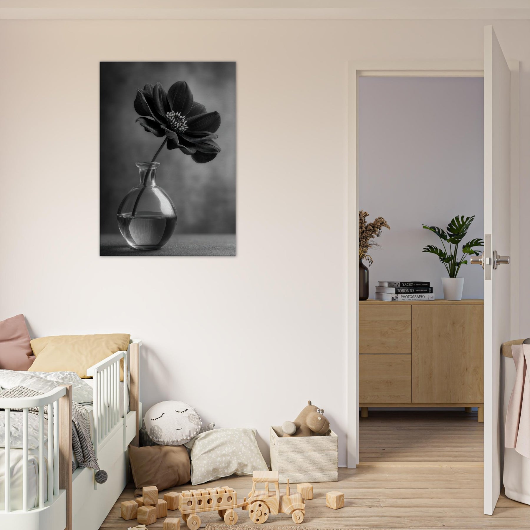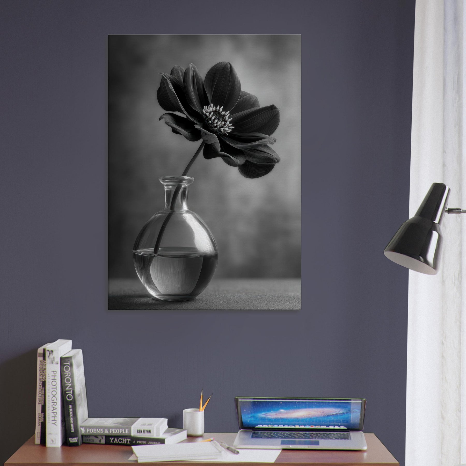 An intimate study in contrast, this Single Flower In Vase rises from soft light, its petals curling with quiet purpose. The monochrome palette magnifies texture the velvet bloom, the clear glass, the slender stem inviting a calm, contemplative mood to any room. Place this piece where you seek focus and a gentle pause: a living room wall, a reading nook, or above a desk. The subject brings luminous simplicity, turning everyday stillness into an artful moment.