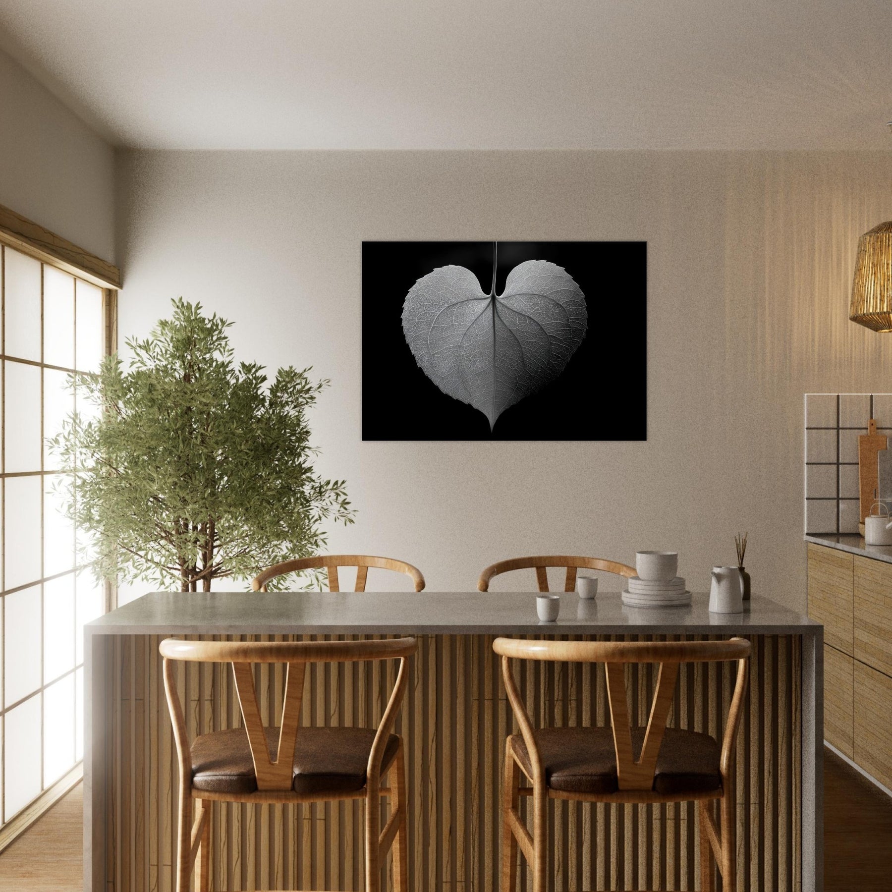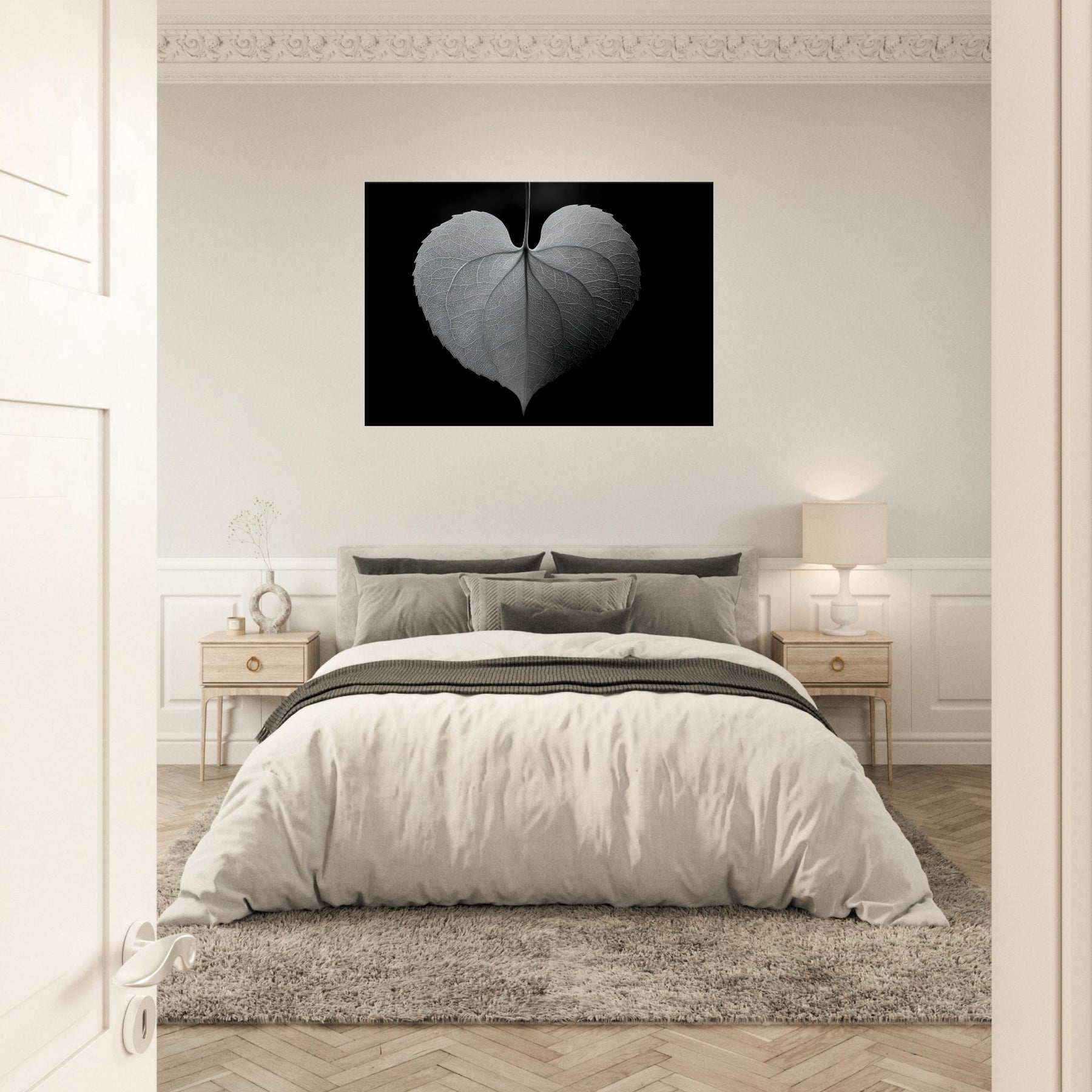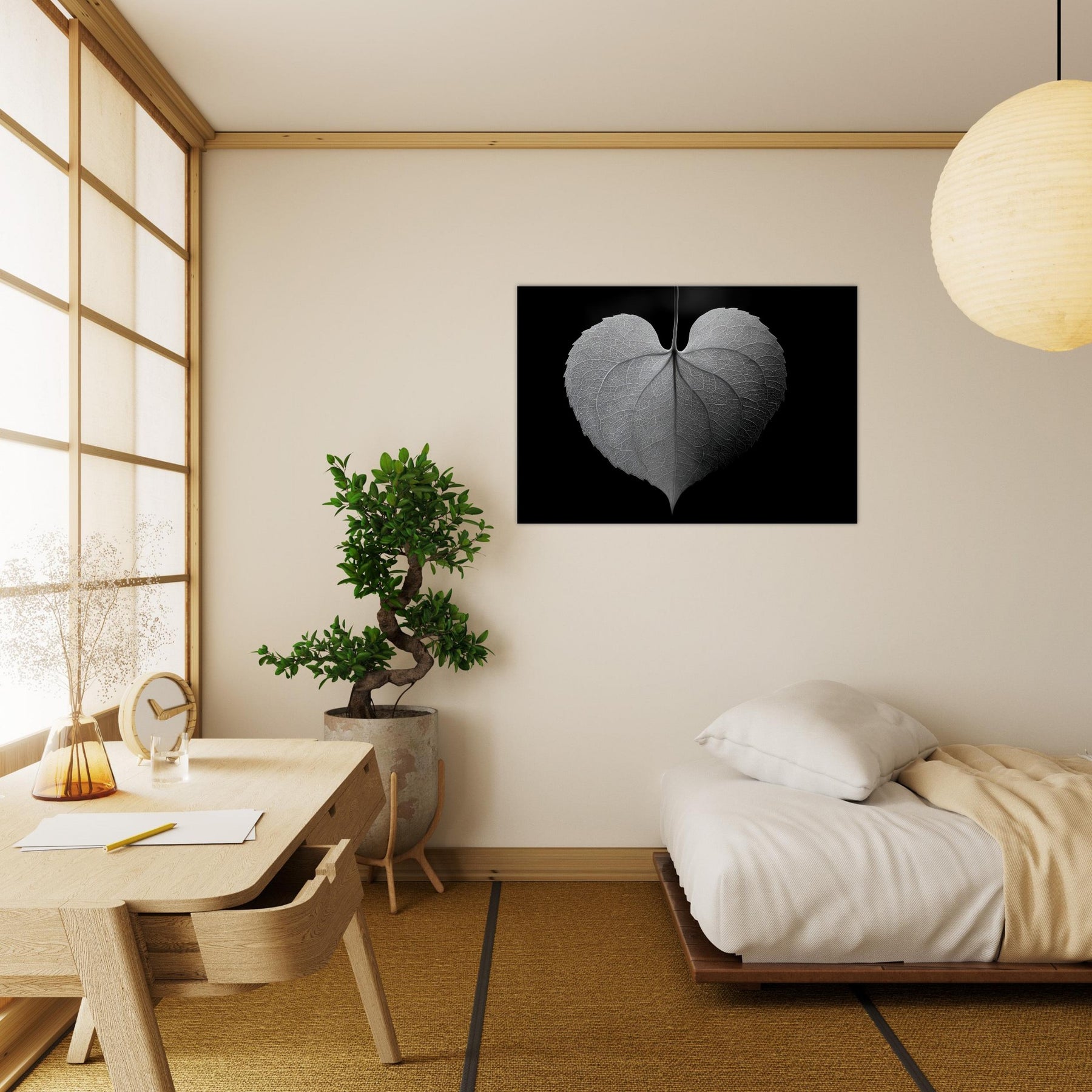 Hang it to soften a modern living room, letting the subtle contrast slow the room’s tempo. The Bodhi Leaf, as the primary subject, seems to hover in a velvet abyss, inviting contemplation, balance, and a serene aura that lends depth, ritual, and timeless calm to your walls.