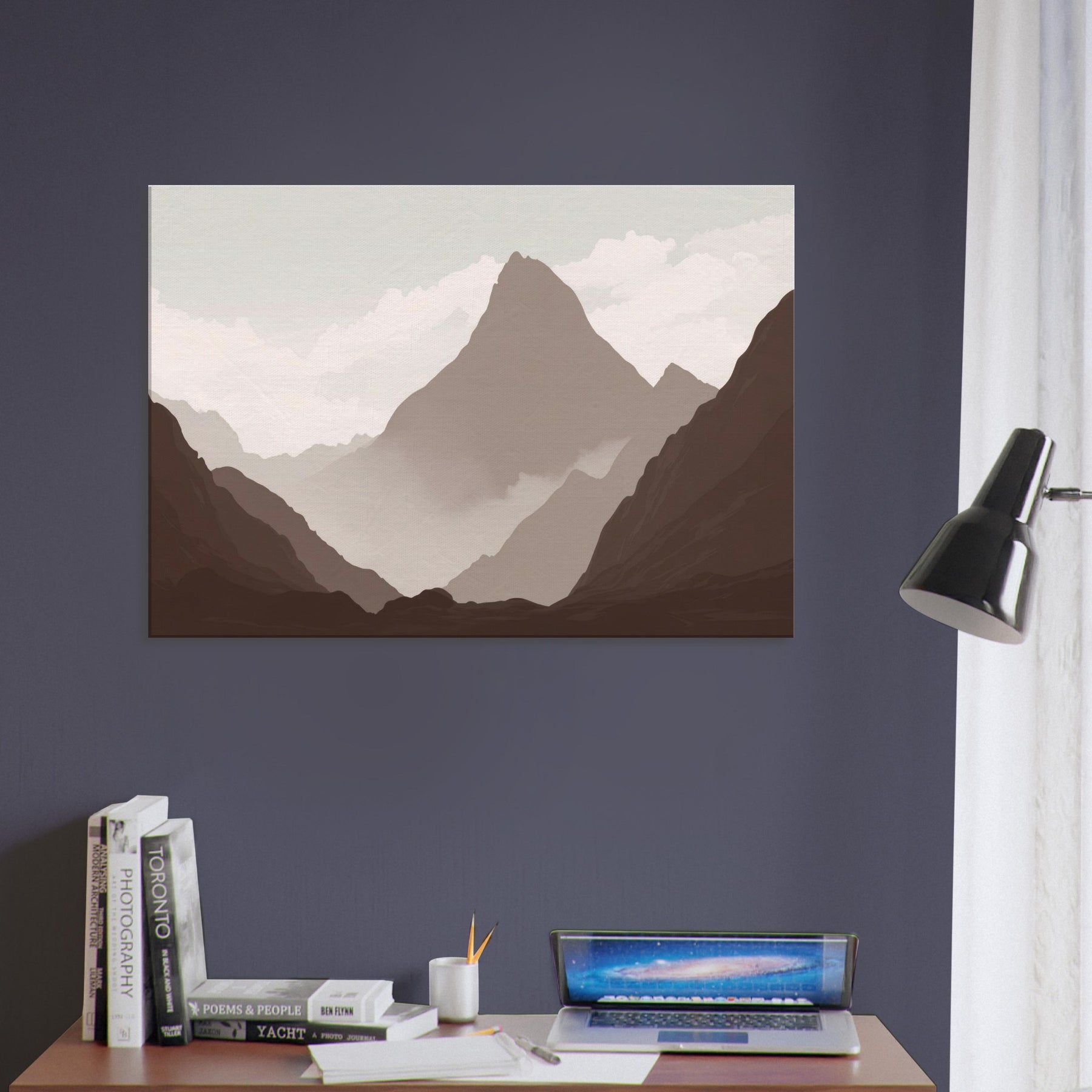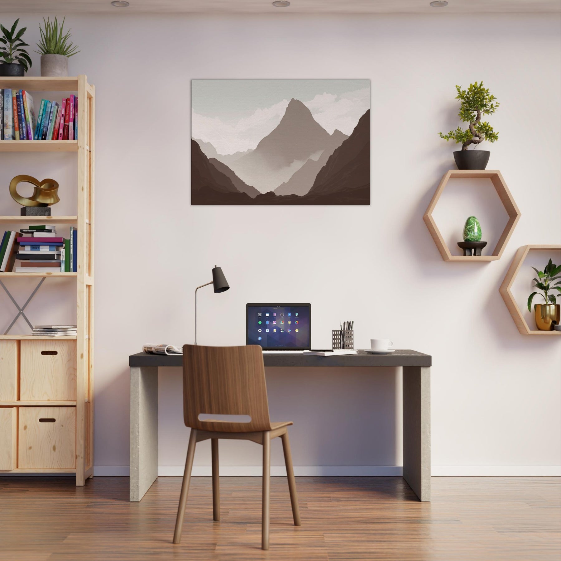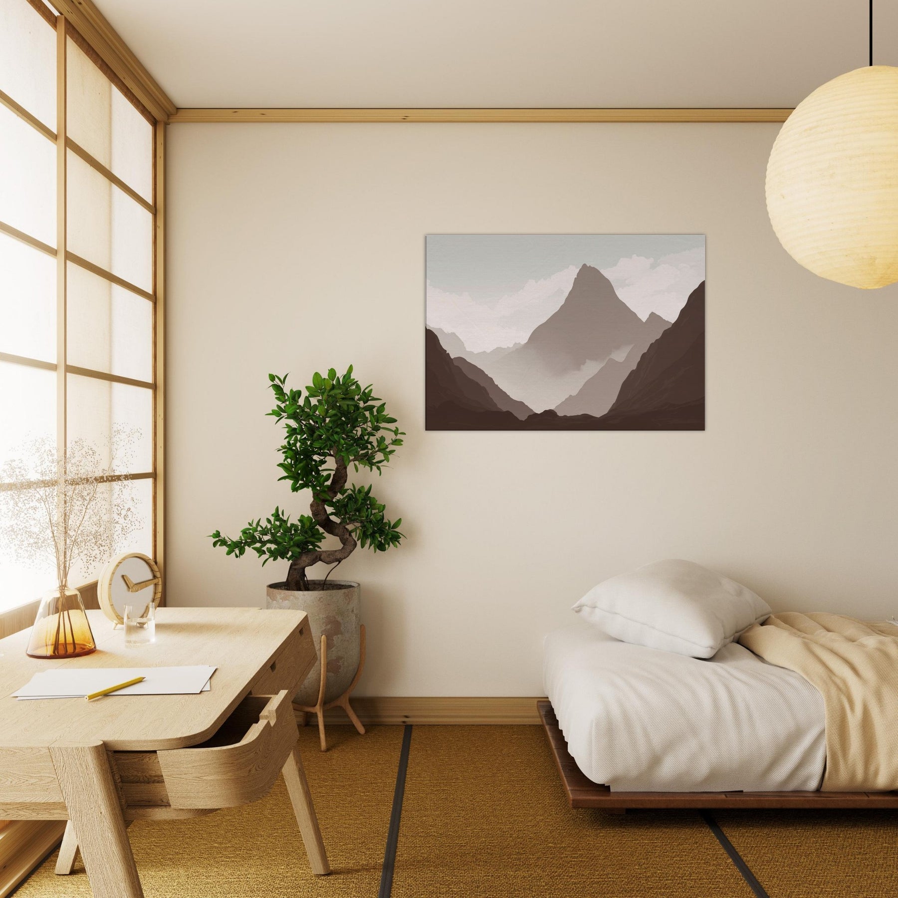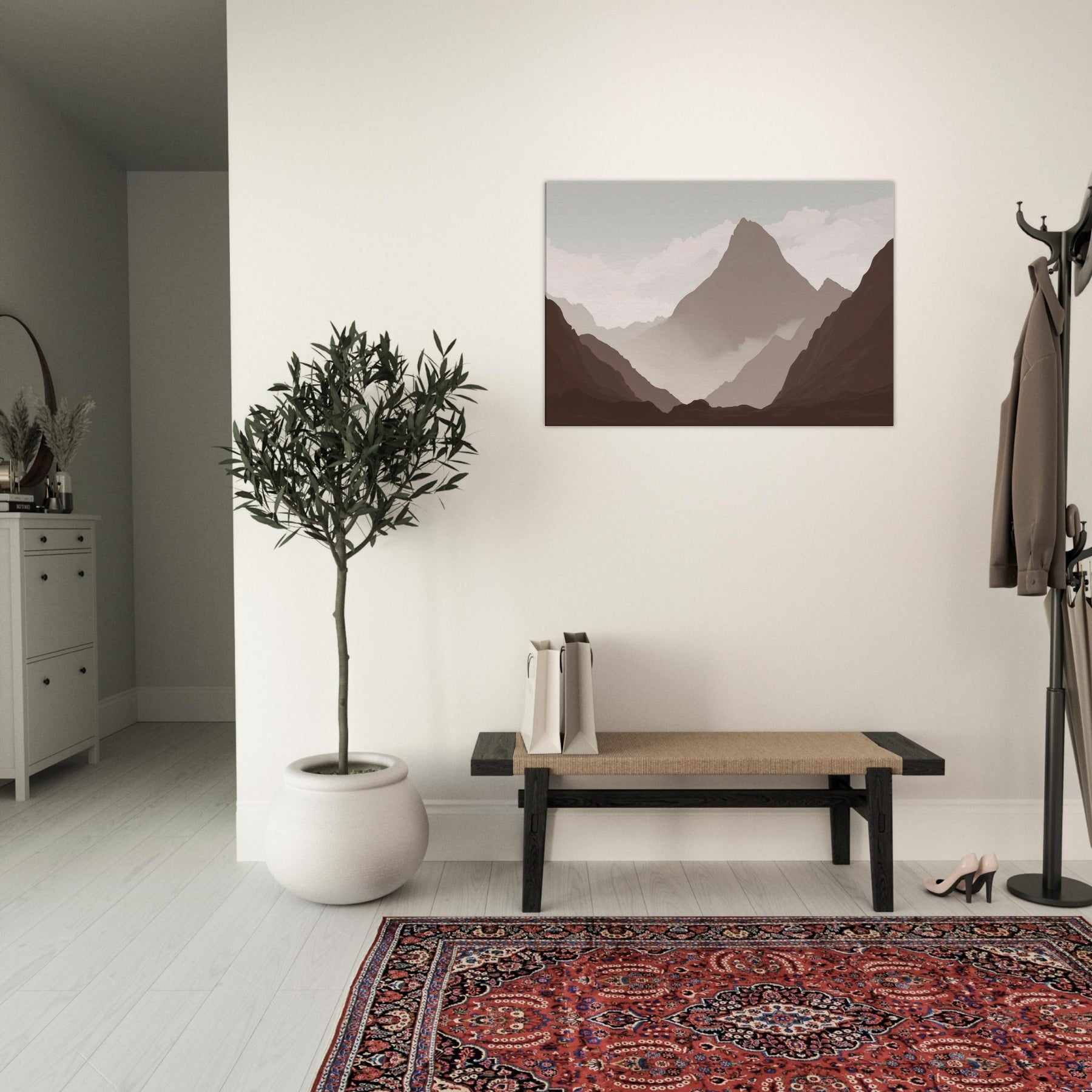 This Canyon scene unfolds with quiet grandeur, softened by pale gradients and gentle edges. The air feels crisp, the valley breathes with distant wind, and mist clings to the basins like whispered memory. Created to invite stillness, it pairs beautifully with warm woods or cool neutrals, elevating a living room or study. In its pared back form, the canyon becomes a meditation a place to pause, breathe, and let the space breathe with you.