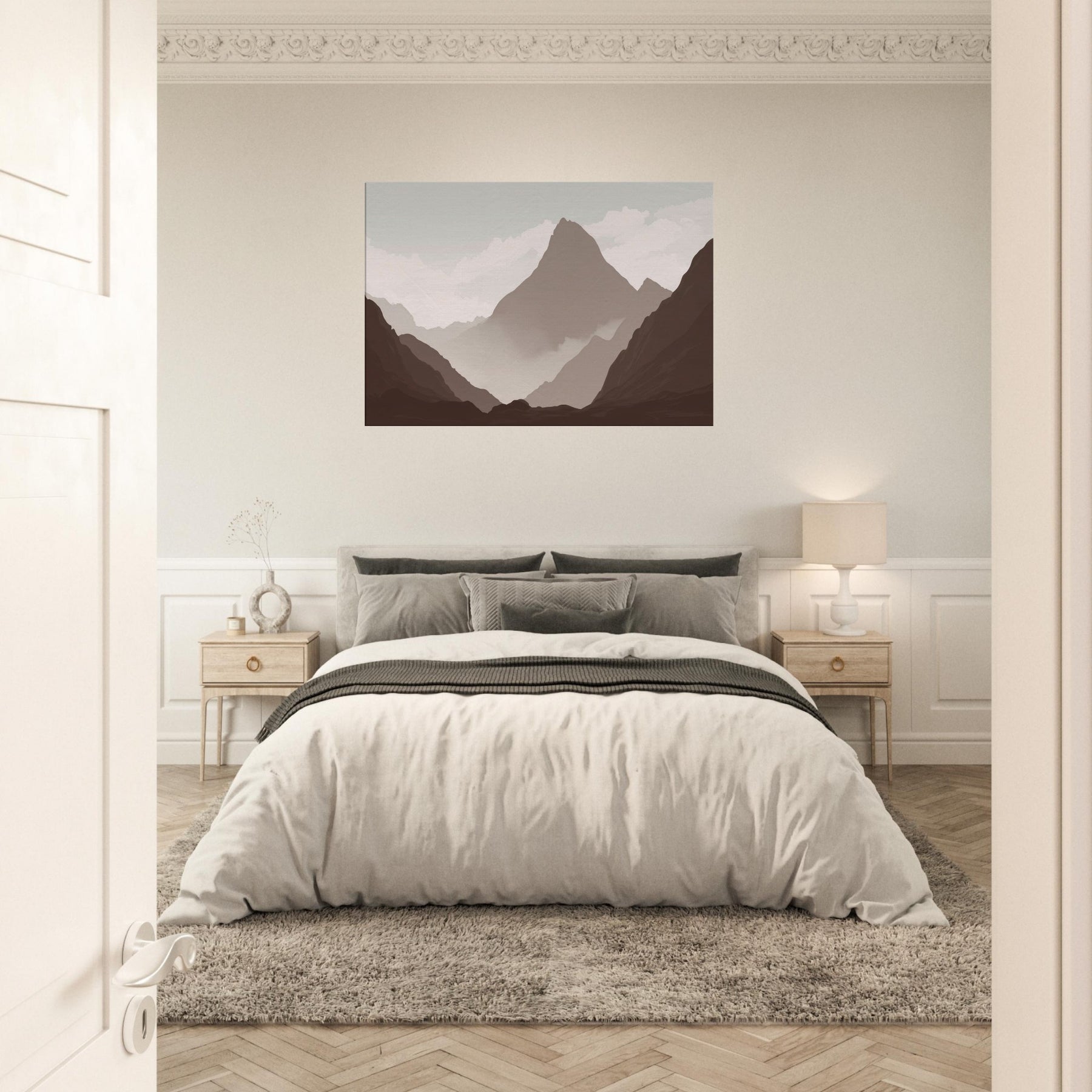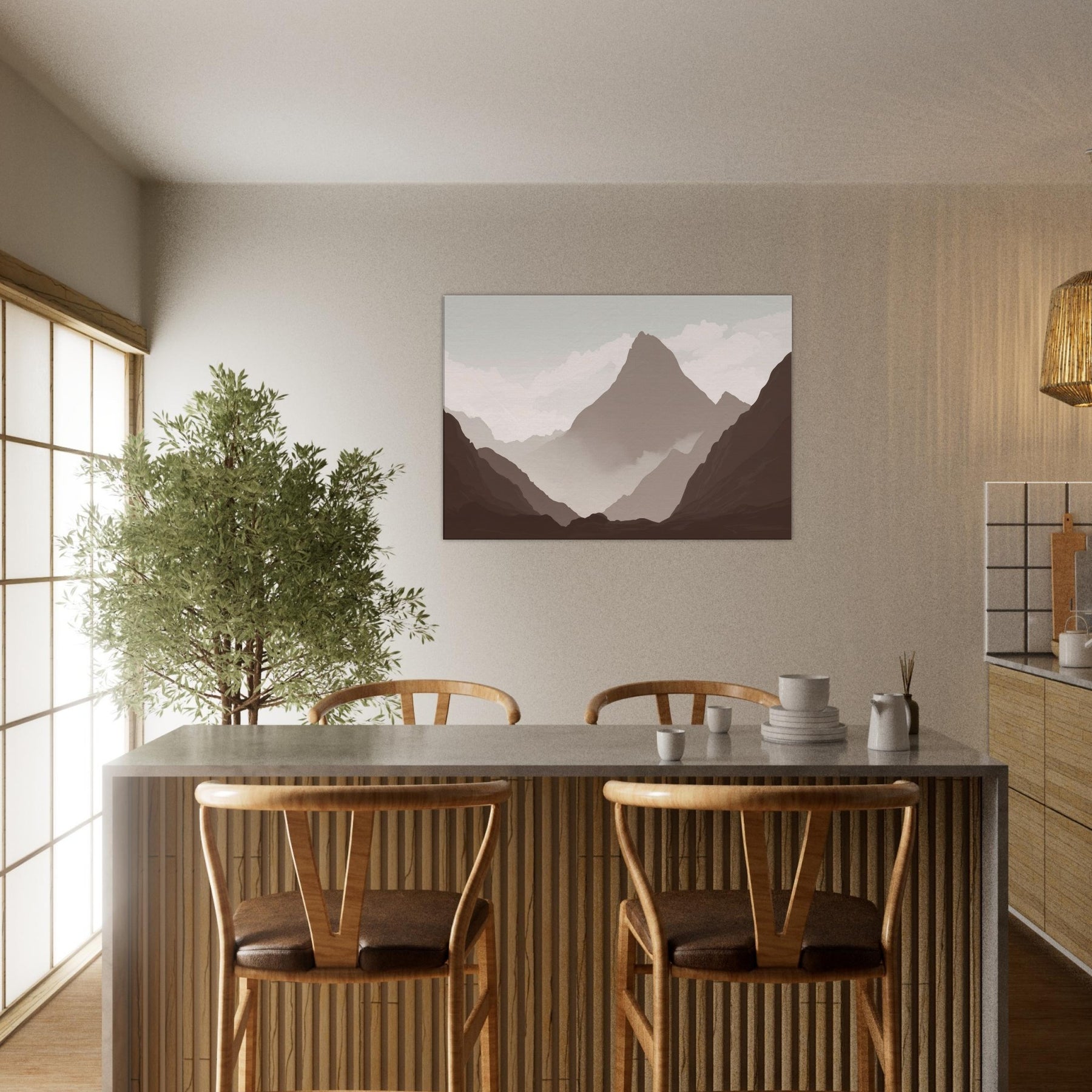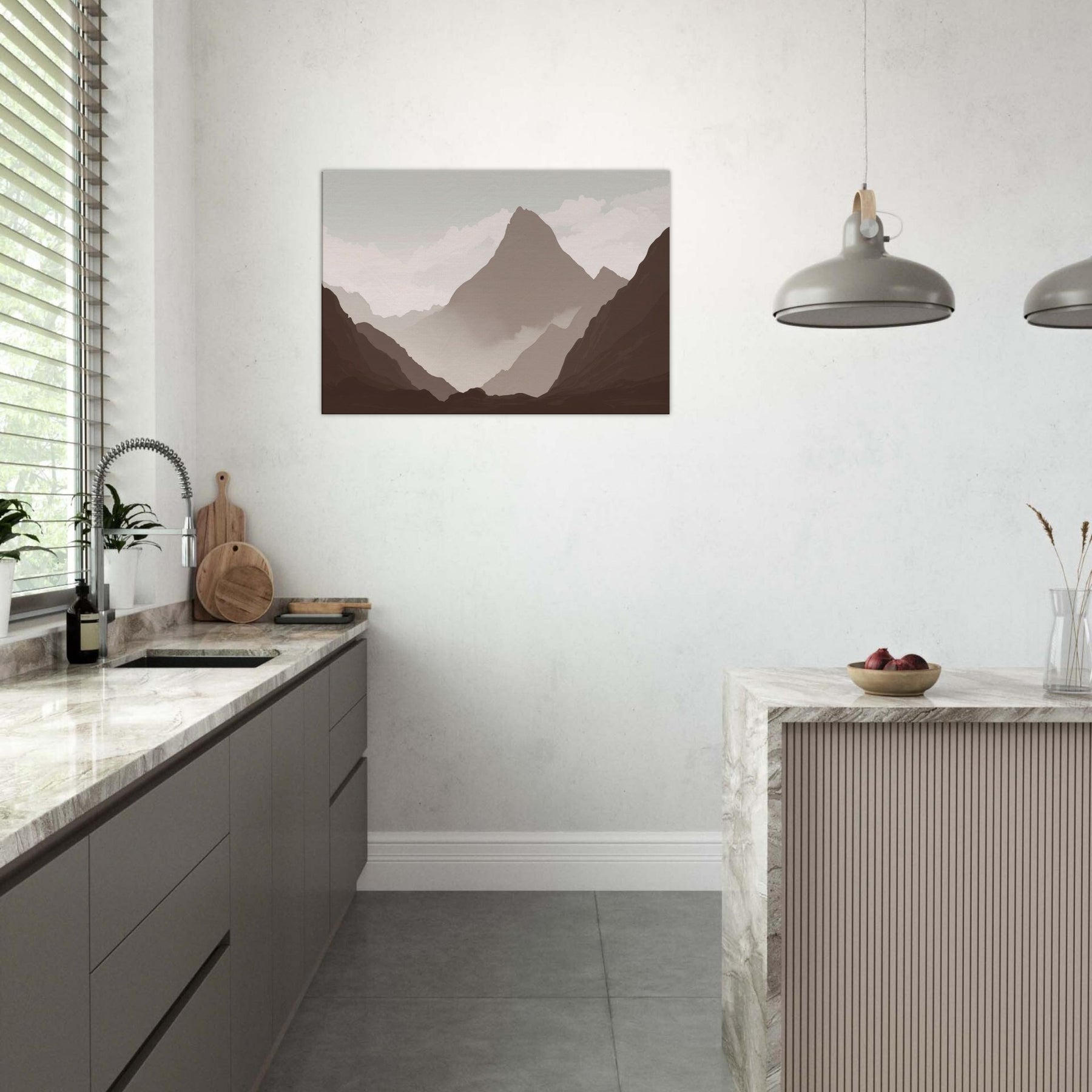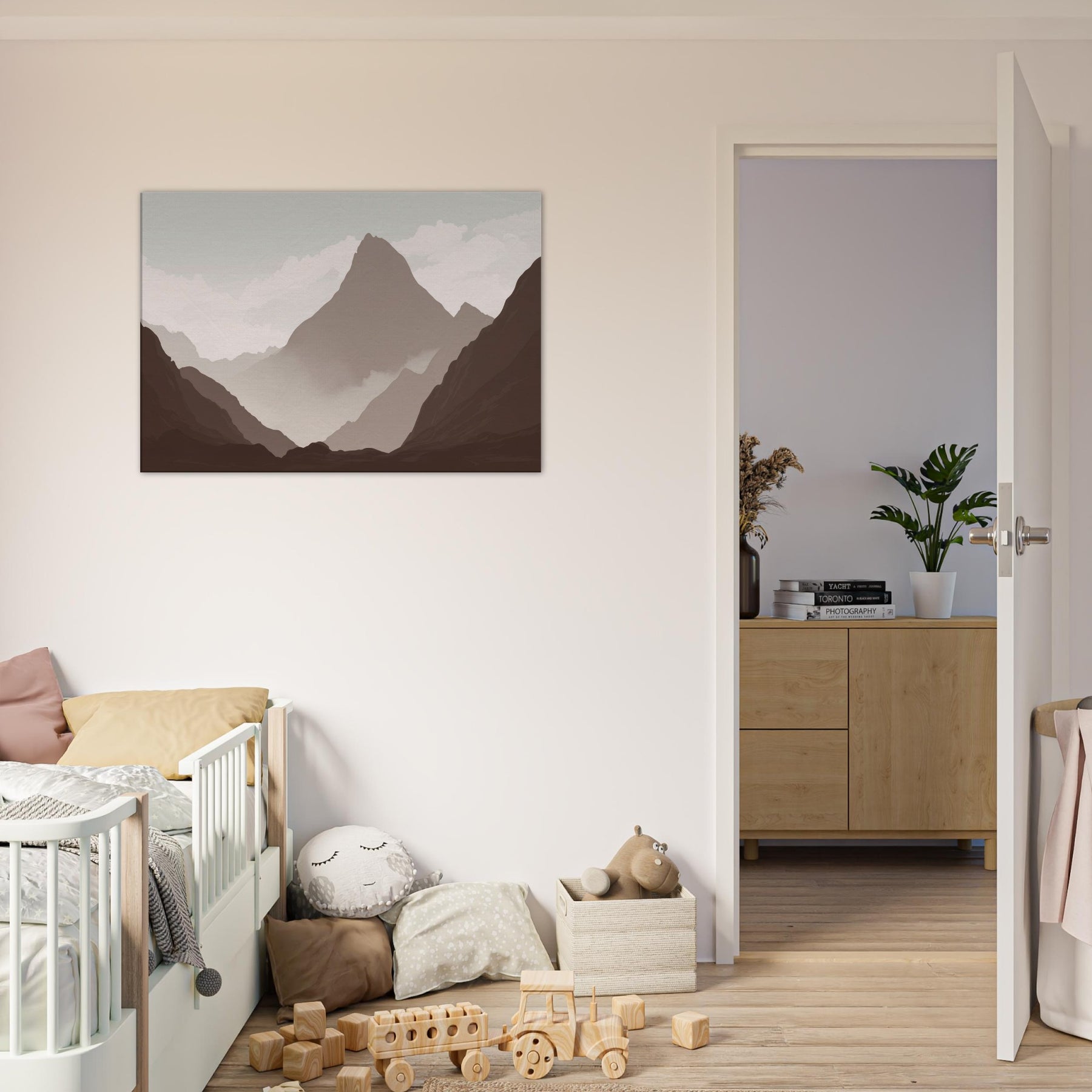 This Canyon scene unfolds with quiet grandeur, softened by pale gradients and gentle edges. The air feels crisp, the valley breathes with distant wind, and mist clings to the basins like whispered memory. Created to invite stillness, it pairs beautifully with warm woods or cool neutrals, elevating a living room or study. In its pared back form, the canyon becomes a meditation a place to pause, breathe, and let the space breathe with you.