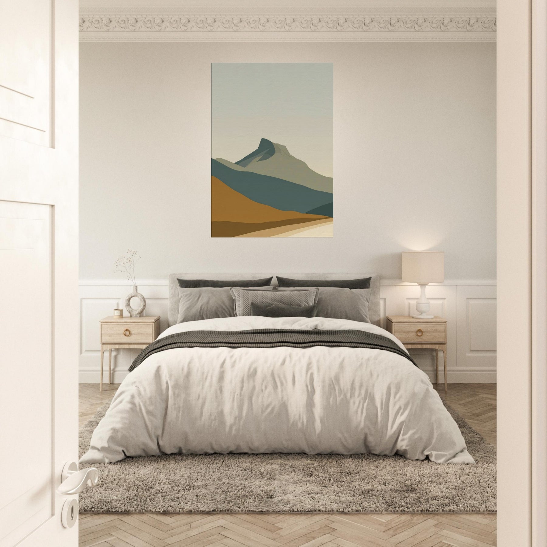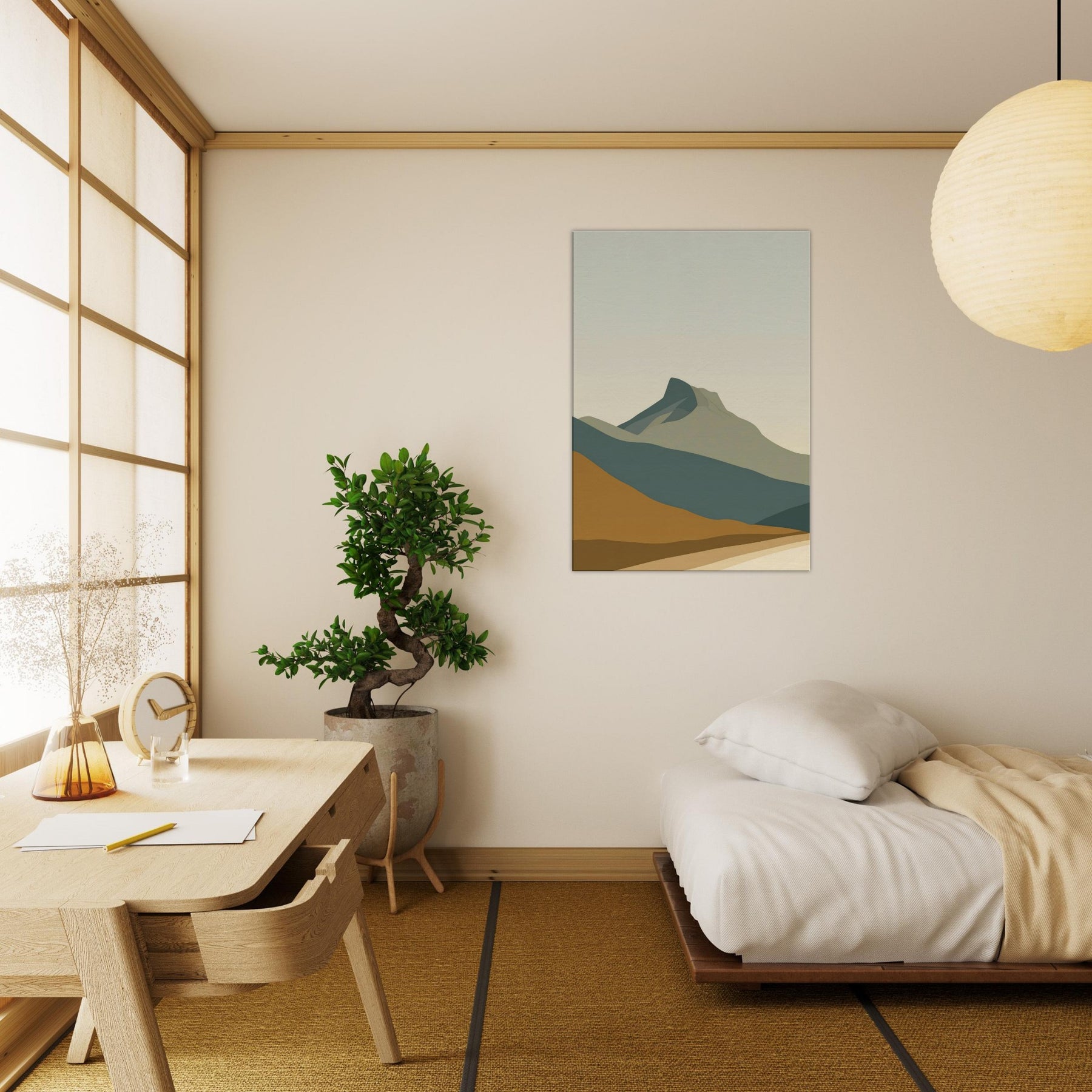 Let the Canyon take center stage in your living space with this minimalist . Soft skies rise over layered earth tones, inviting quiet reflection and a sense of spacious calm. The Primary Subject, Canyon, appears as a sculpted silhouette built from gentle gradients that blur the line between rock and light. It pairs effortlessly with airy neutrals and clean lines, turning a wall into a serene window to the outdoors perfect for a living room, bedroom, or study seeking warmth, clarity, and subtle grandeur.