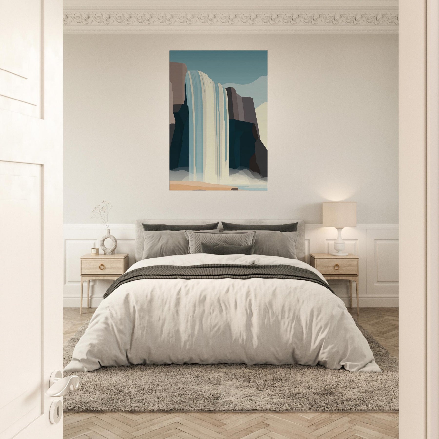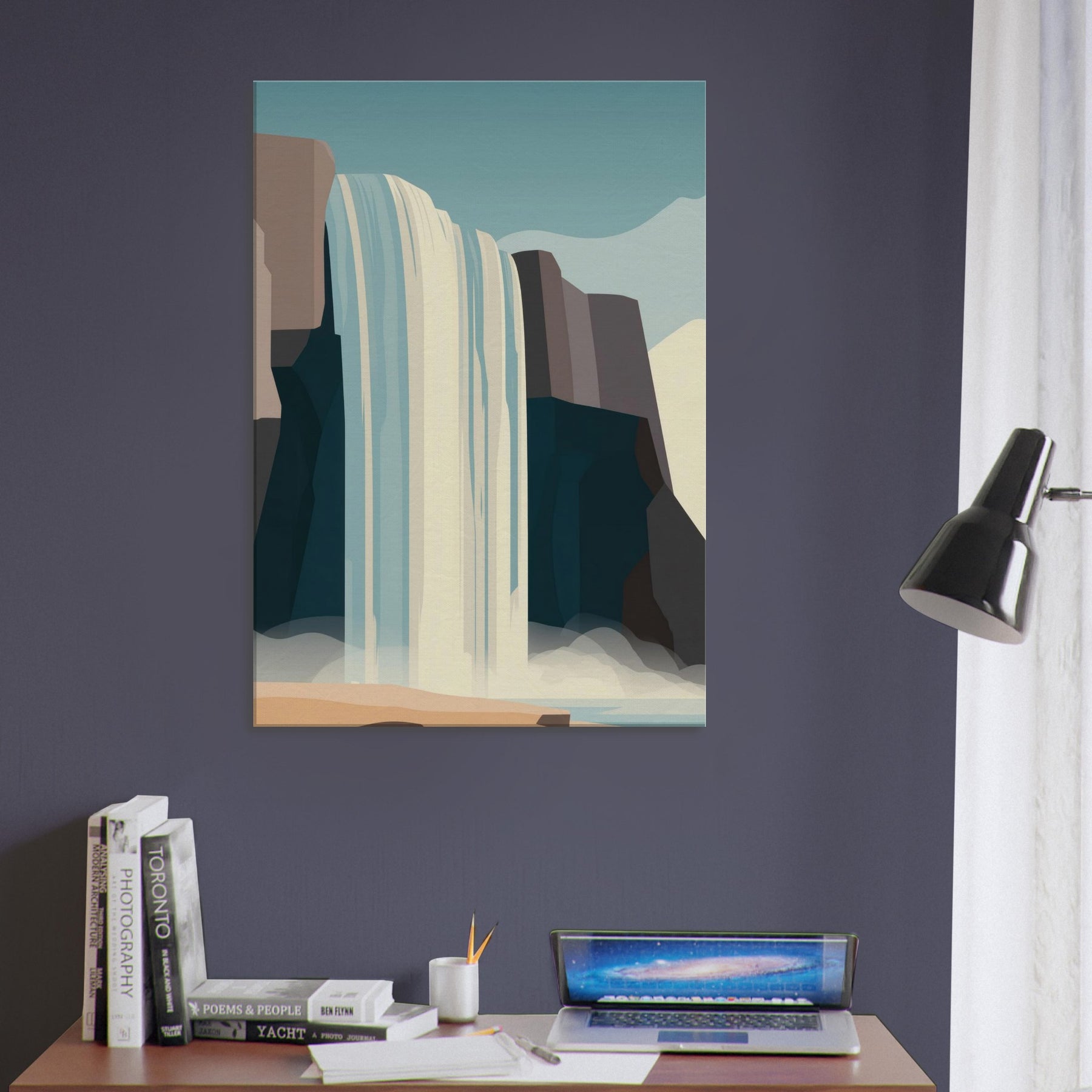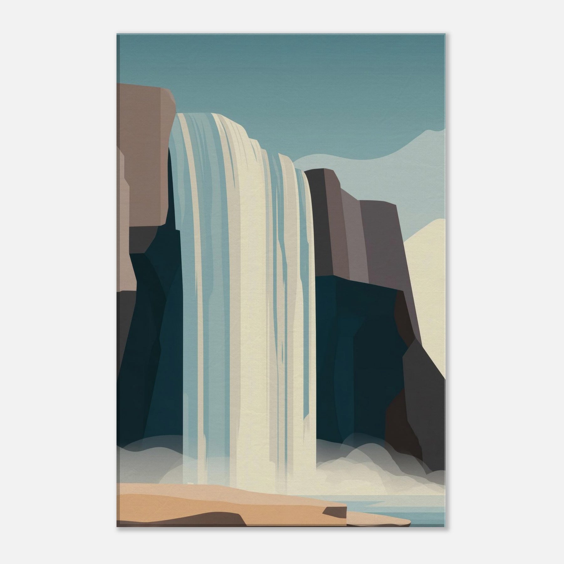 Waterfall spills in a breath of pale light, turning rugged cliffs into a quiet moment of grace. This minimalist composition renders nature in soft planes and cool tones, inviting the room to exhale and slow down. Imagine the hush of cascading water translated into color, the mist brushing the air, and a horizon that anchors the space with serene balance. Placed above a sofa or in a reading nook, it brings clarity, depth, and a nature infused stillness that makes everyday moments feel poised and calm.