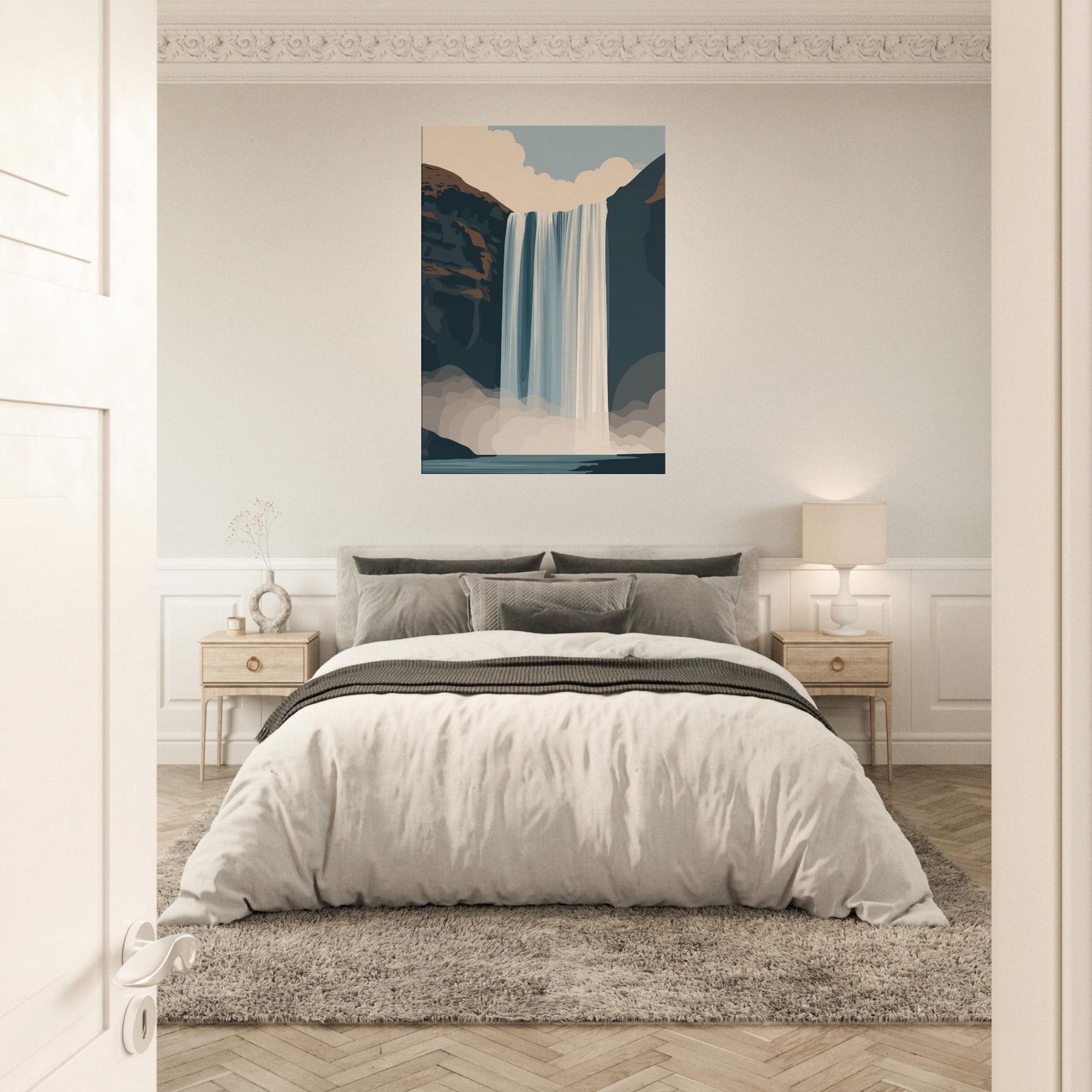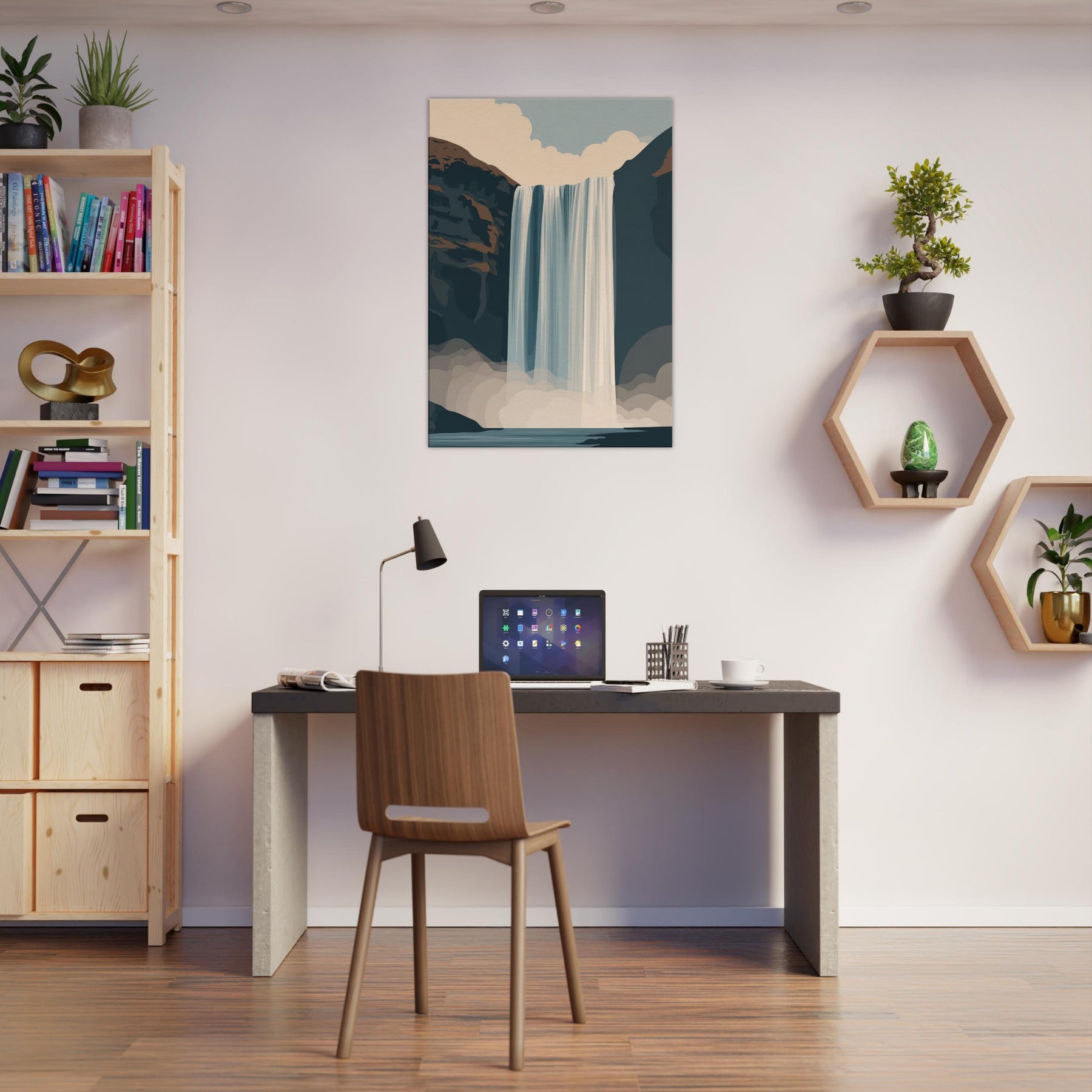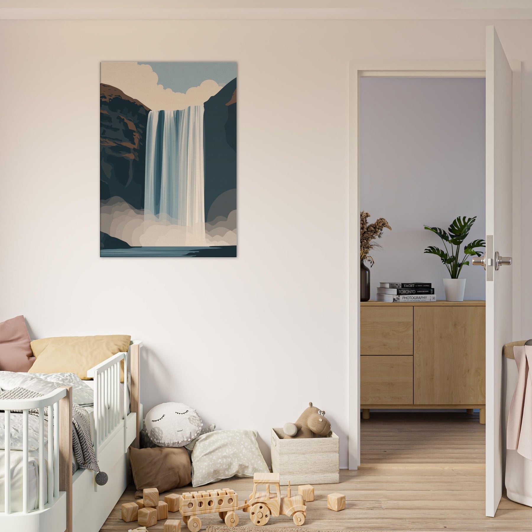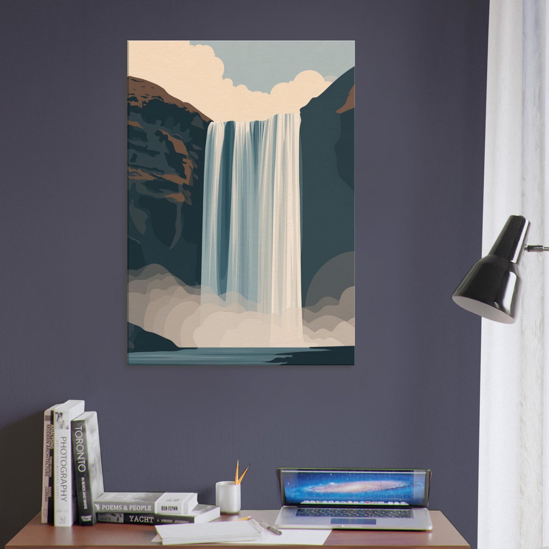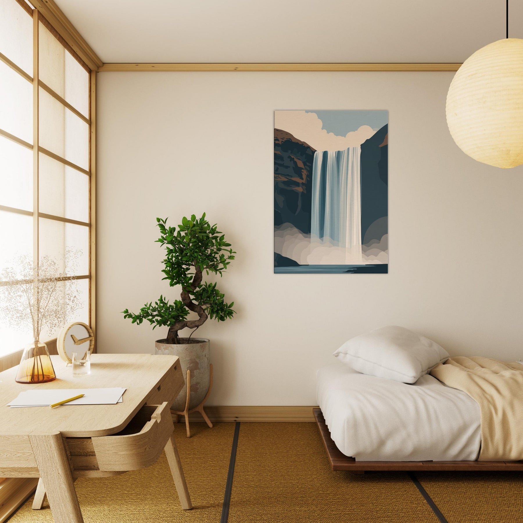 Waterfall dominates this minimalist composition, a serene reveal of nature’s quiet power. The scene breathes through gentle blues, slate shadows, and airy mist, inviting calm as light slips across stone and water. In your living space, it becomes a contemplative focal point an escape from clutter, a subtle rhythm that slows the day. The smooth, uncluttered lines encourage balance and clarity, while the implied motion of the cascade adds depth without shouting. A timeless tribute to nature, poised for modern interiors.