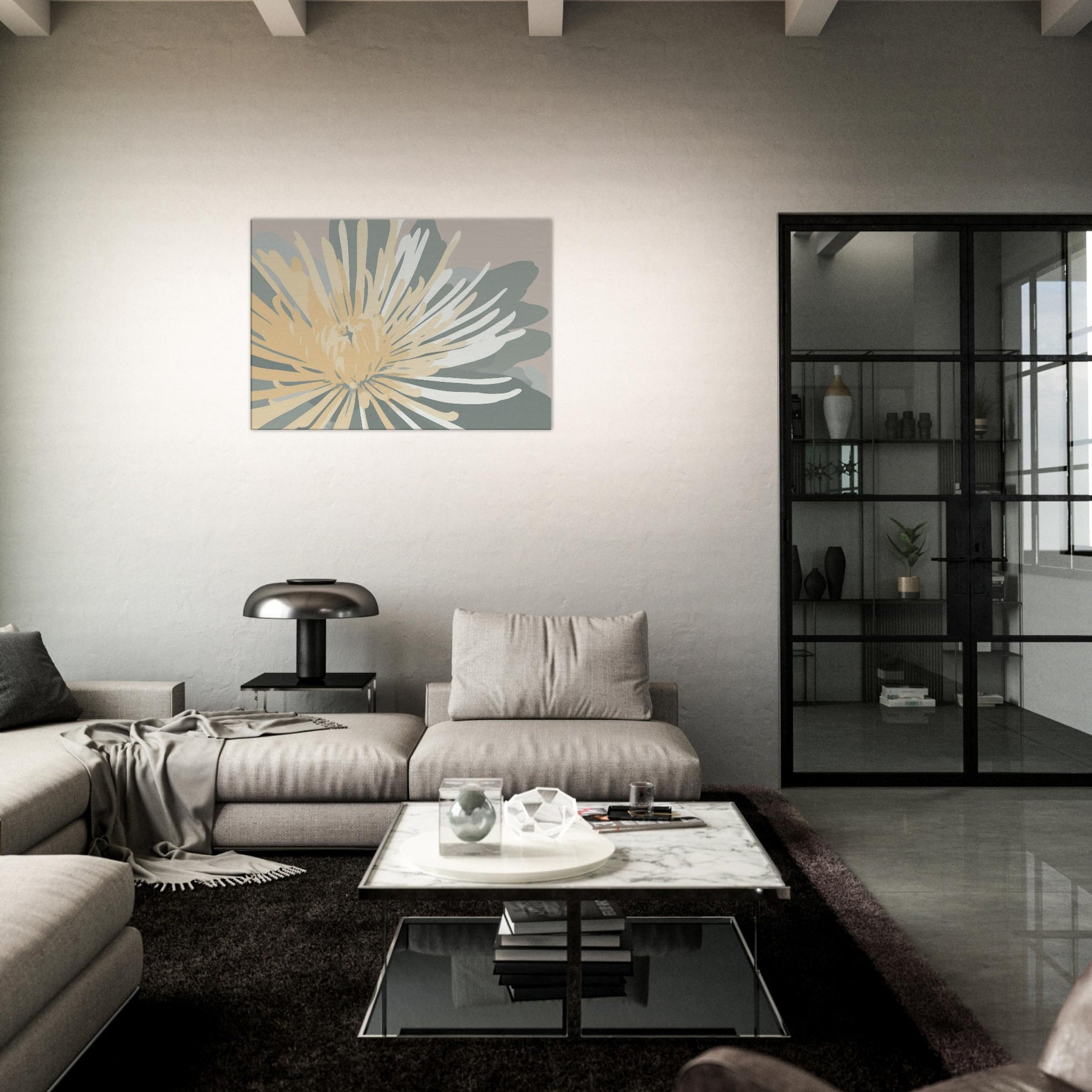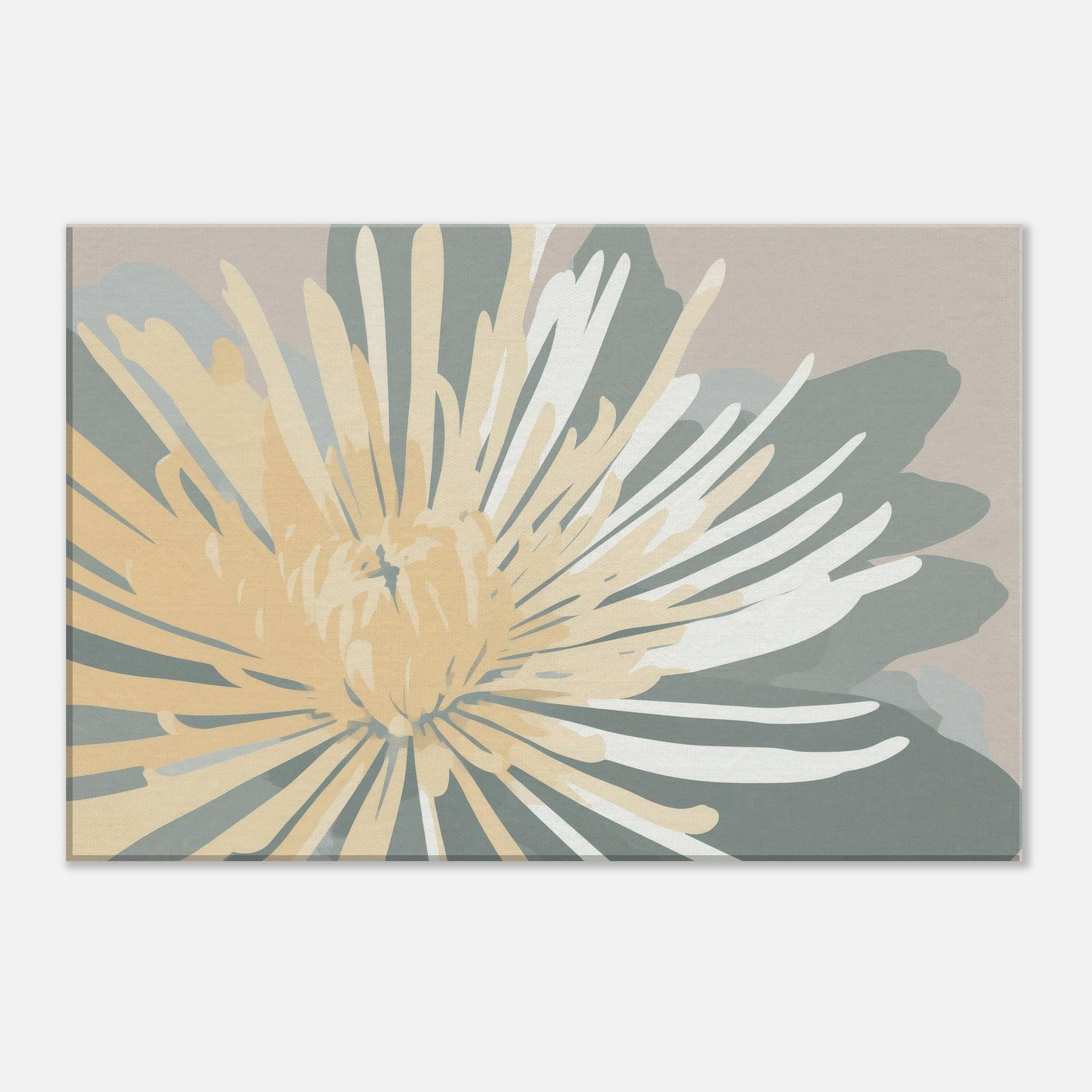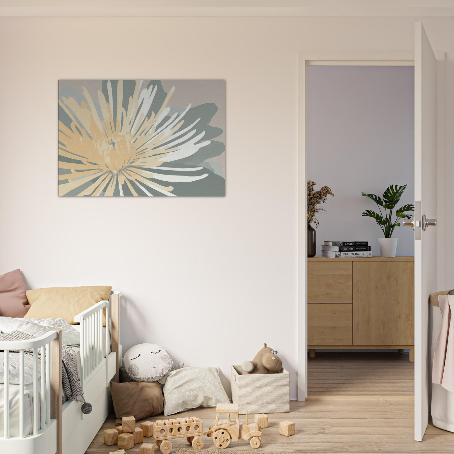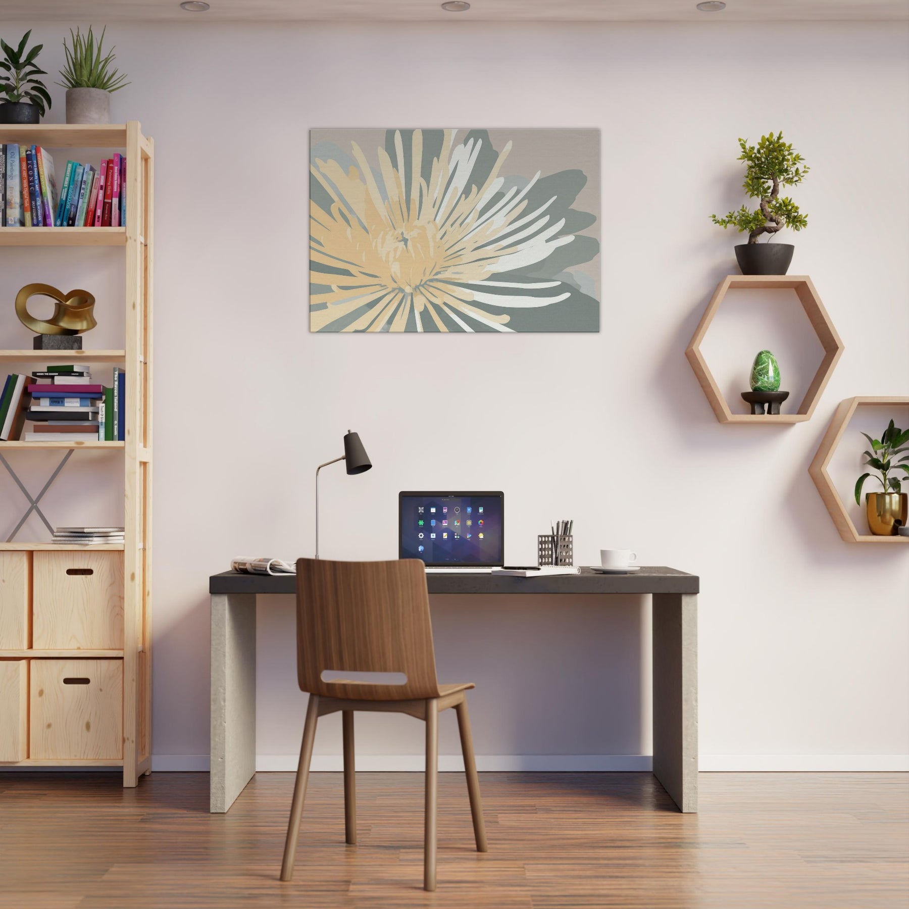 Like a breath of quiet morning light, this minimalist depiction of a chrysanthemum invites calm into any room. Subtle petals unfurl in soft earth tones, creamy ivories, warm sand, and muted sage, ethereal yet grounded. The clean silhouettes create space for reflection, while the gentle contrast hints at nature's resilience. Hang it where conversation lingers or where stillness is desired, and let the Chrysanthemum anchor the mood, a timeless focal point that makes living spaces feel open, serene, and effortless.