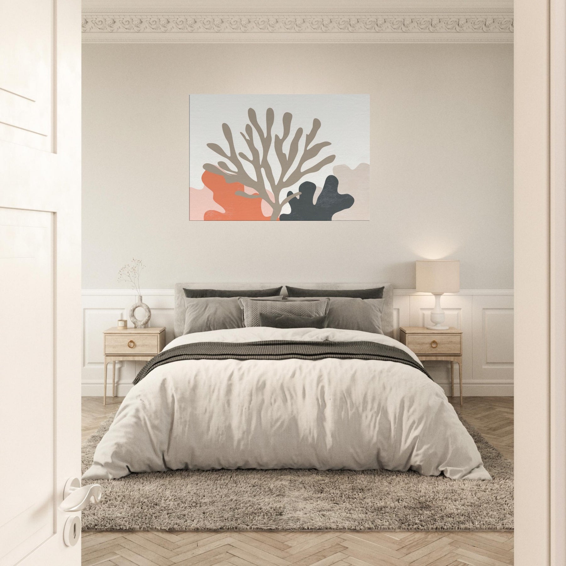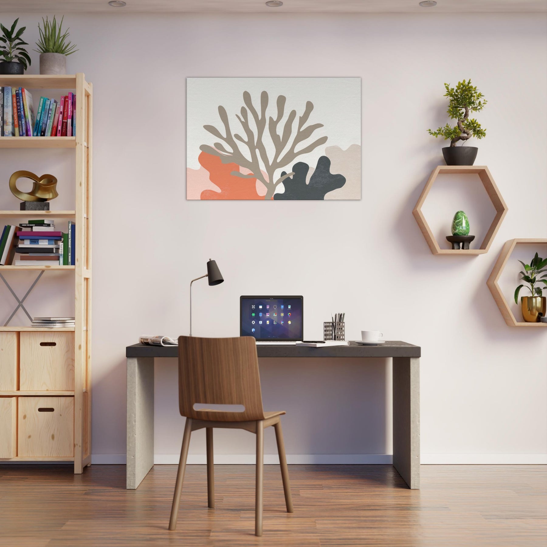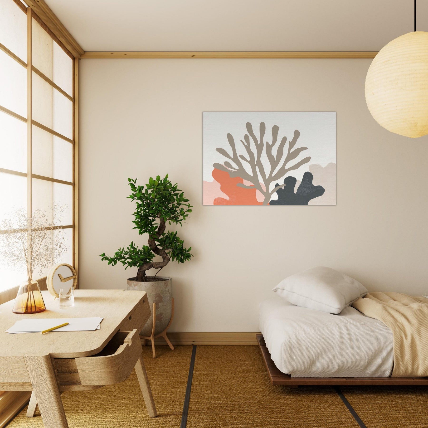 Like a breath of sea mist, this minimalist Coral unfurls in soft taupe and blush, inviting calm into any room. The sparse, organic branches echo underwater gardens, casting quiet shadows that shift with the light. It becomes a focal point without shouting, a serene counterpoint to busy decor. Perfect for a living room or home office, it invites reflection, warmth, and a touch of nature’s resilience an intimate pause that makes the space feel endlessly breathable.