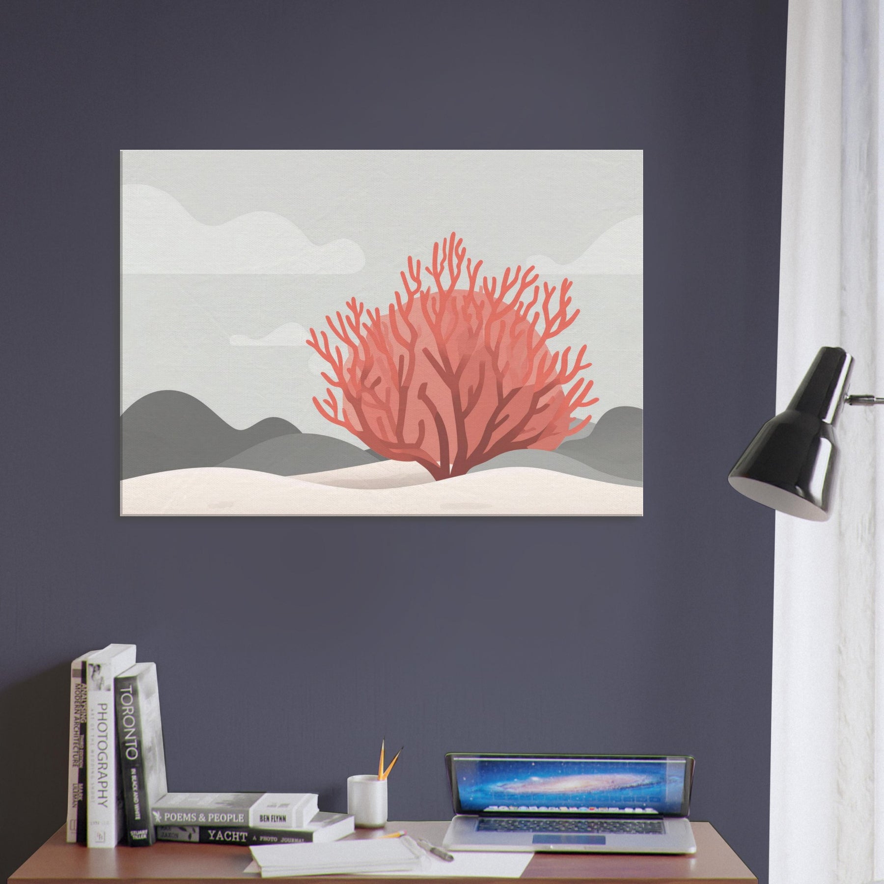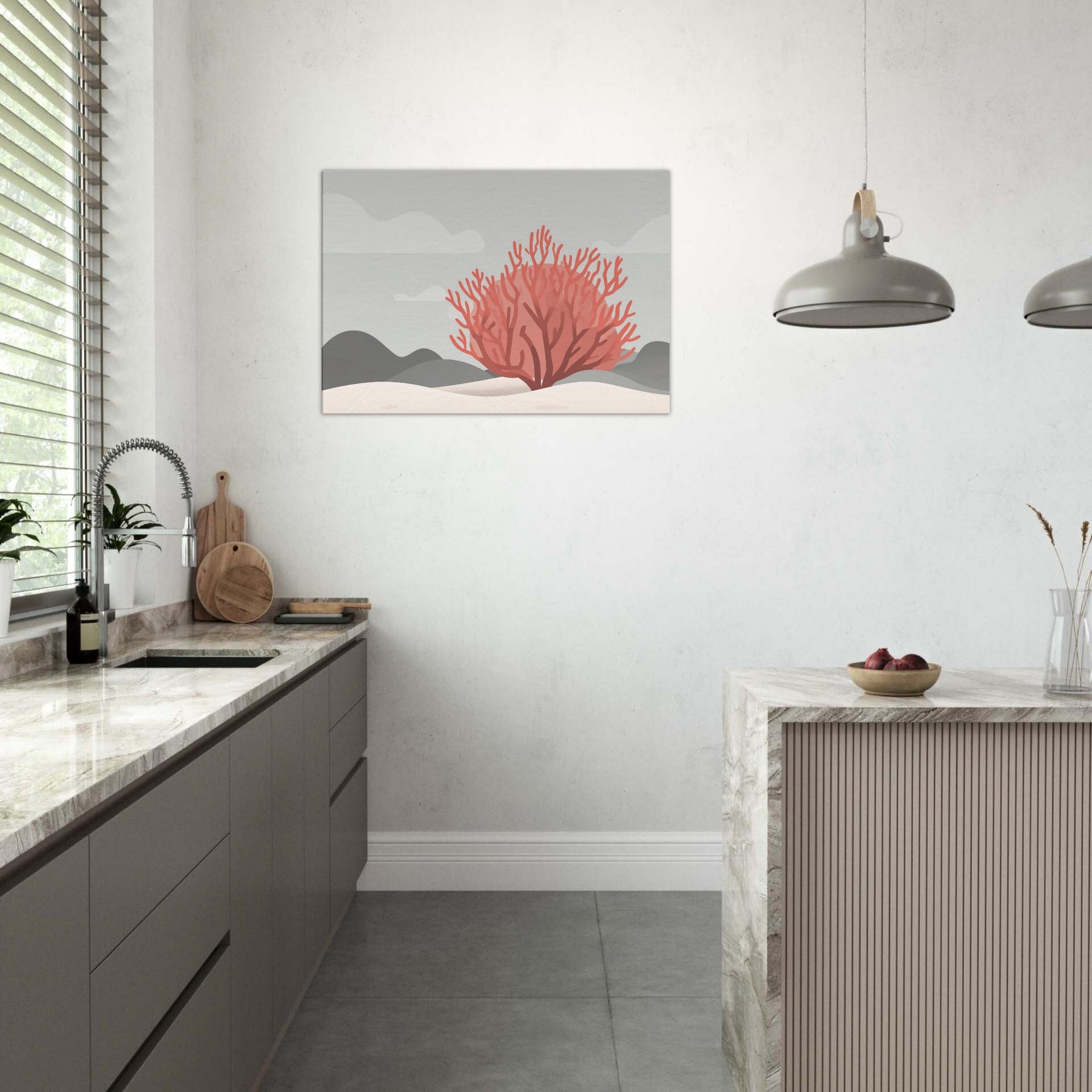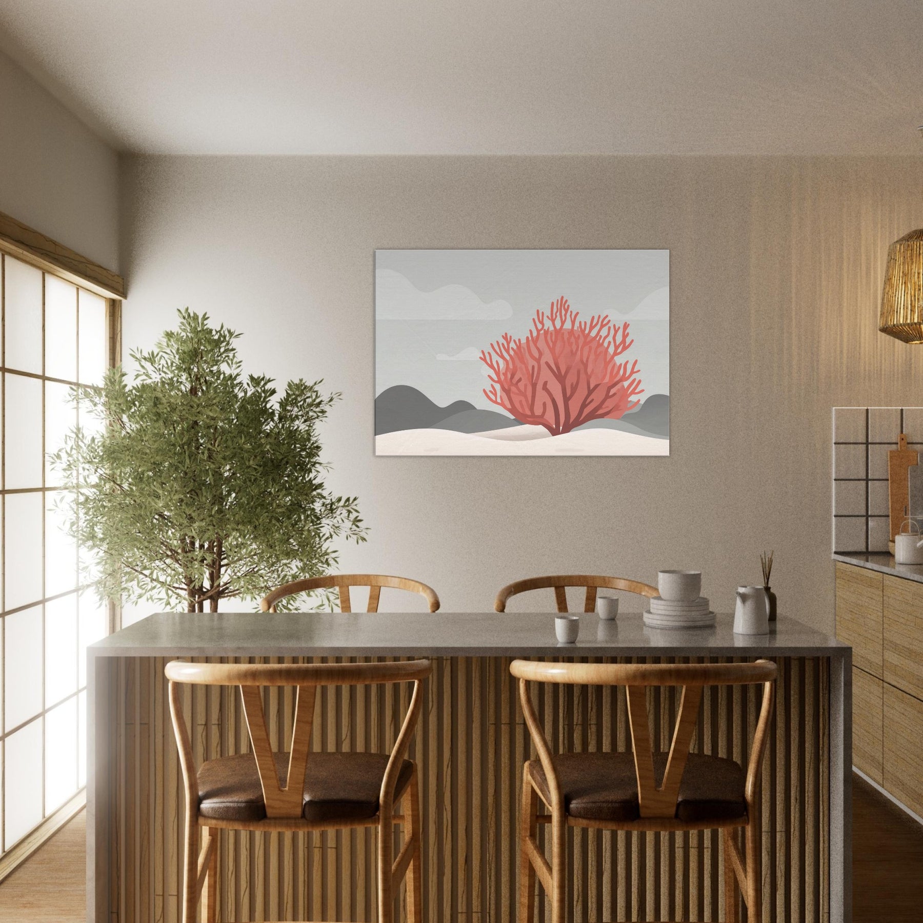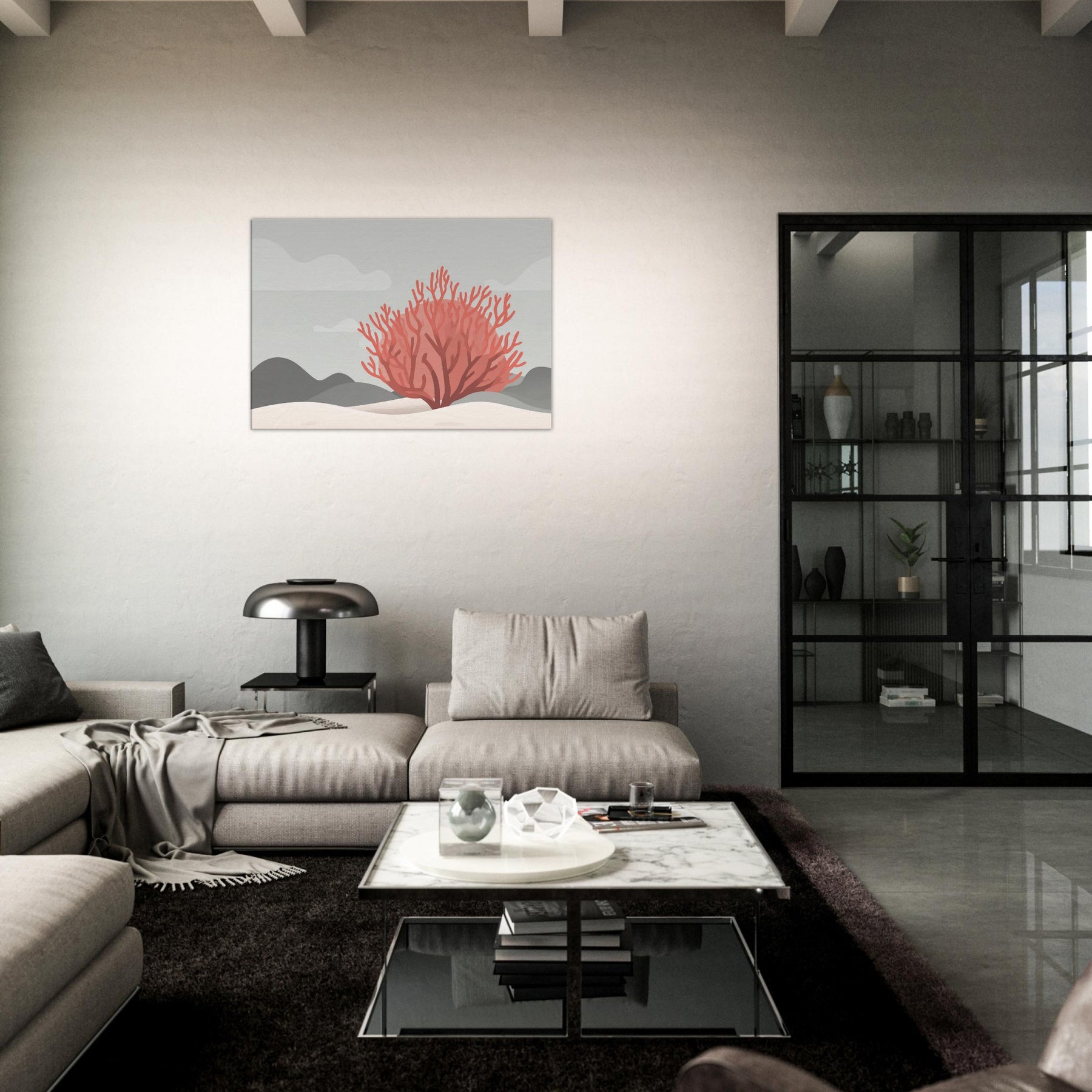 Coral sits in serene light, a minimalist ode to nature’s architecture. This soft branched bloom unfurls across a quiet horizon, its coral tones warming pale sands and muted grays. The composition exudes calm, inviting a whispered stillness into the room while catching the gaze of guests with its elegant silhouette. Hang it above a sofa or bedside, and watch the space breathe sunlit, tranquil, and subtly vibrant, like a coastal afternoon captured in a single, timeless moment.