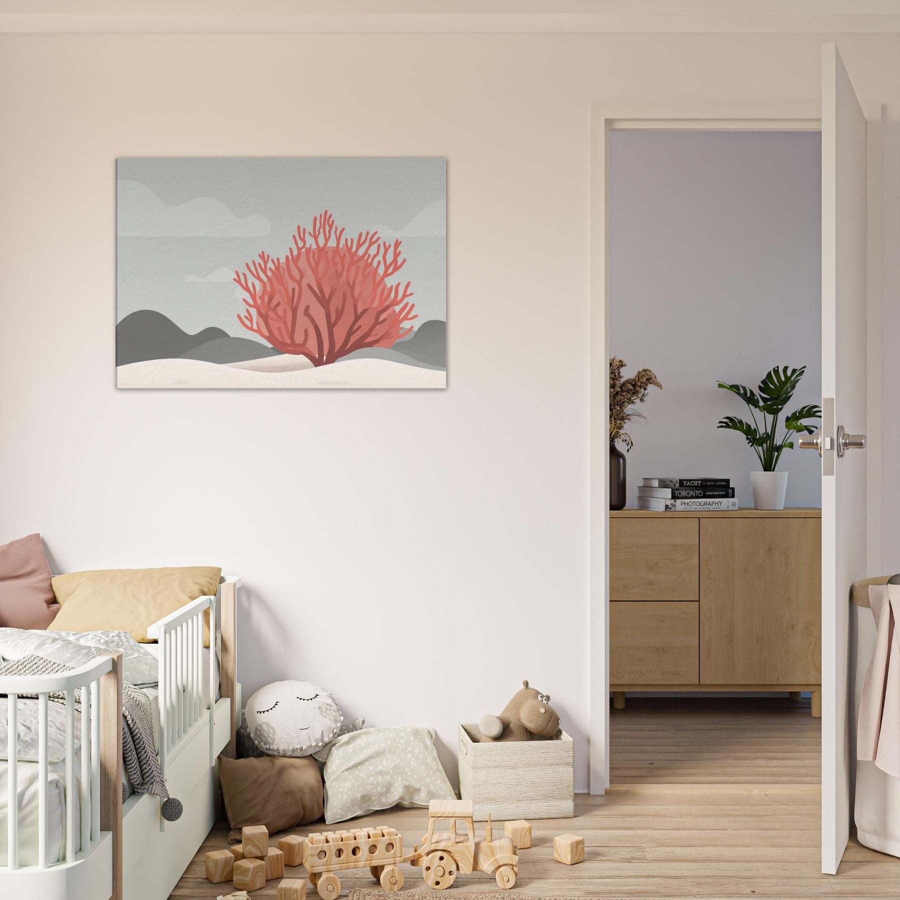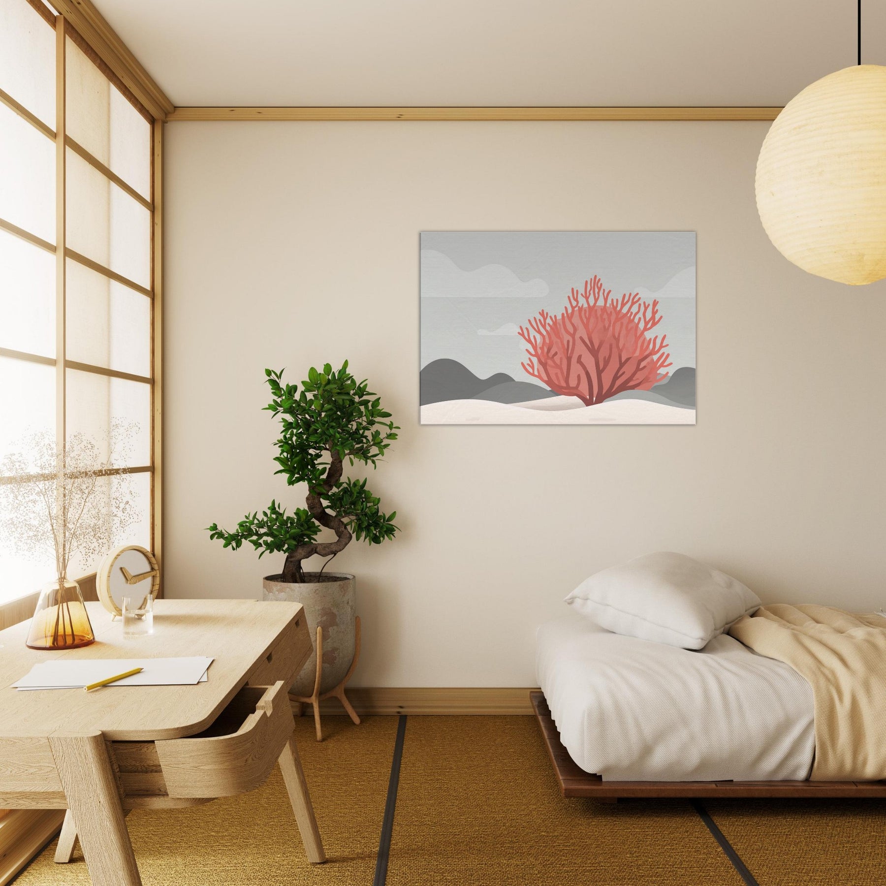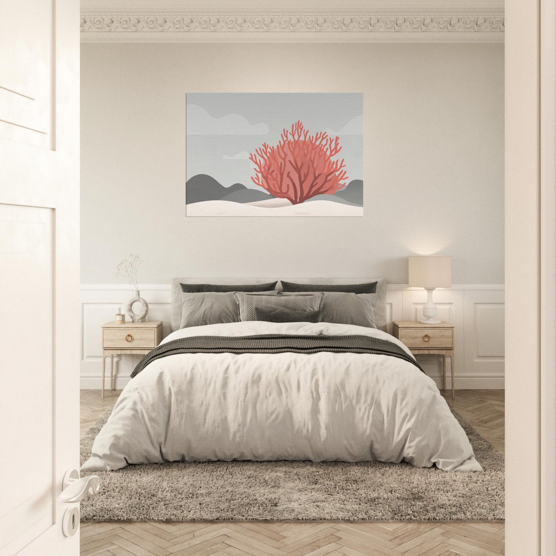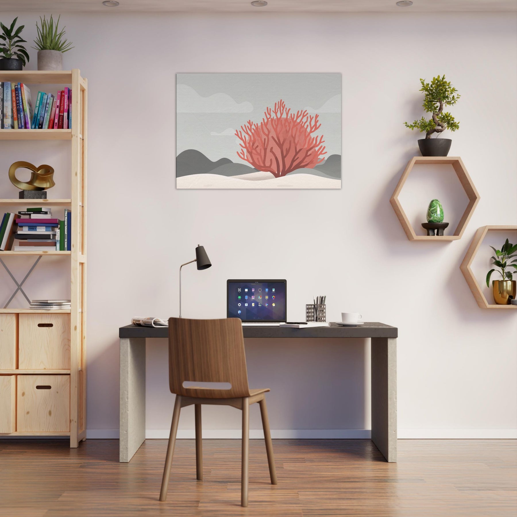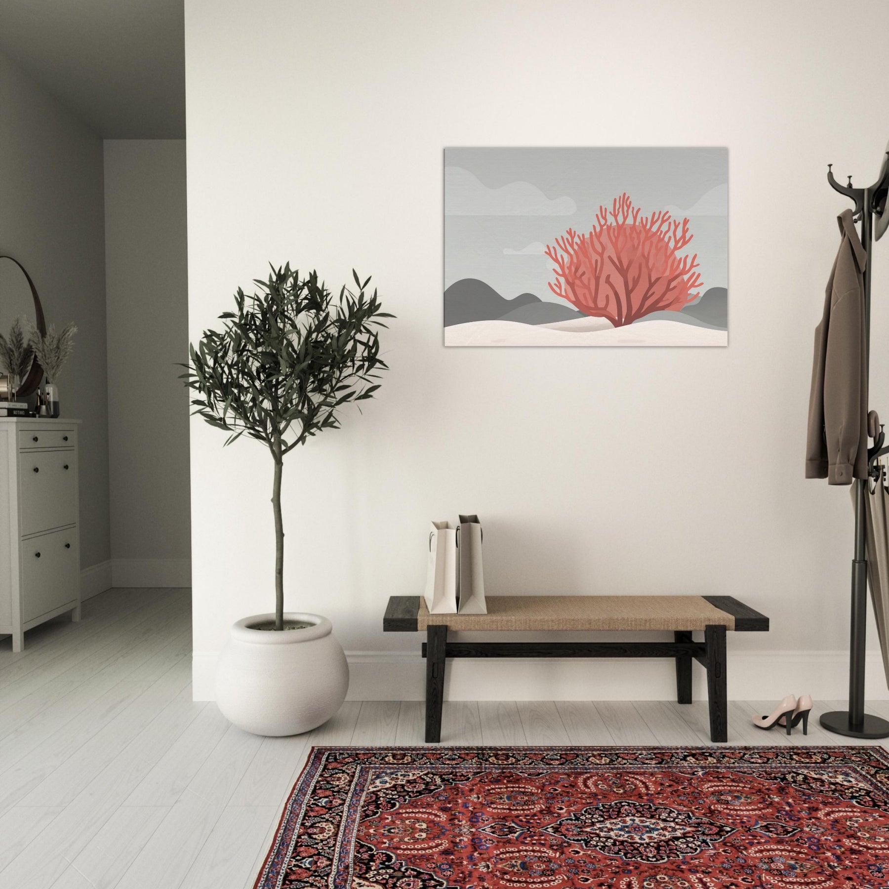 Coral sits in serene light, a minimalist ode to nature’s architecture. This soft branched bloom unfurls across a quiet horizon, its coral tones warming pale sands and muted grays. The composition exudes calm, inviting a whispered stillness into the room while catching the gaze of guests with its elegant silhouette. Hang it above a sofa or bedside, and watch the space breathe sunlit, tranquil, and subtly vibrant, like a coastal afternoon captured in a single, timeless moment.
