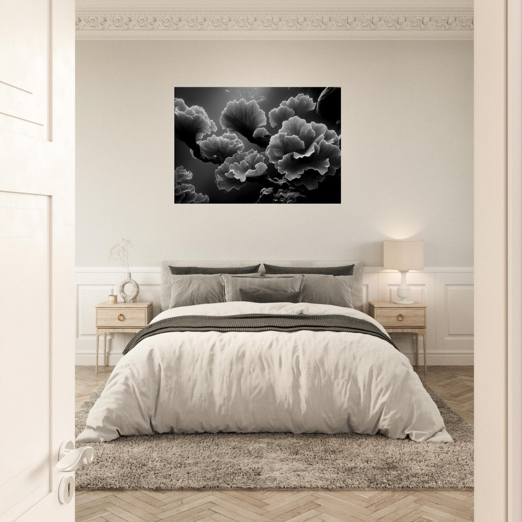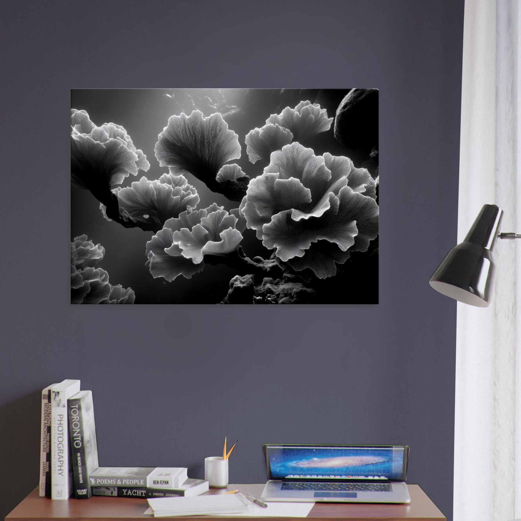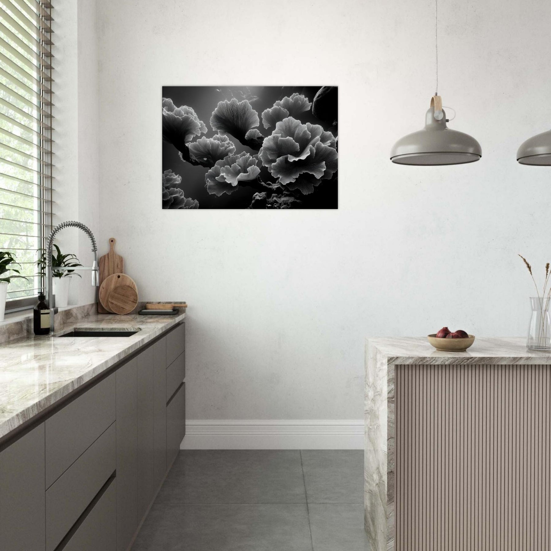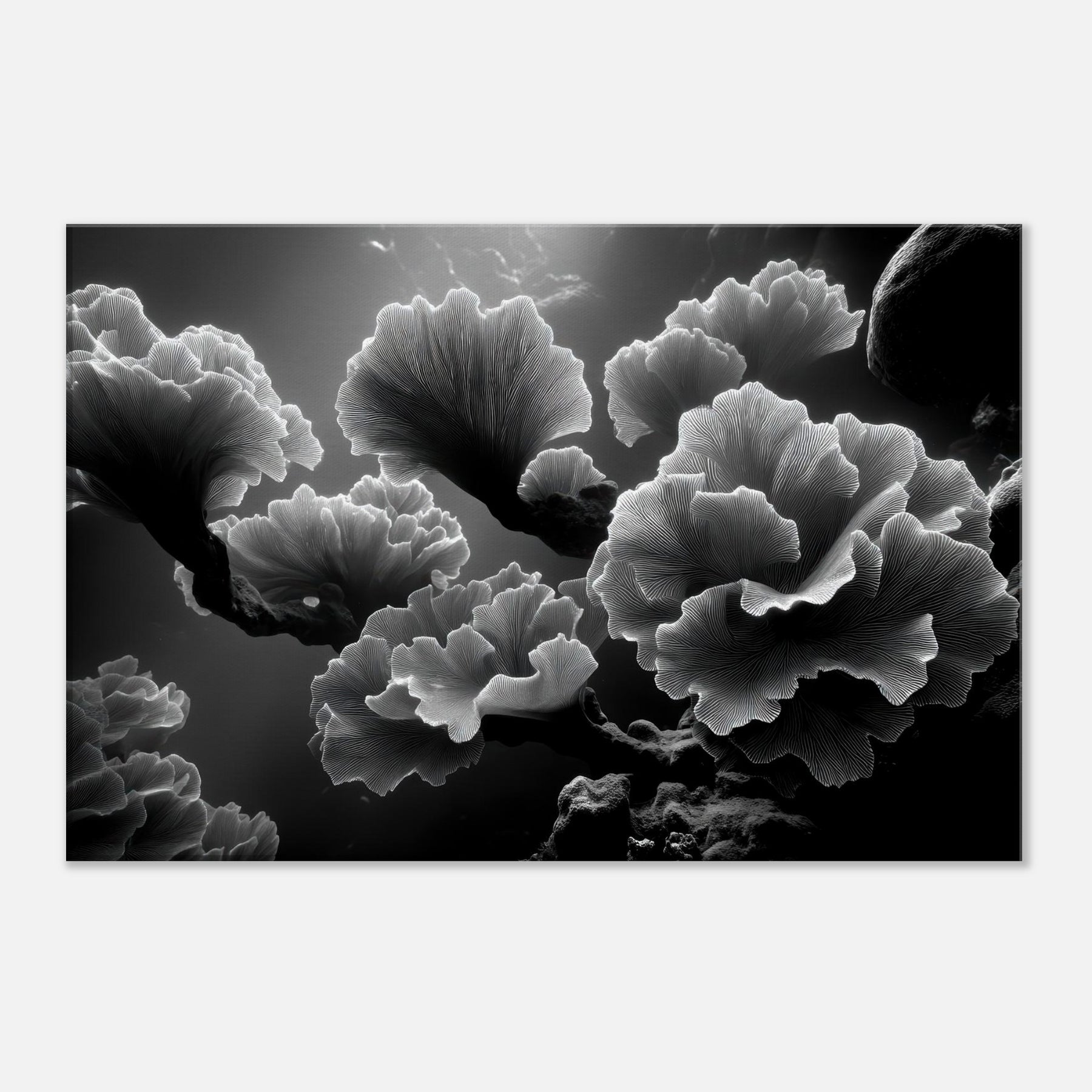 This black and white study of Coral unfurls like underwater palm fronds, inviting quiet reflection. The sculpted profiles and delicate lines create a sense of motion and airiness, as if a tide has paused to listen.