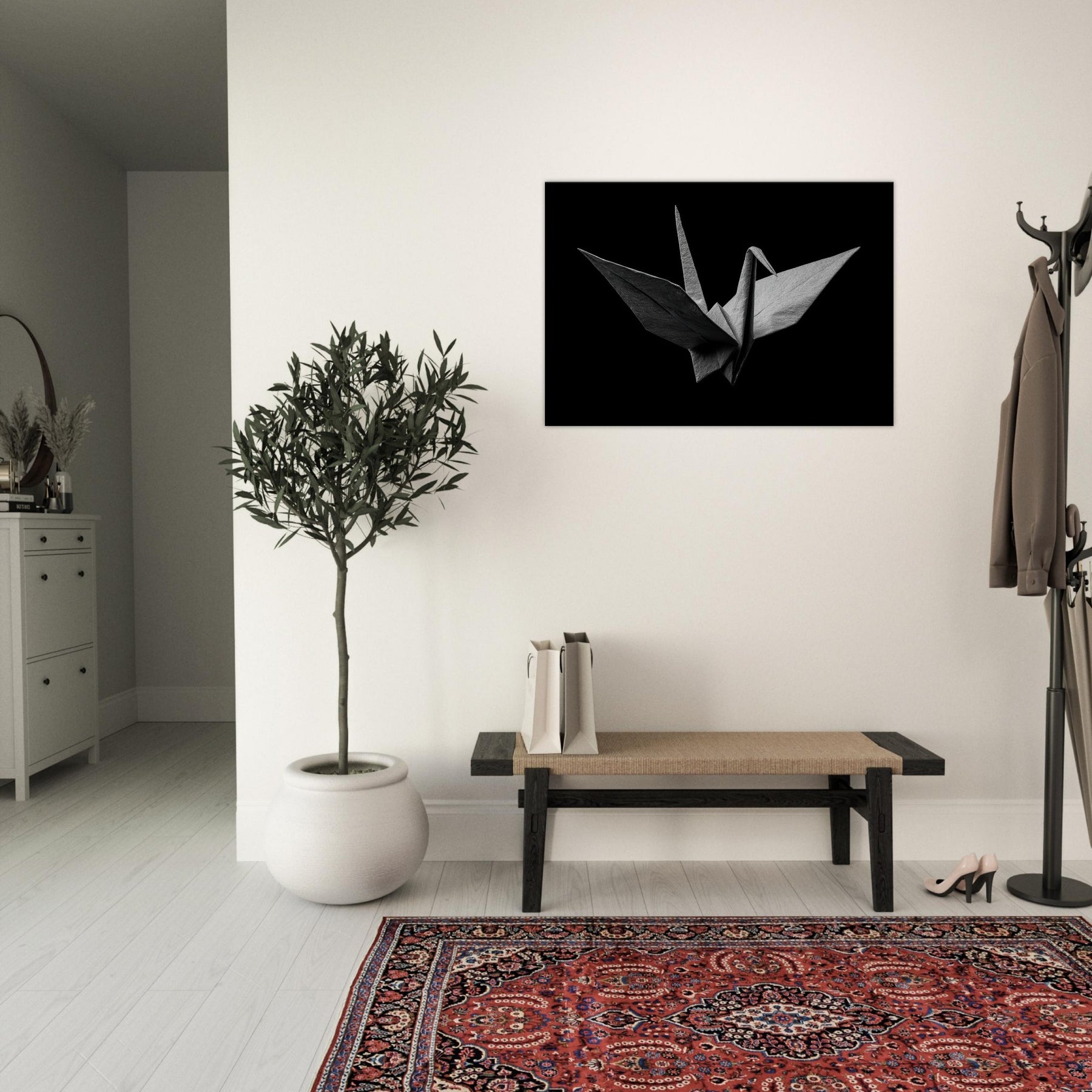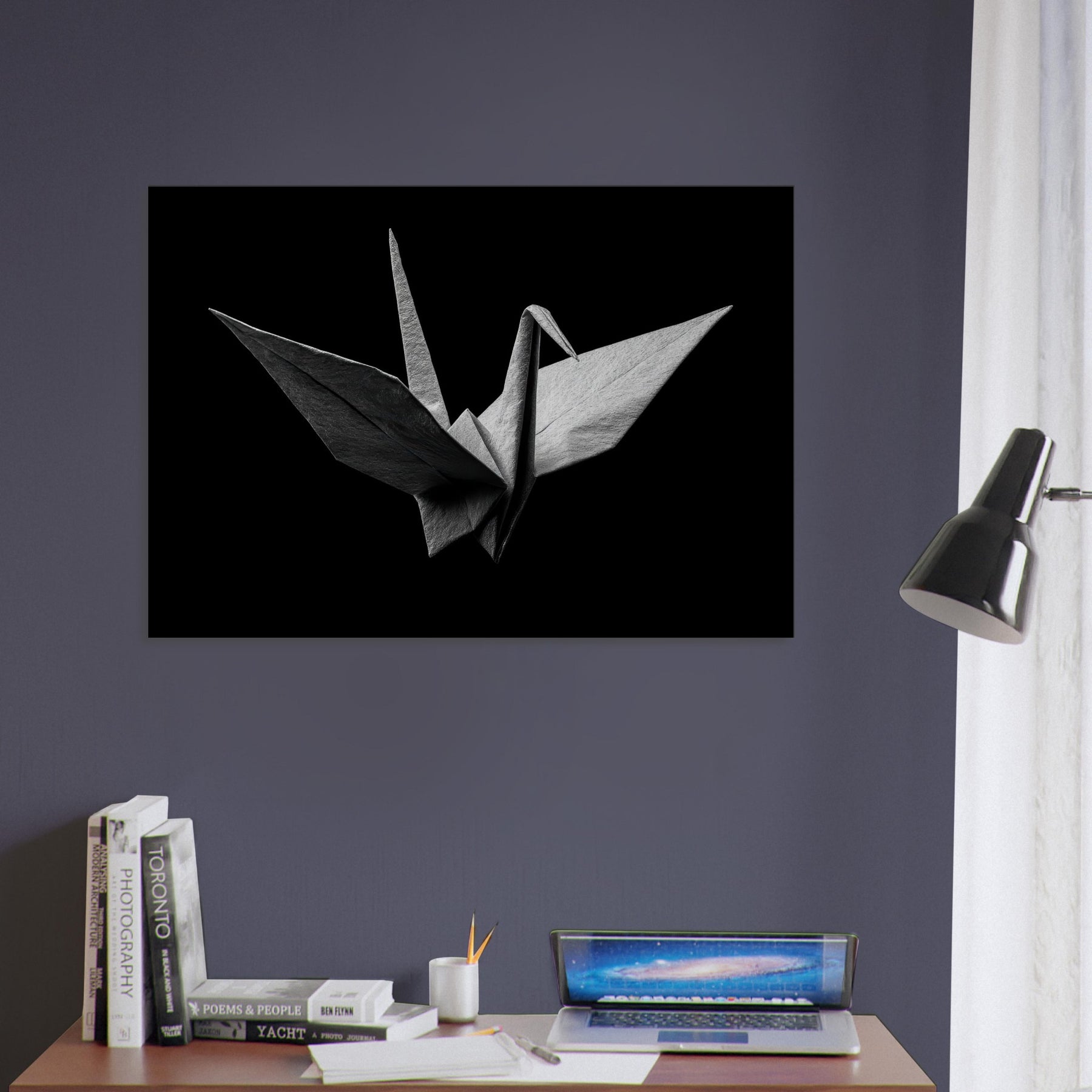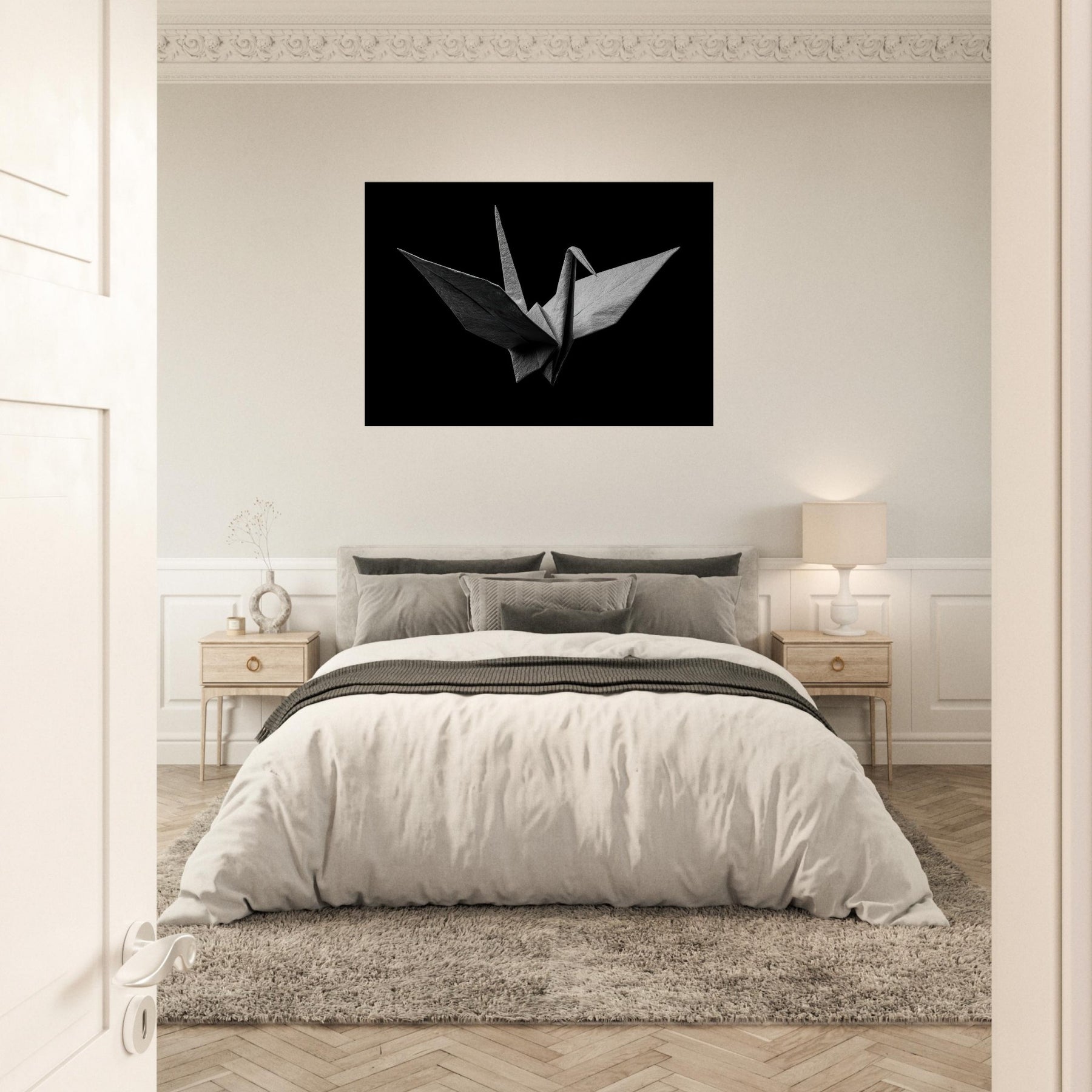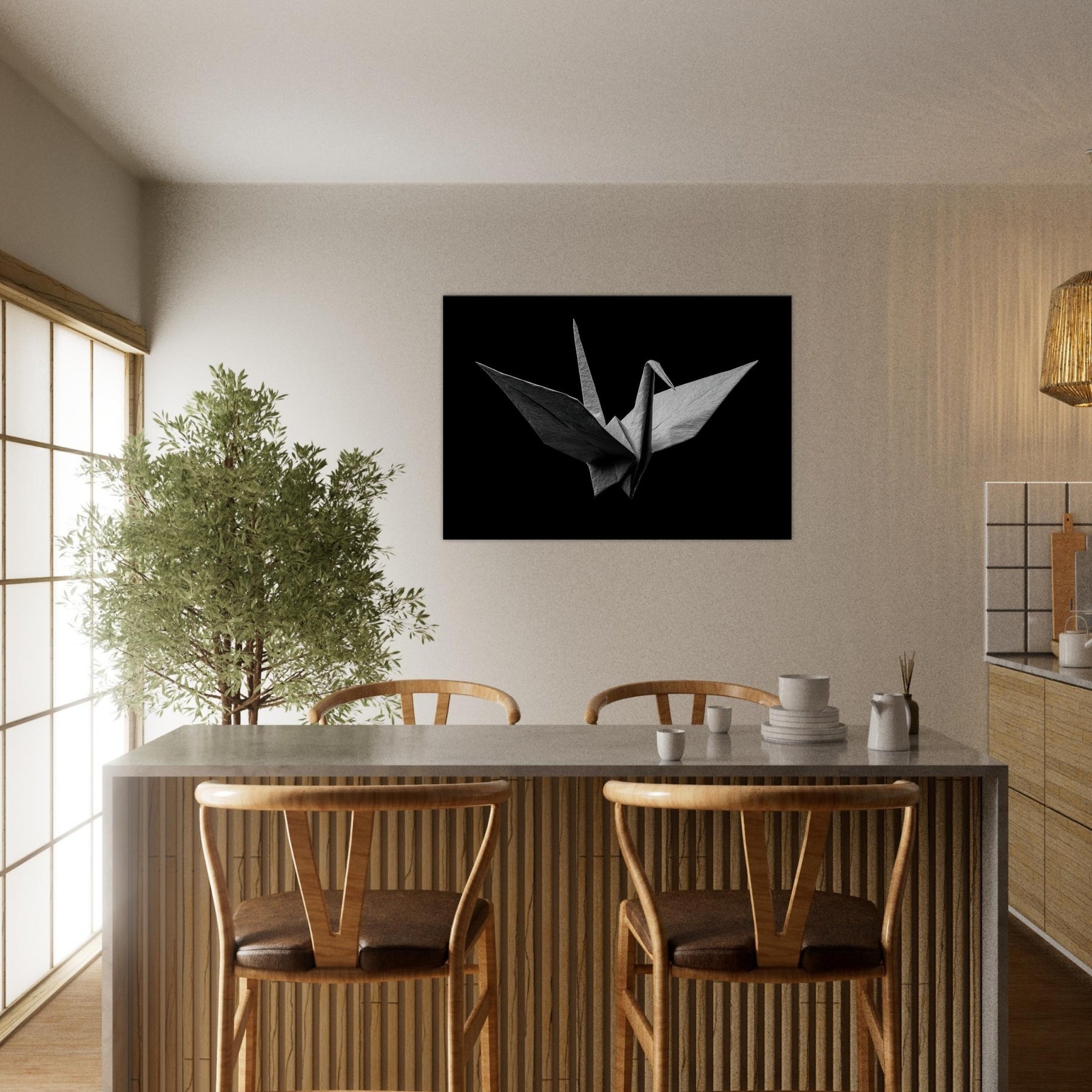 Quietly poised in a velvet shadow, this Origami Crane unfolds as a study in restraint and elegance. The black and white folds capture light with a subtle, tactile sheen, turning a room into a sanctuary of calm. Each crease invites slow, mindful observation, while negative space lends breath to the composition. Perfect for modern living spaces, it anchors a serene palette, elevating walls with quiet drama and a sense of poised possibility.