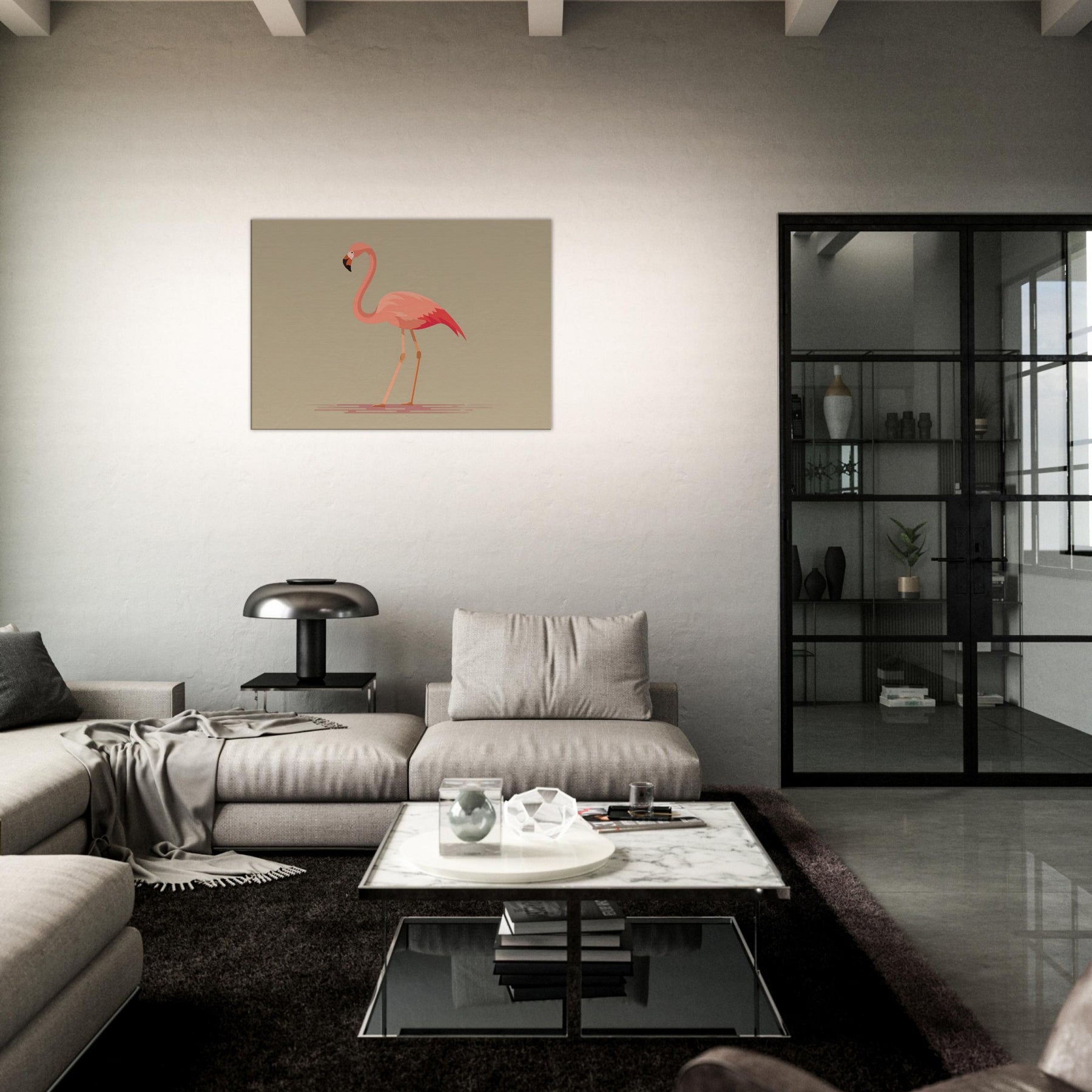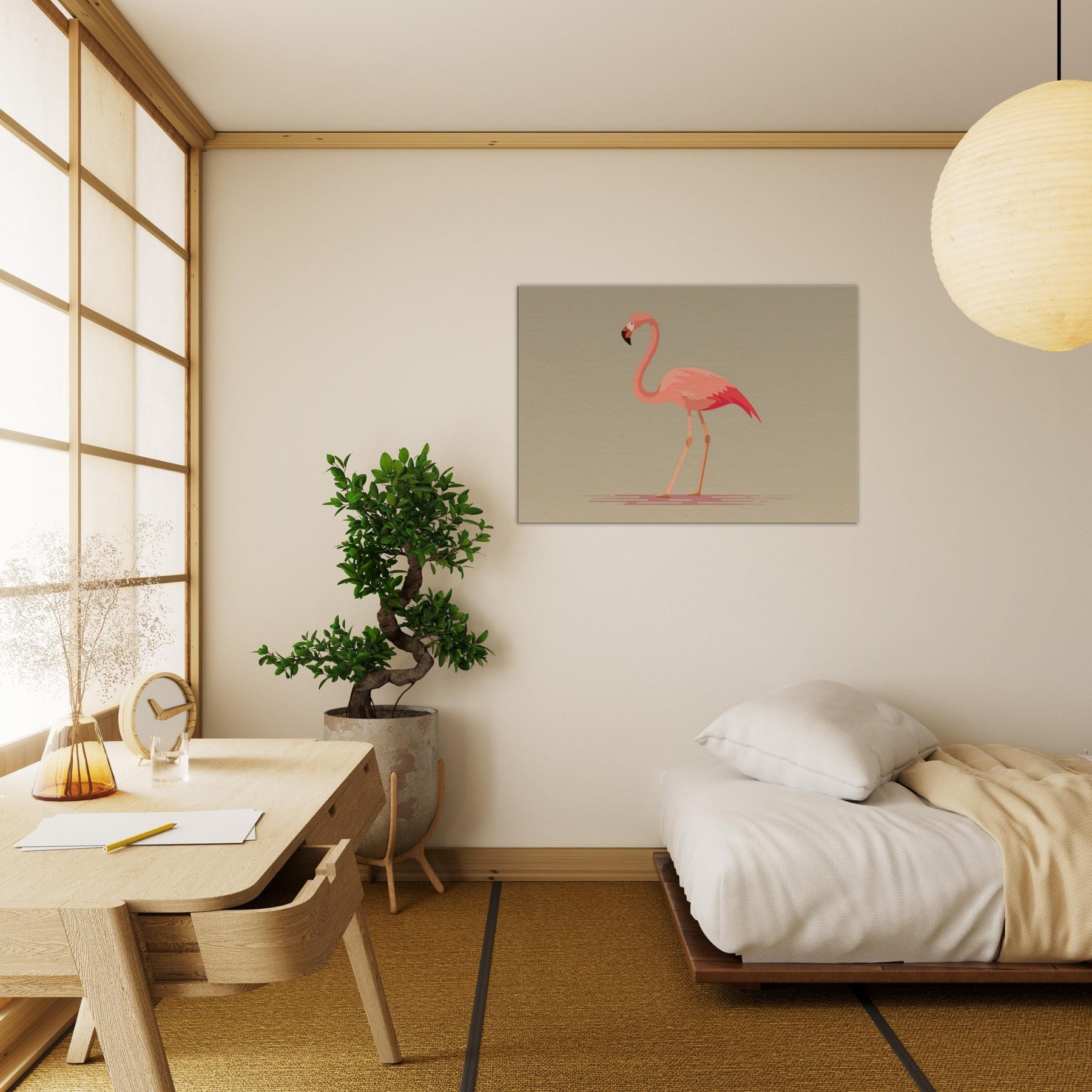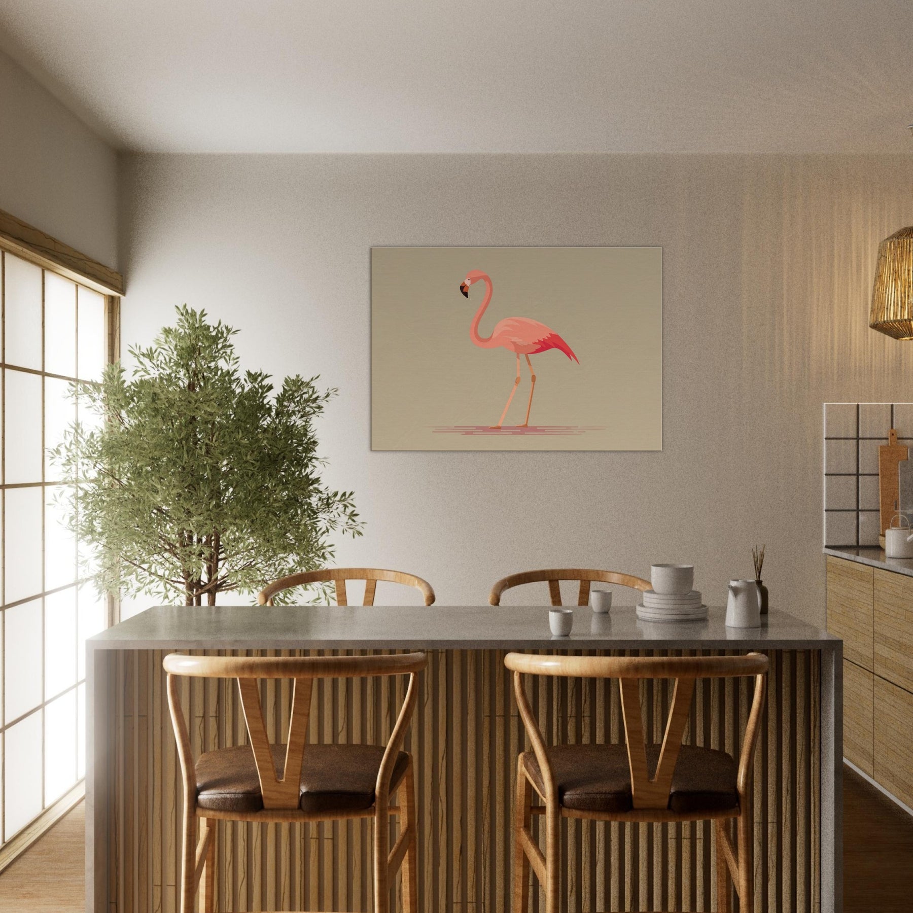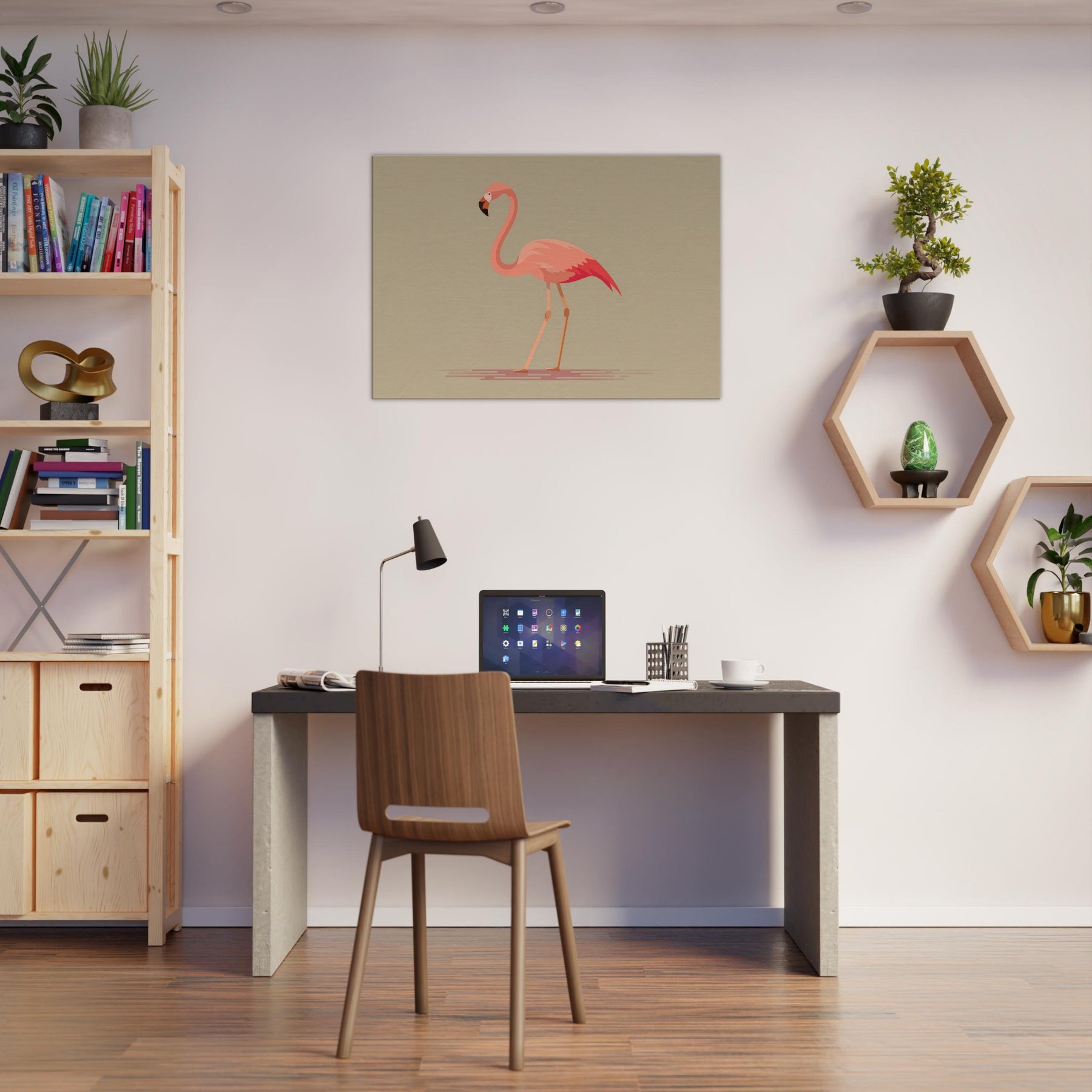 In this minimalist ode to the Flamingo, the clean silhouette and warm coral tones invite a tranquil pause in any room. The long, curved neck and poised stance suggest quiet balance, while the soft gradient hints at morning light spilling across a quiet shore. Mounted above a sofa or in a hallway, the piece casts a gentle glow, elevating the space with refined charm and a whisper of the exotic.