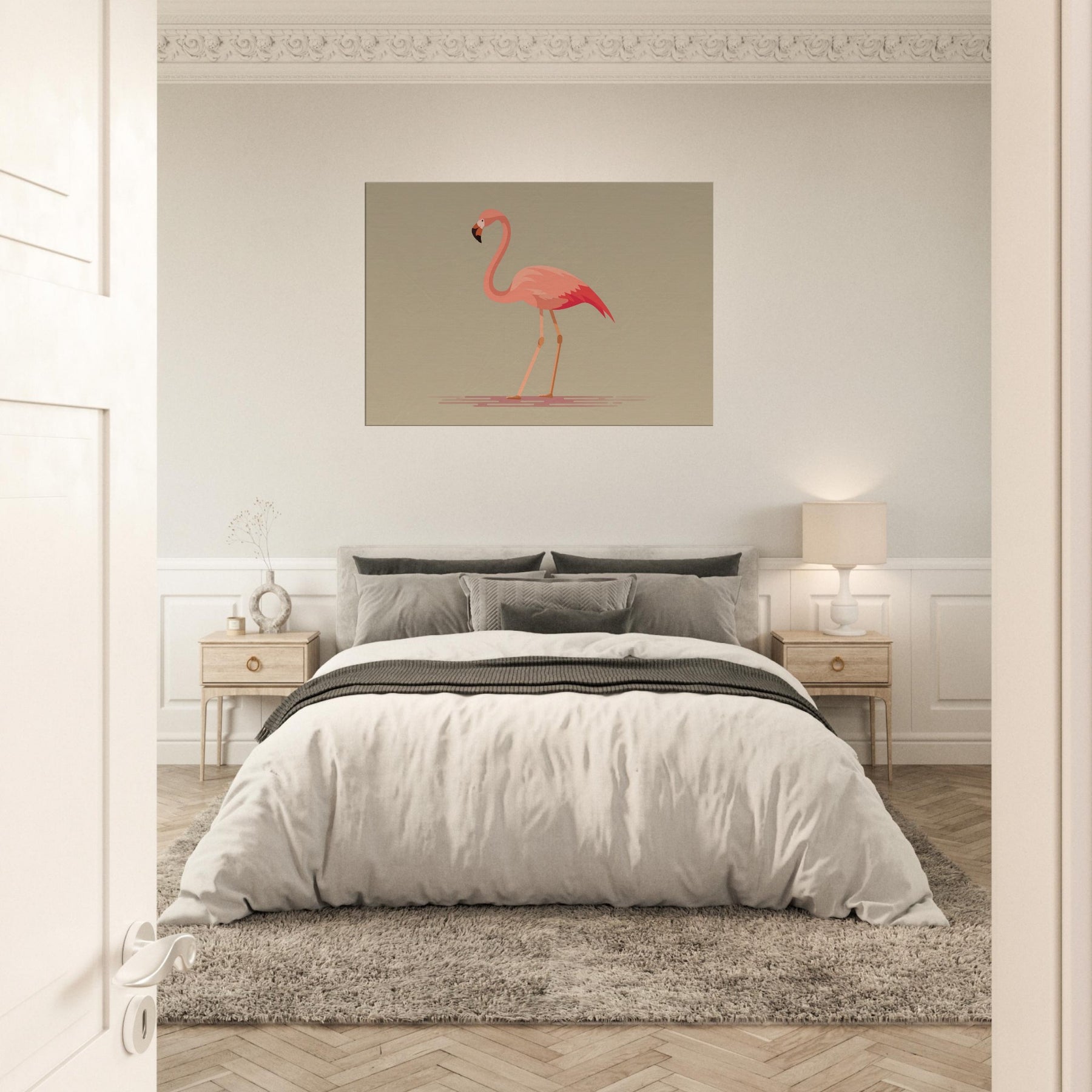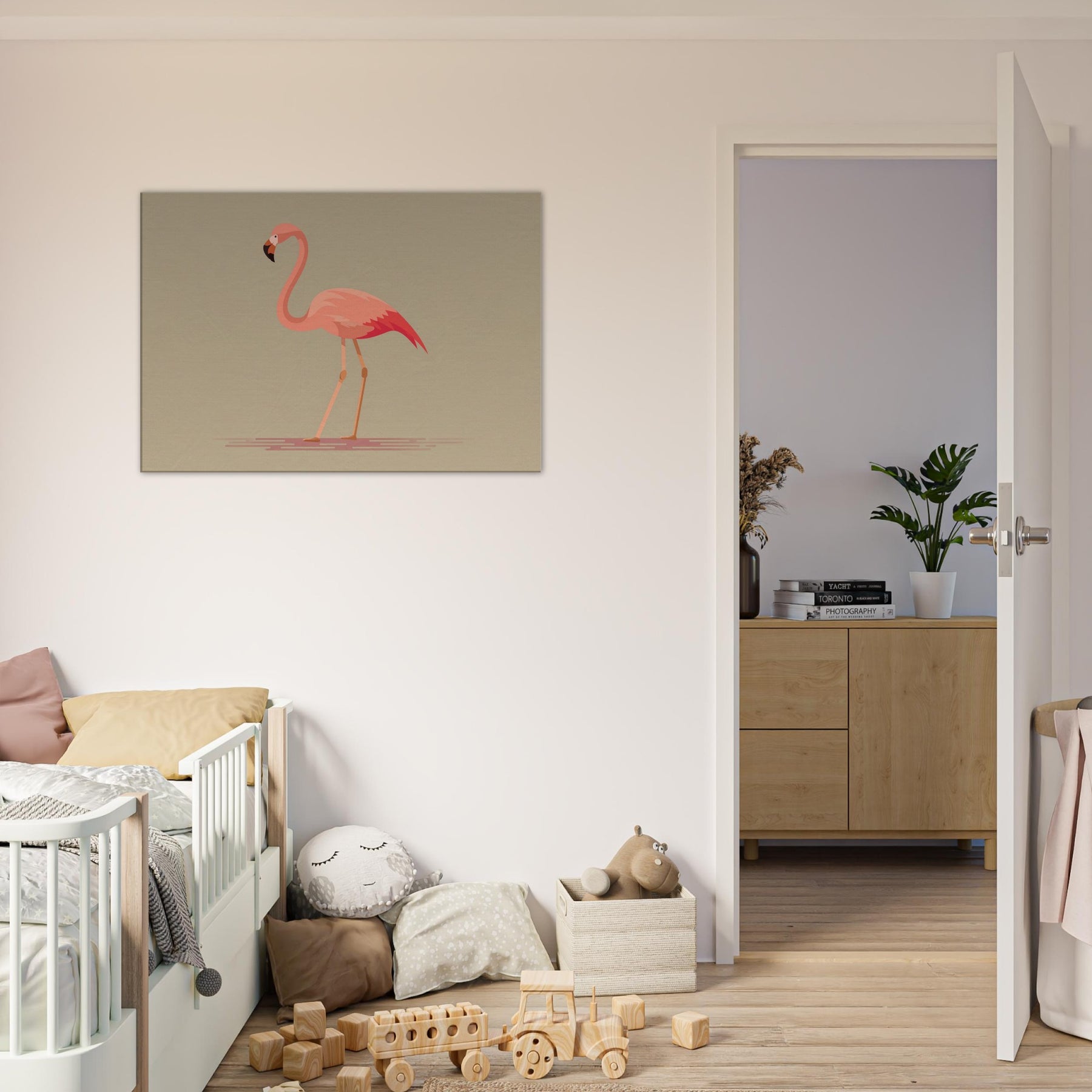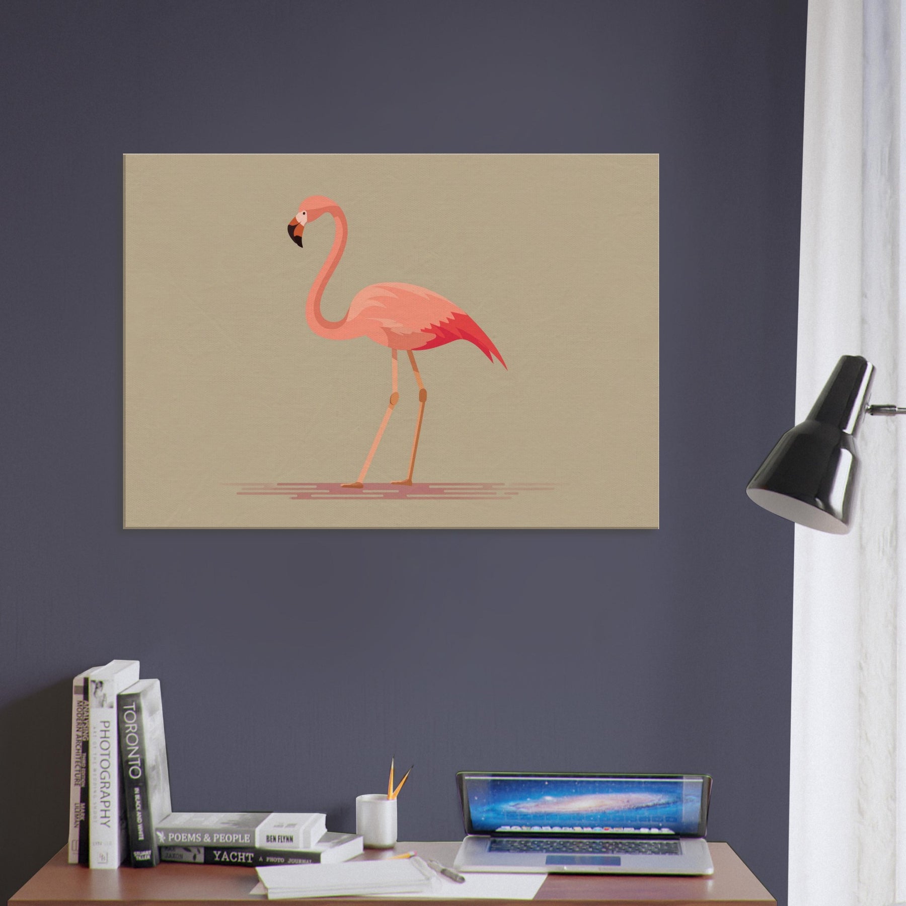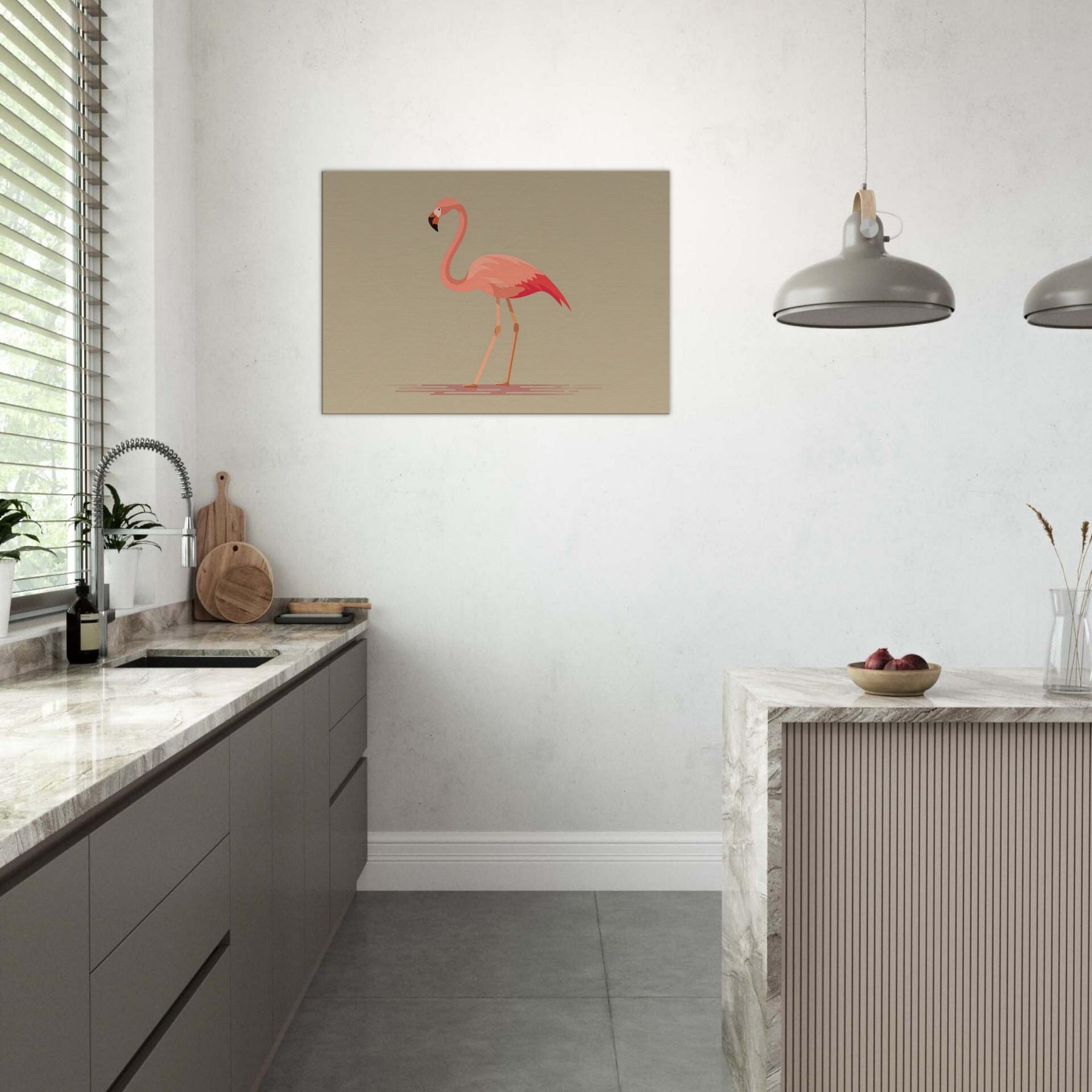 In this minimalist ode to the Flamingo, the clean silhouette and warm coral tones invite a tranquil pause in any room. The long, curved neck and poised stance suggest quiet balance, while the soft gradient hints at morning light spilling across a quiet shore. Mounted above a sofa or in a hallway, the piece casts a gentle glow, elevating the space with refined charm and a whisper of the exotic.