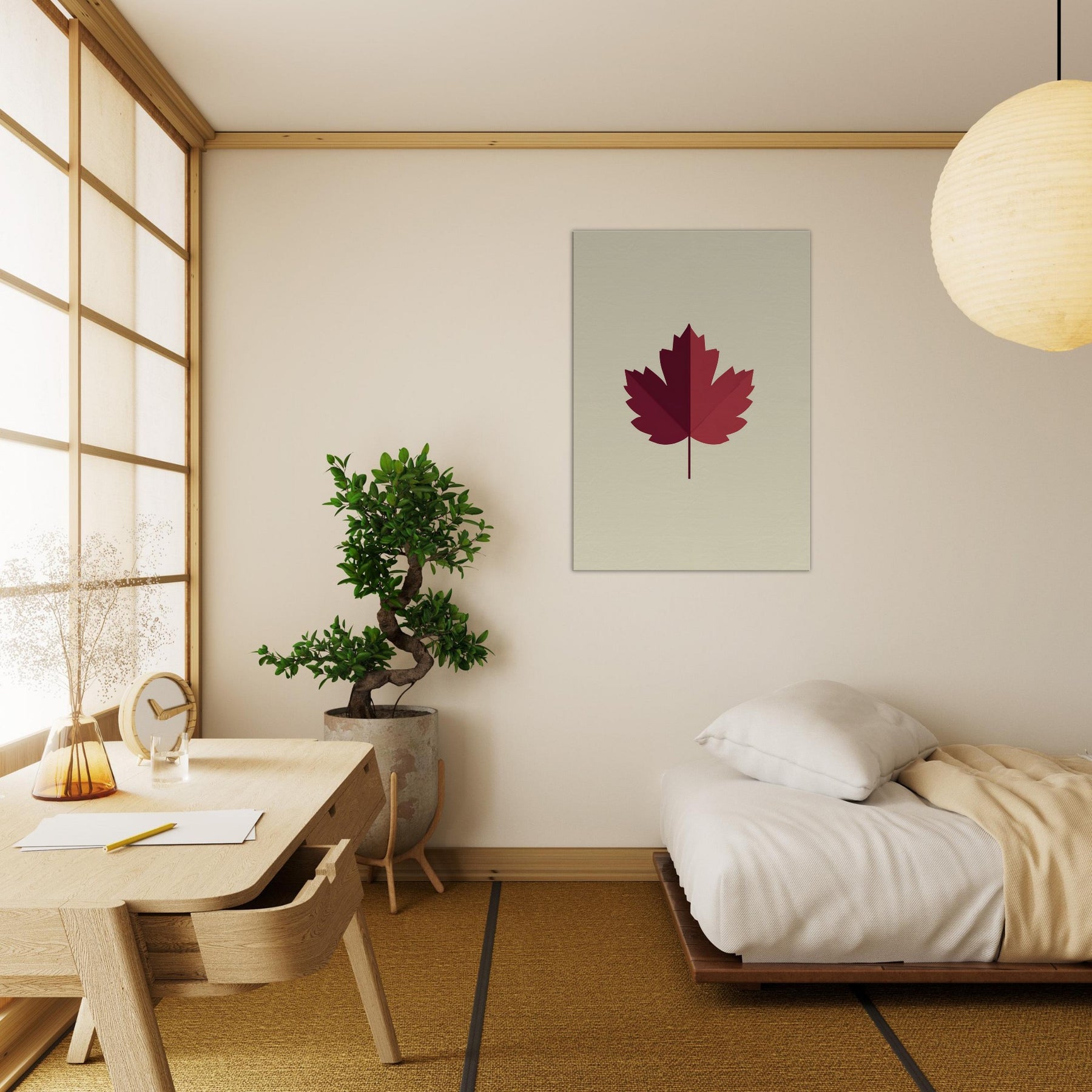 Immerse your space in the quiet drama of a single Maple Leaf, rendered with clean lines and softened edges. This minimalist study of nature captures the leaf’s poised symmetry in deep crimson against a calm, warm backdrop, inviting stillness and reflection. Perfect for a living room or bedroom, it humbles distractions and amplifies texture, light, and scent of wood and rain. The Maple Leaf becomes a daily ritual of calm an understated focal point that harmonizes modern interiors with the gentleness of nature.