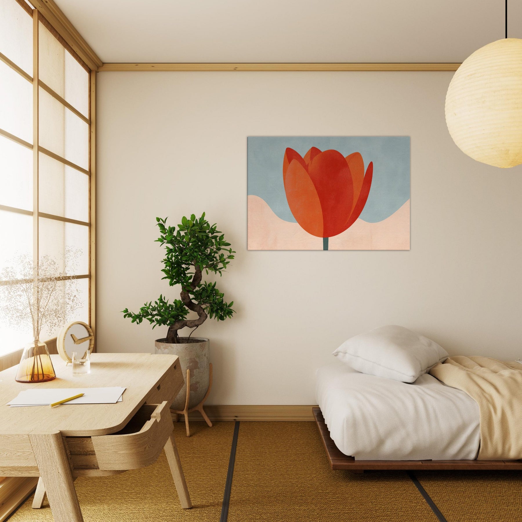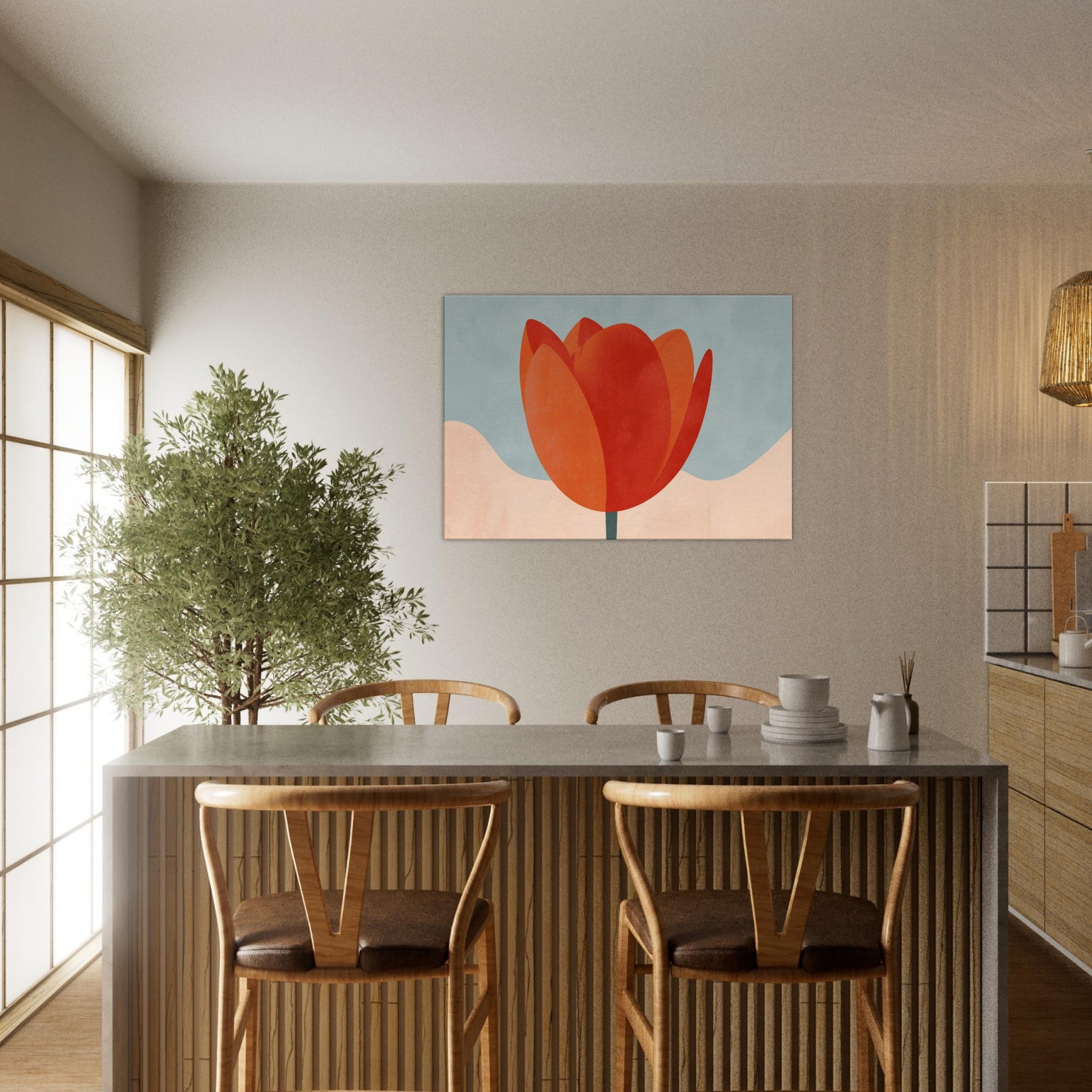 Shaped in minimalist grace, the Tulip blooms as a soft, radiant silhouette that invites quiet evenings and sunlit mornings alike. This artwork wraps a room in warm coral and pale sky, its clean lines and generous negative space evoking a breath of nature at rest. A gentle focal point, it enhances a living space with calm energy, offering a moment of stillness amid daily motion. Let the Tulip become your everyday reminder that beauty can be simple, striking, and deeply soothing.