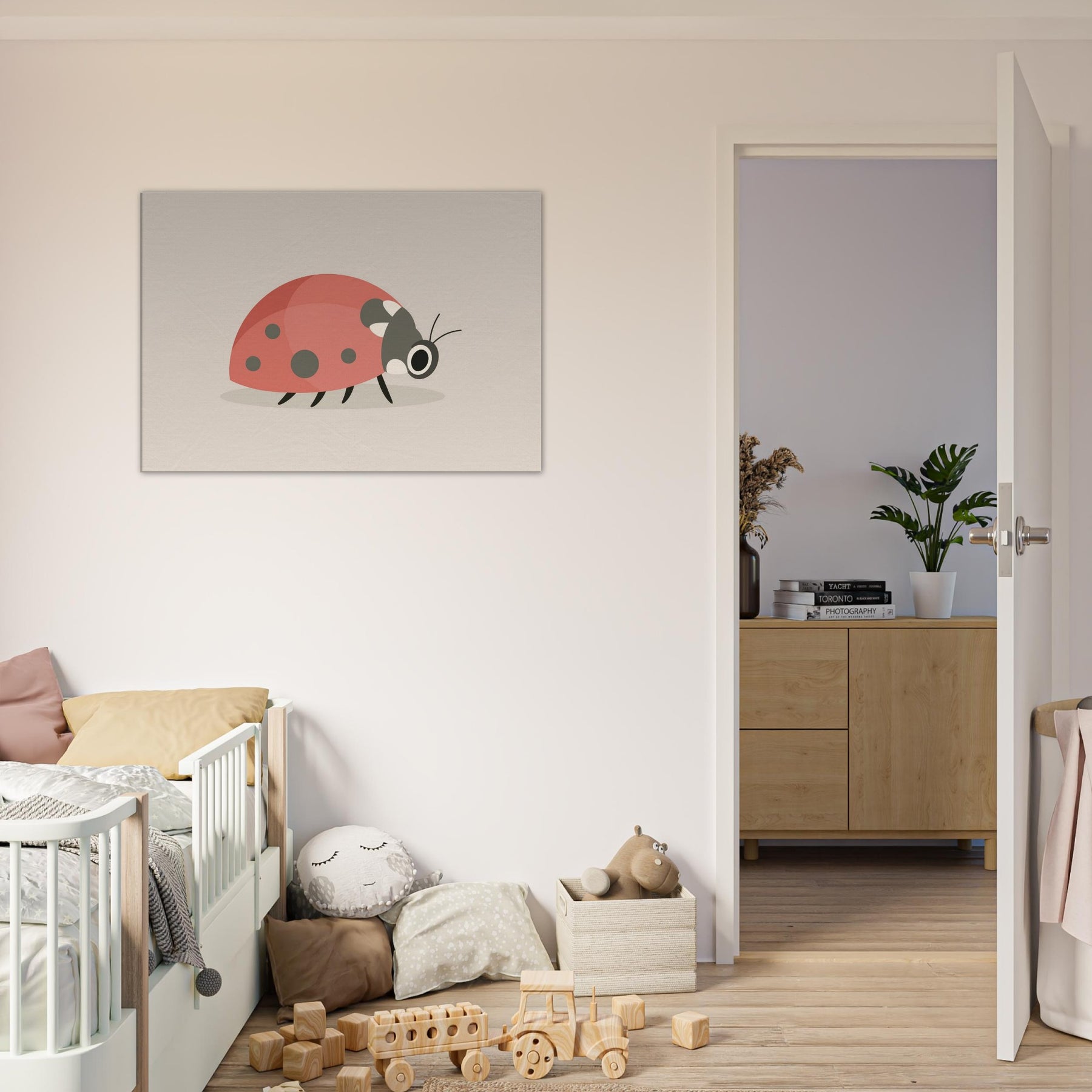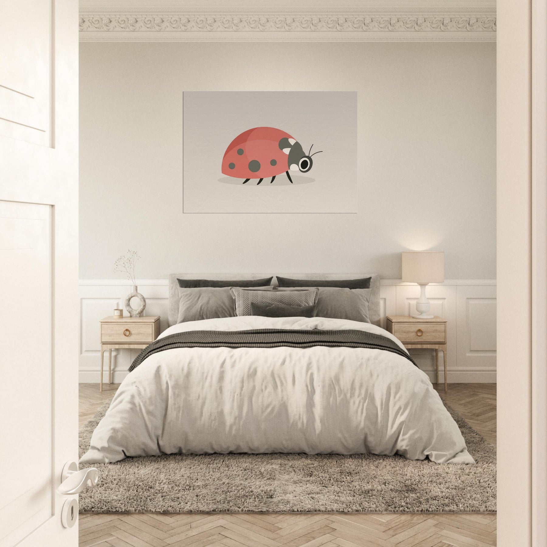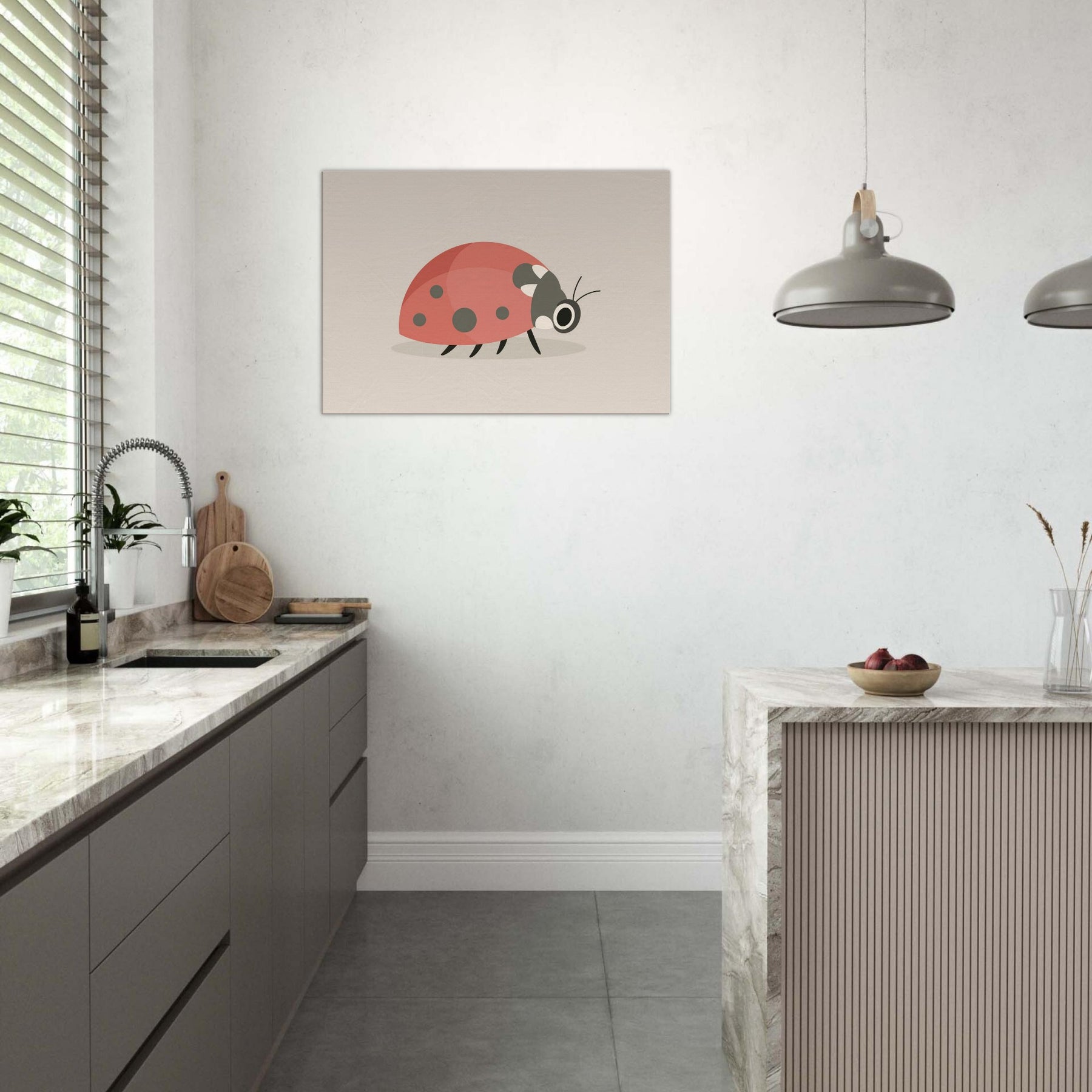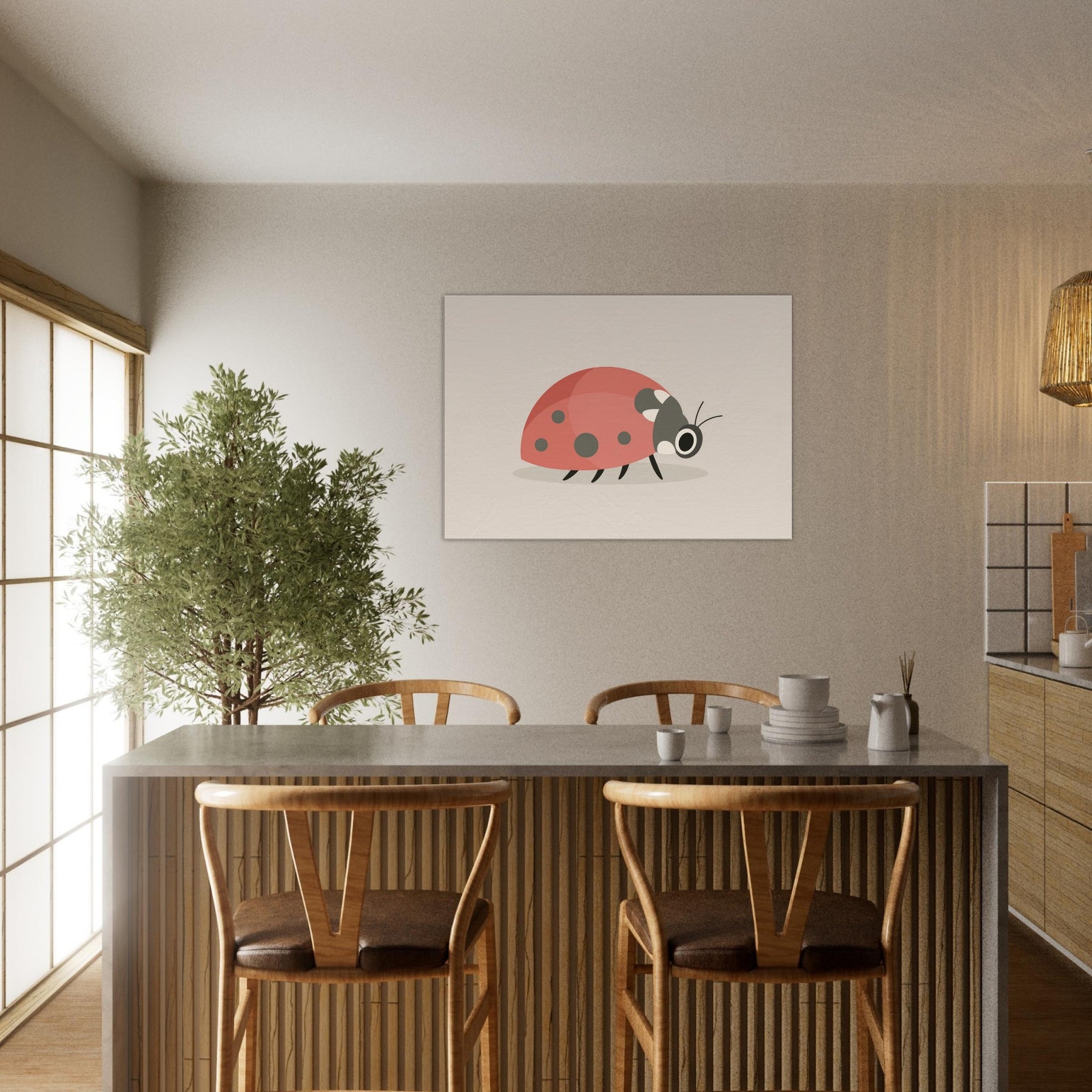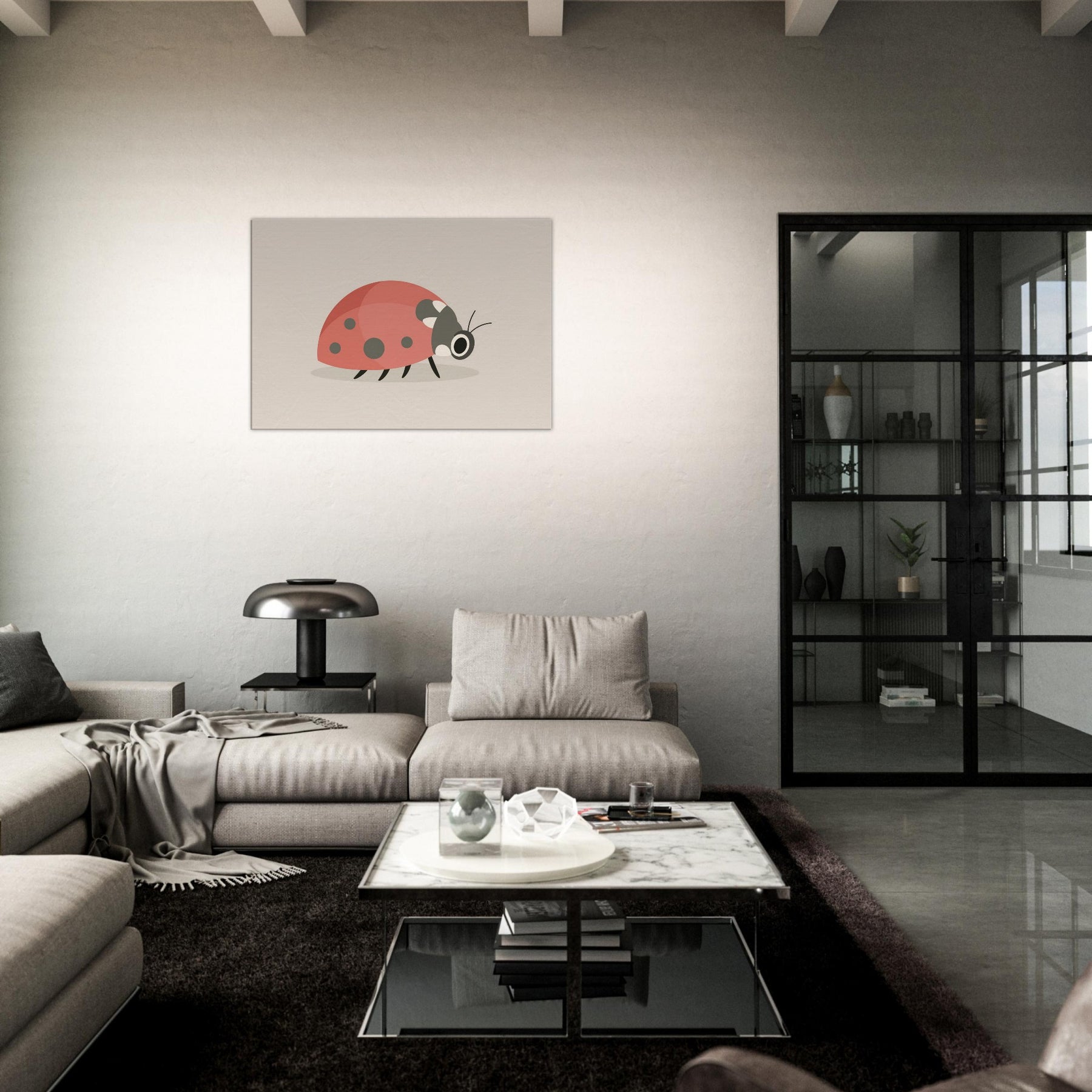 An understated centerpiece for any room, this piece centers on a Ladybug rendered in gentle curves and soft tones. The shell blooms in warm coral with muted gray spots, while a quiet shadow anchors the figure to a sunlit floor. Minimal yet expressive, it invites a moment of pause, turning a blank wall into a calm vignette that echoes natural ease. Perfect for a living room, bedroom, or study, it adds playful charm without shouting for attention.