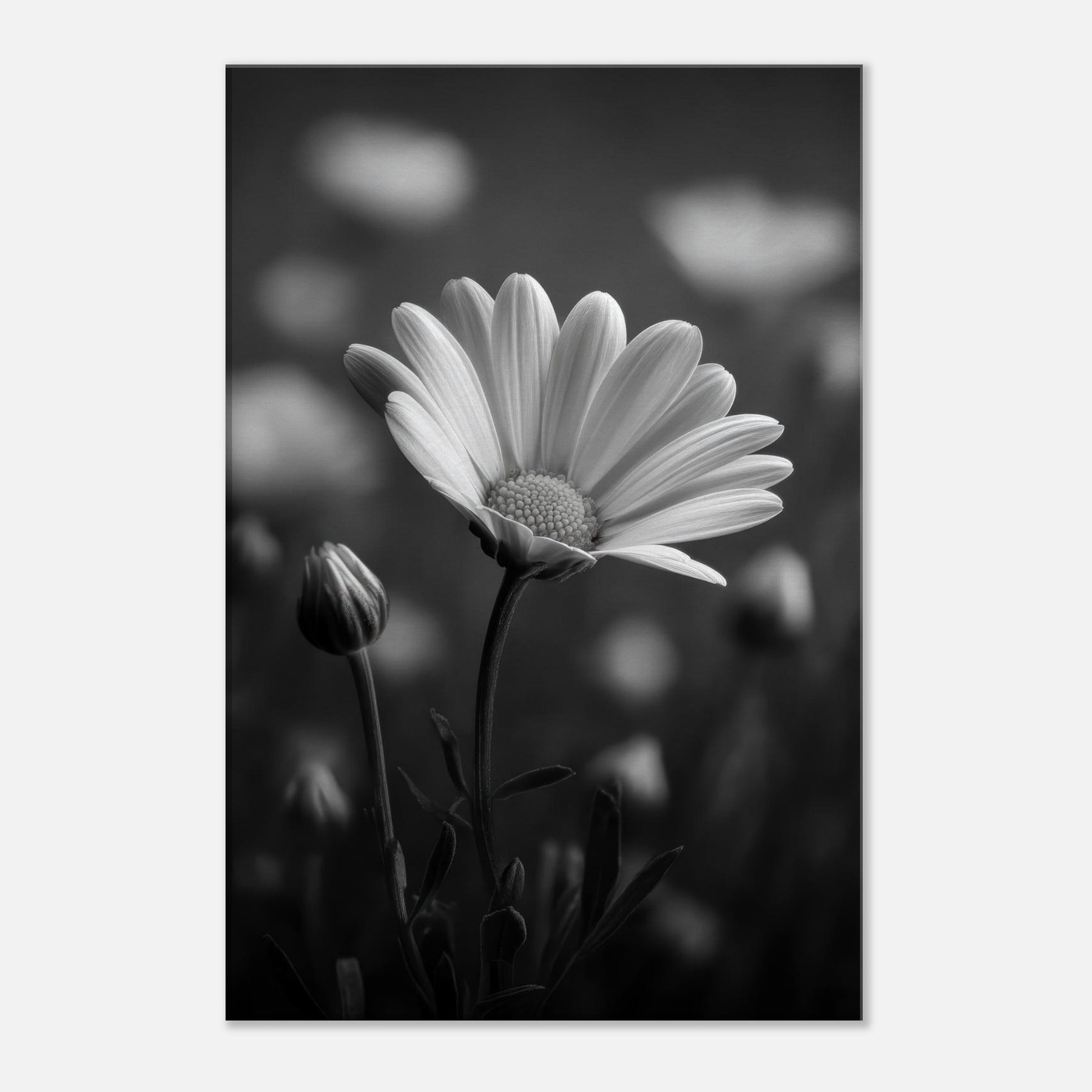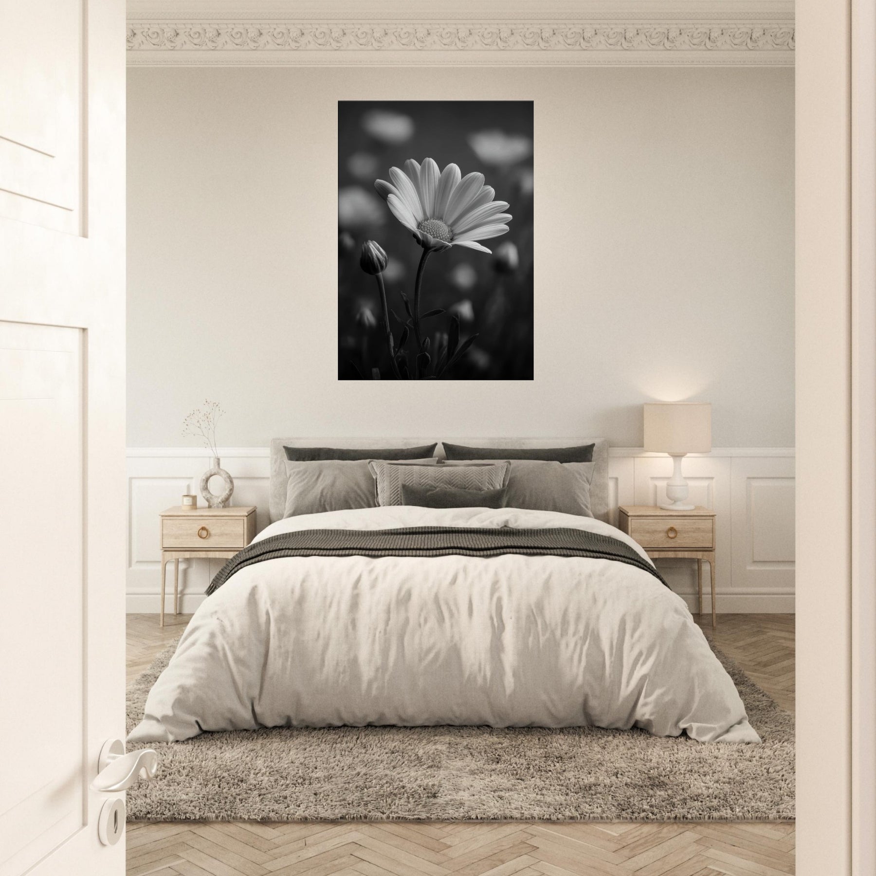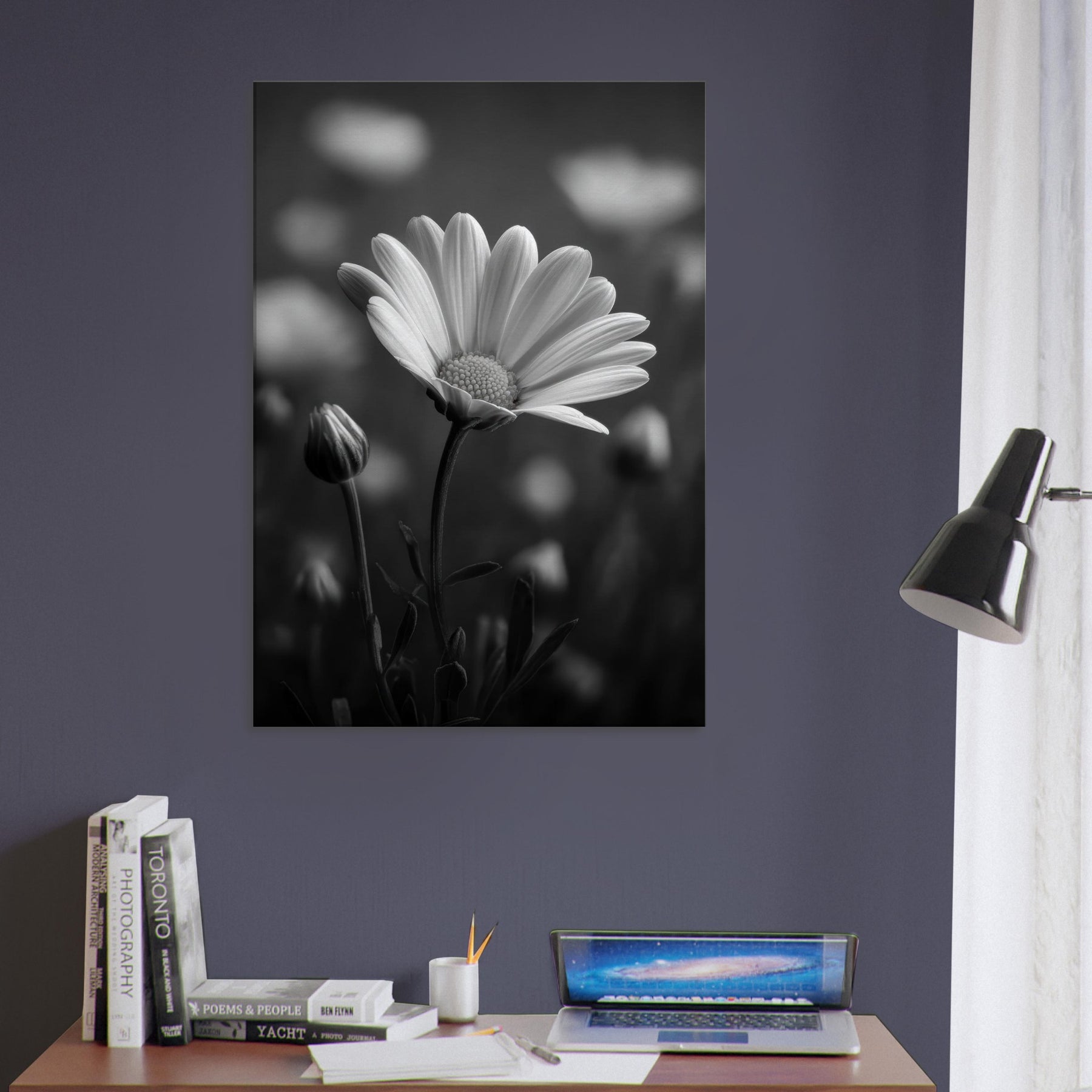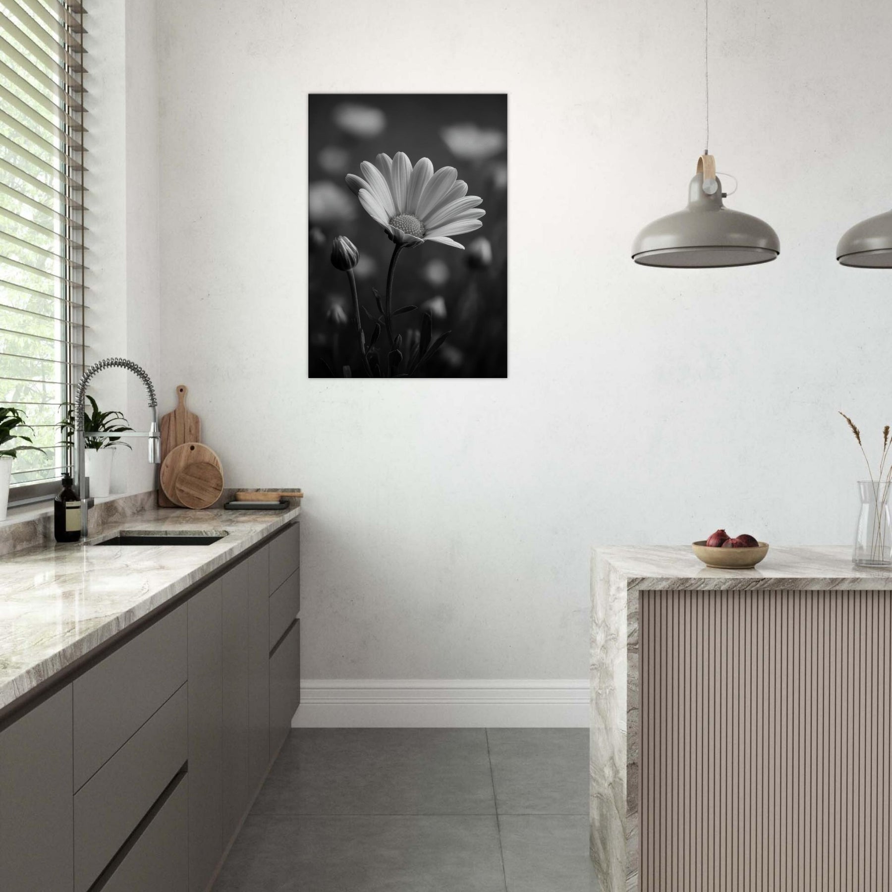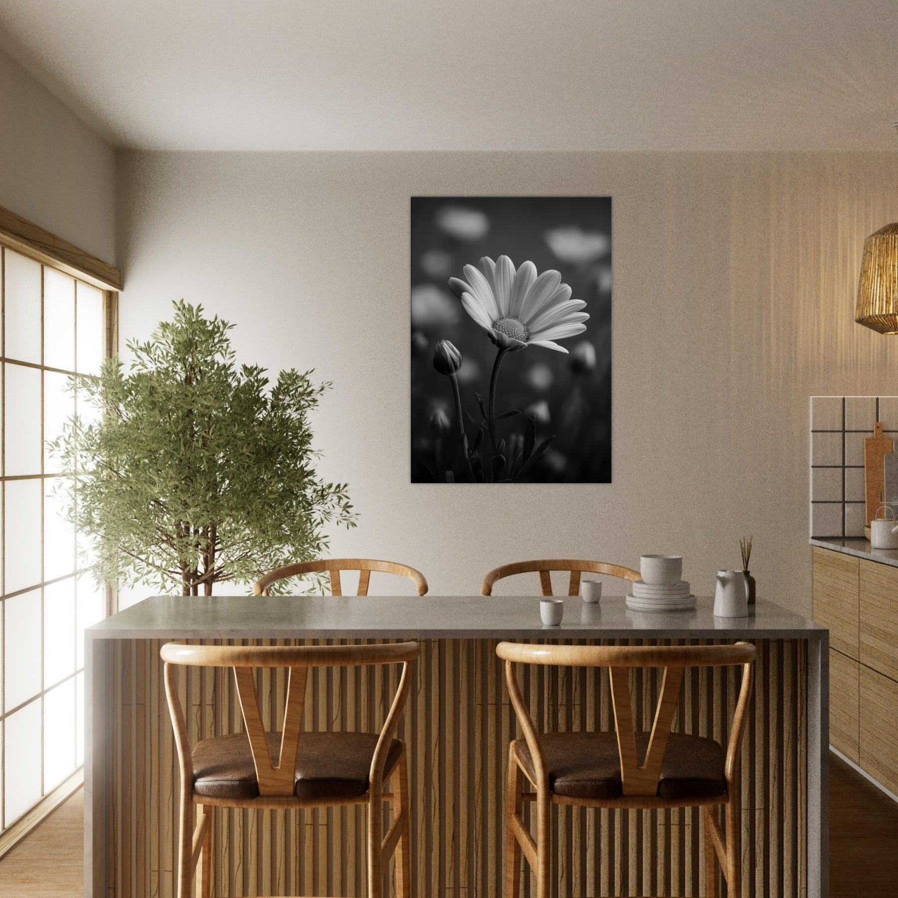 With bathed monochrome light, this Daisy wall art quietly commands the room. The petals unfold in pure white against velvety shadows, a study in resilience and grace.