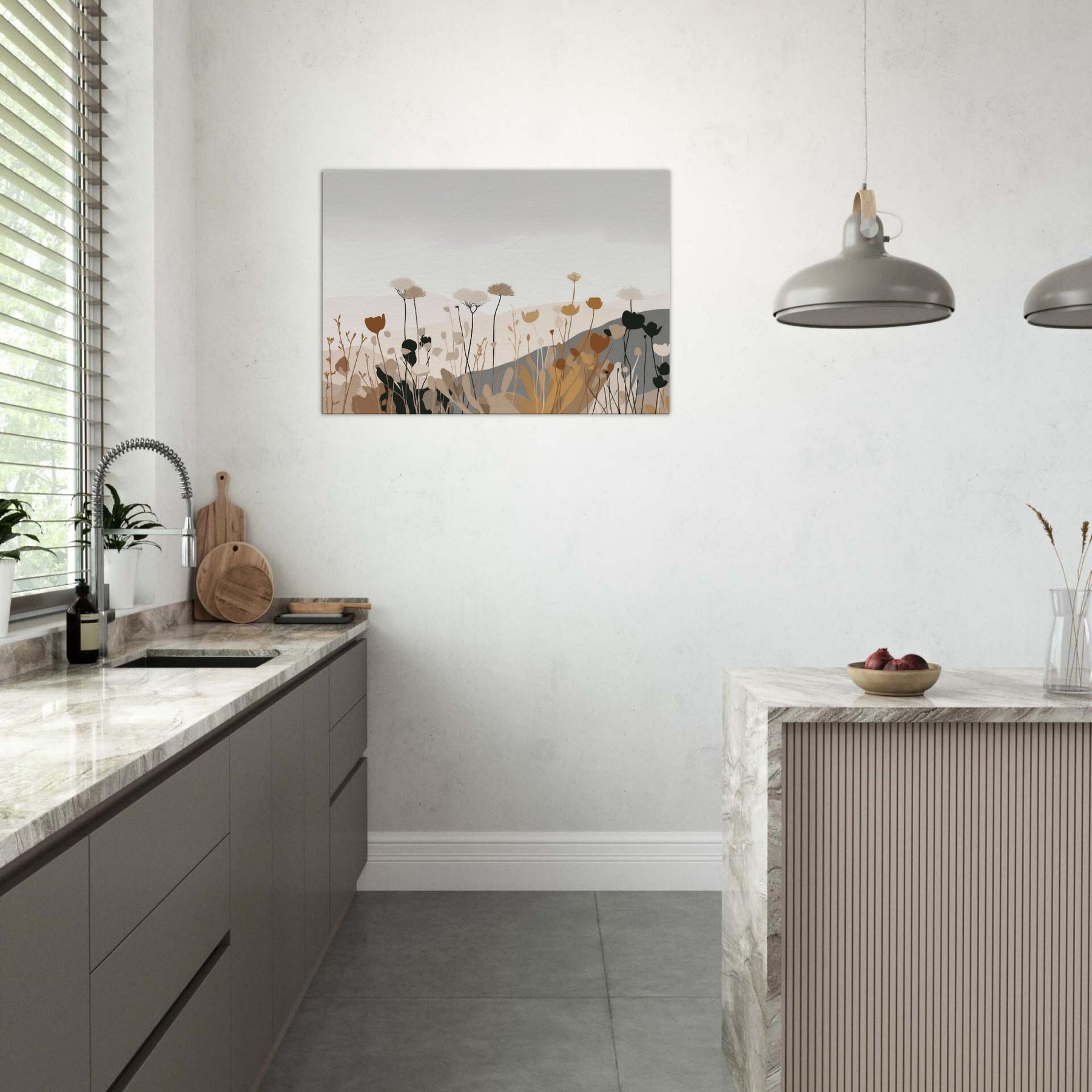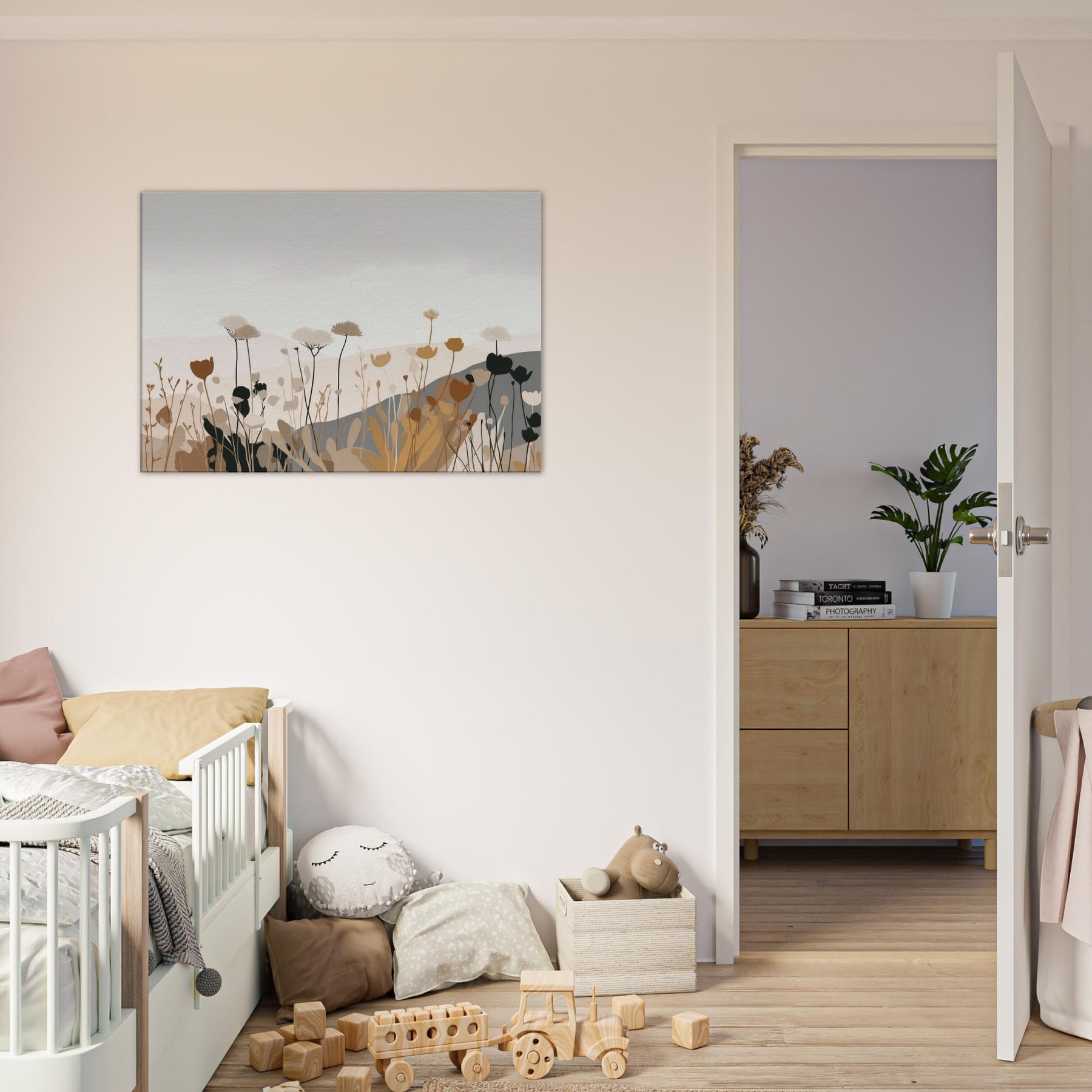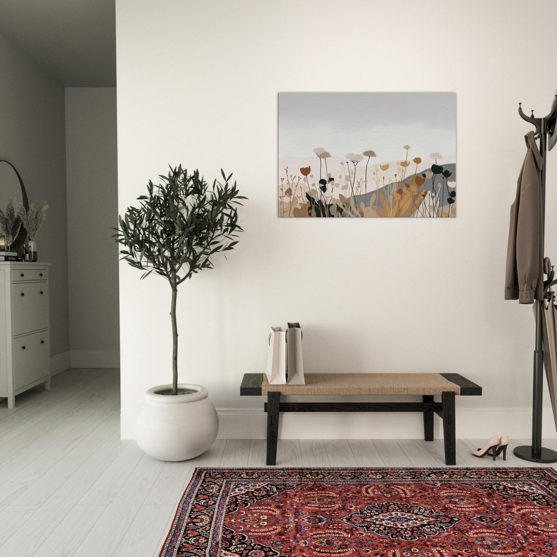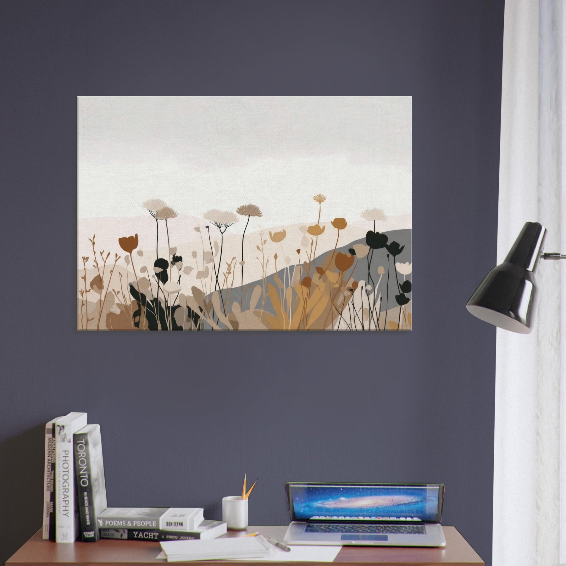 Soft hills, delicate stalks, and a quiet horizon converge in this Flower Field composition. The subtle palette cream, tea, and ash glides across the wall like a morning breath, inviting calm without shouting. The slender stems rise with quiet confidence, turning a room into a breath of open air, a space for reflection and gentle focus. Perfect for living rooms or bedrooms, it lends minimalist elegance and nature’s serene energy to any space seeking clarity and grace.
