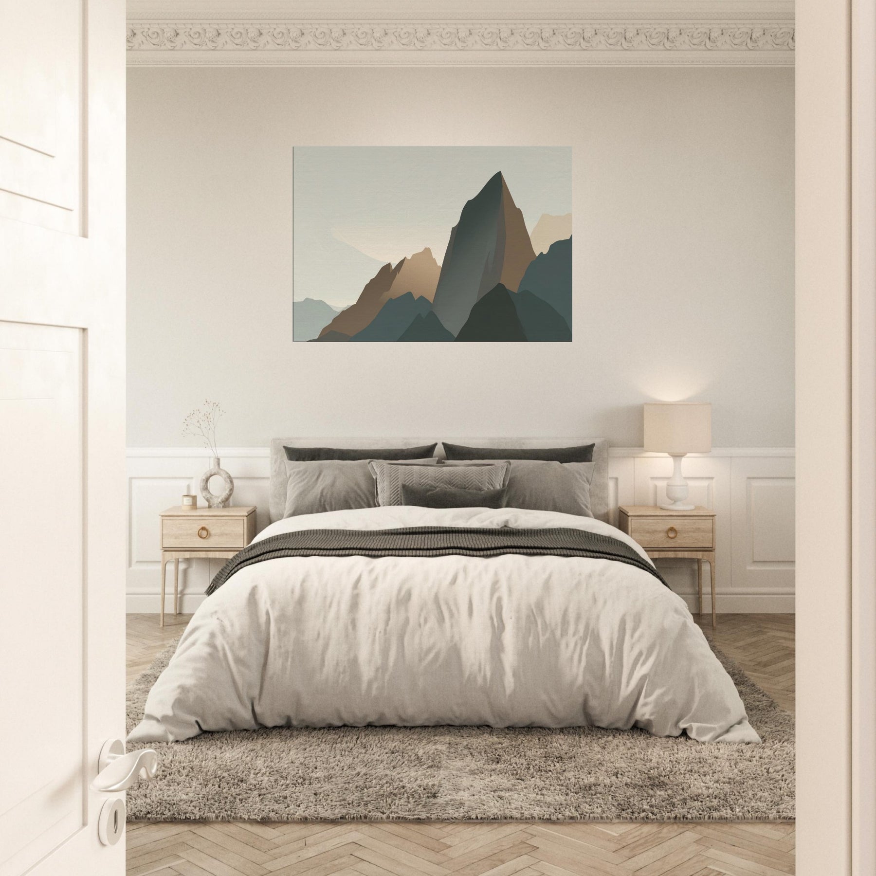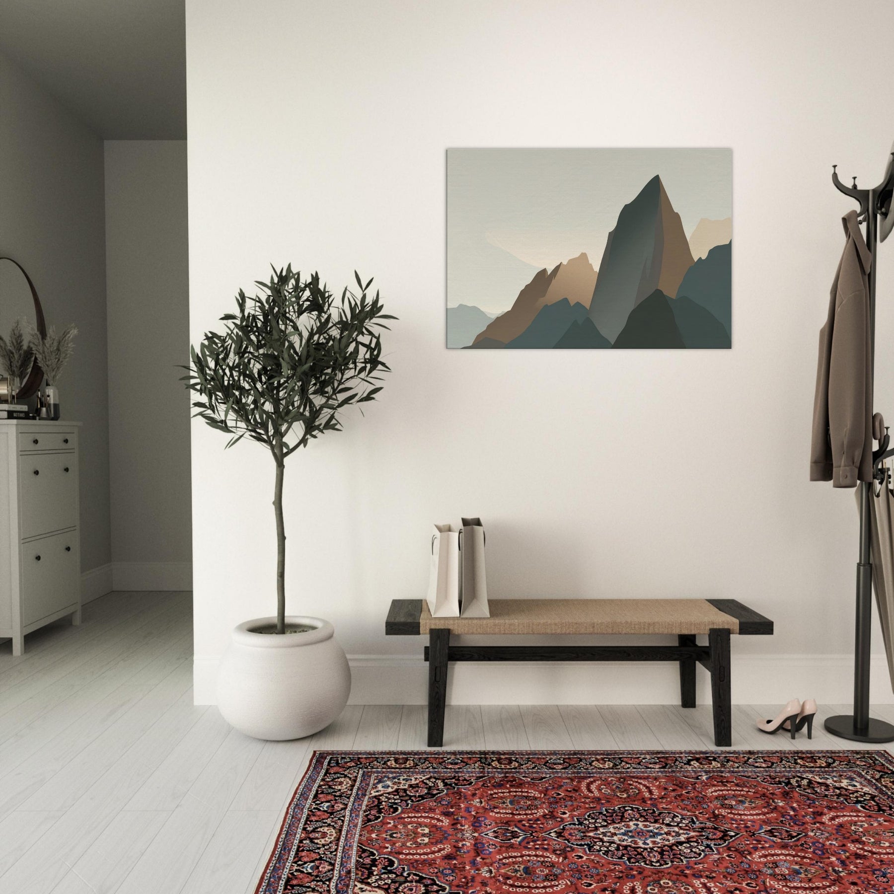 Bathed in pale light, this minimalist study of Cliffs invites a quiet horizon where earth tones meet the sky. The layered silhouettes, rendered in soft ochres and dusky greens, encourage the eye to drift and breathe, turning a wall into a place of pause. Perfect for living rooms or bedrooms, it harmonizes with natural textures to amplify calm and focus. The Cliffs stand as a steady, timeless accent subtle drama you can live with daily.
