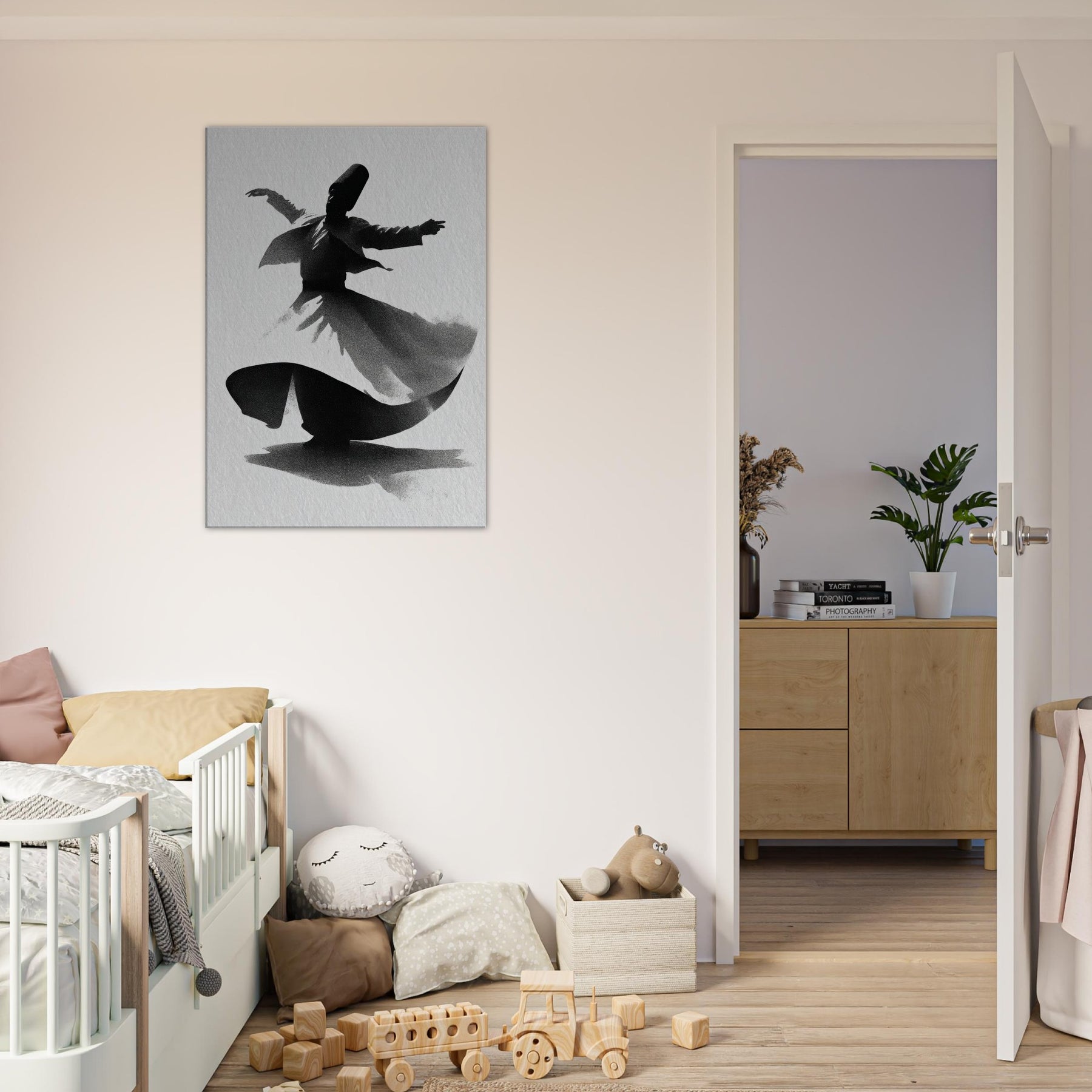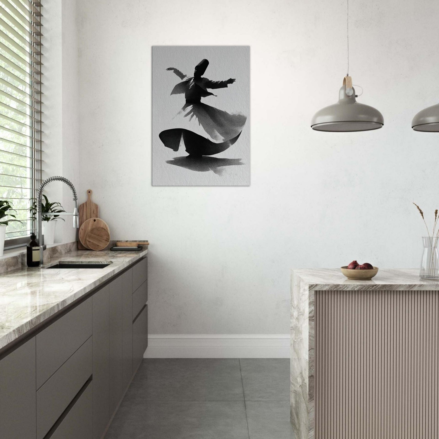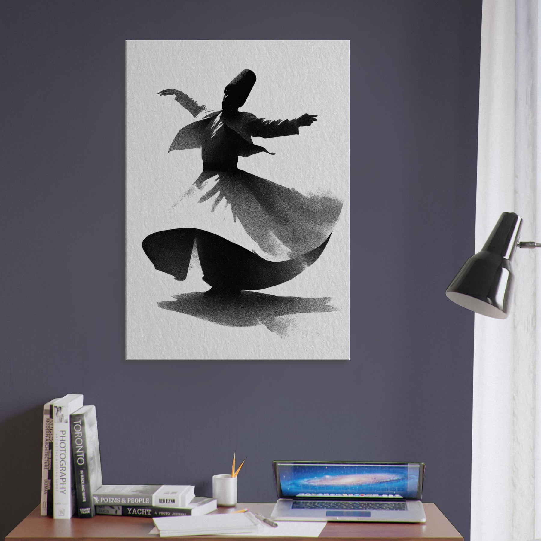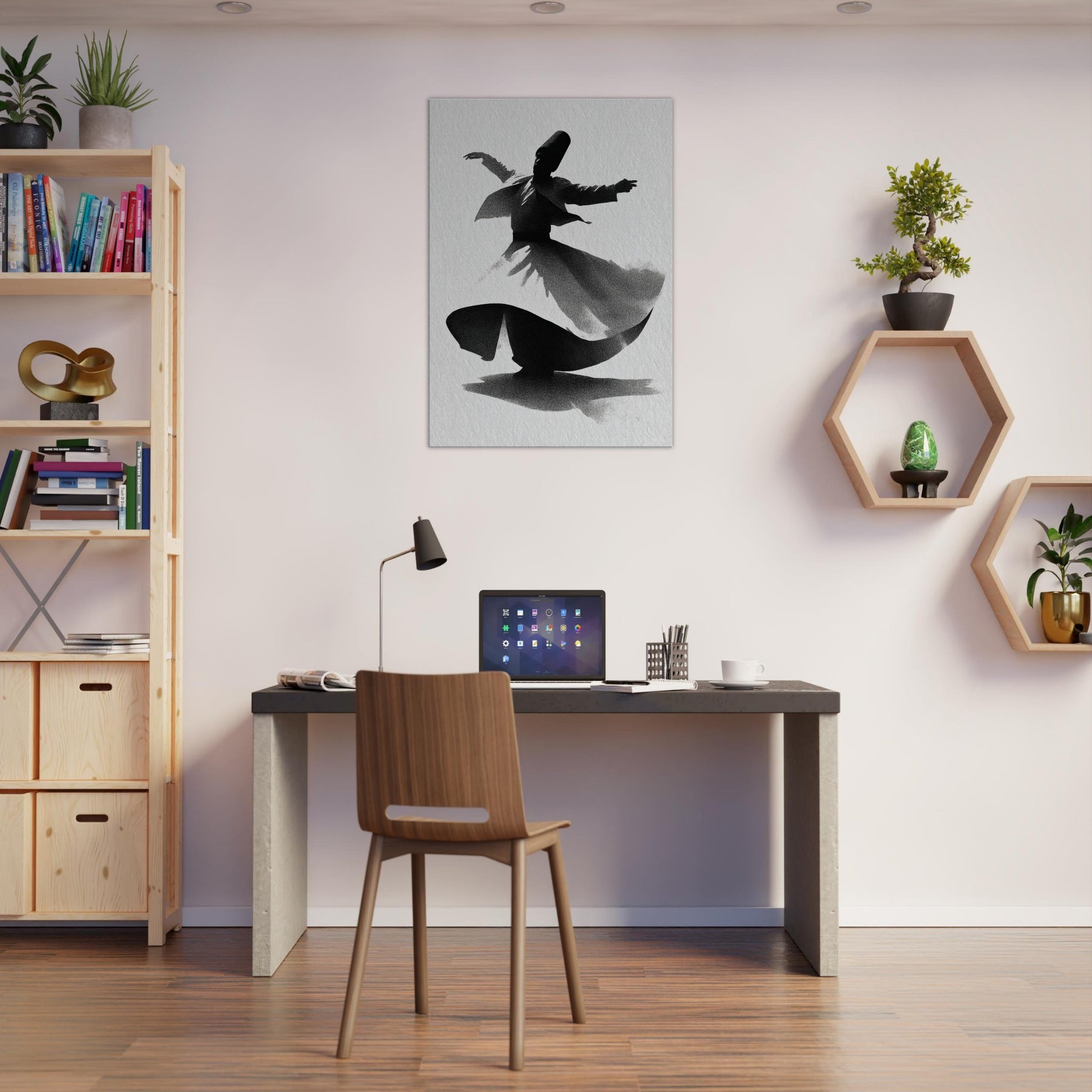 In black and white, the silhouette unfurls like a meditative poem in motion. The stark contrast and soft edges invite quiet contemplation, turning a living room into a sanctuary of breath and balance.