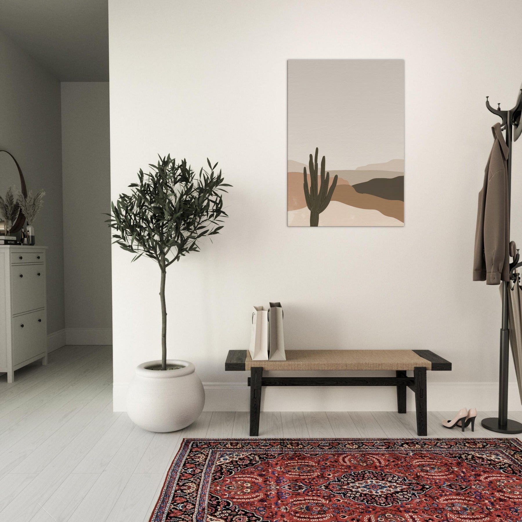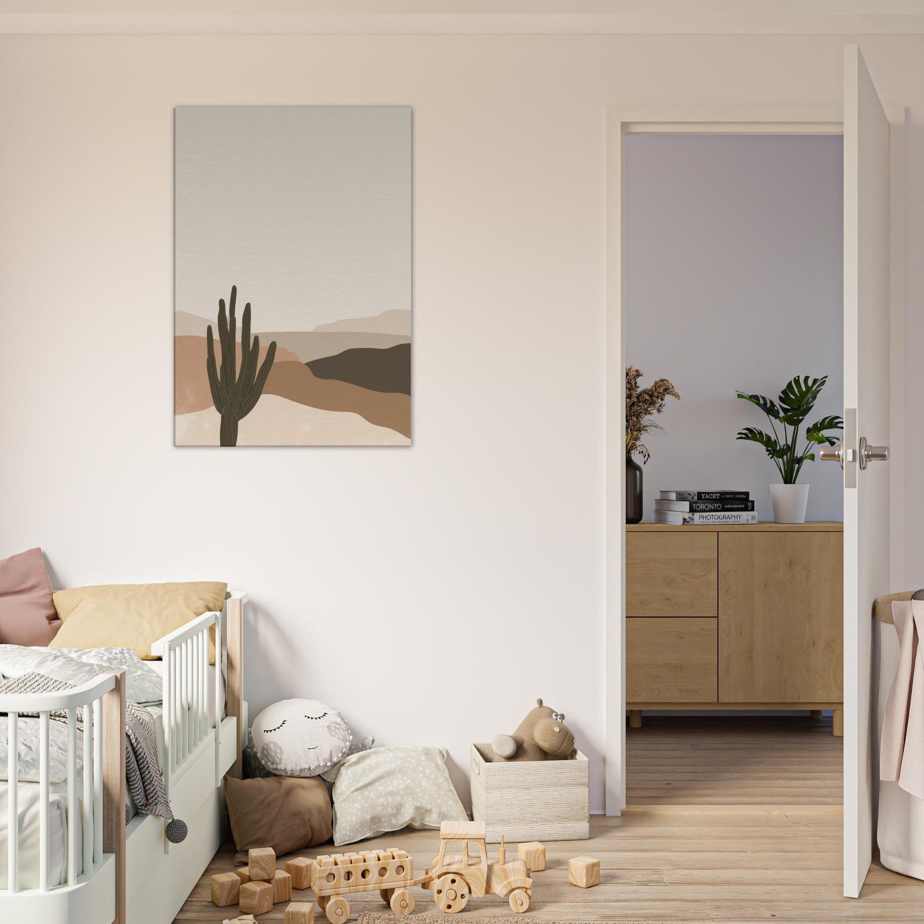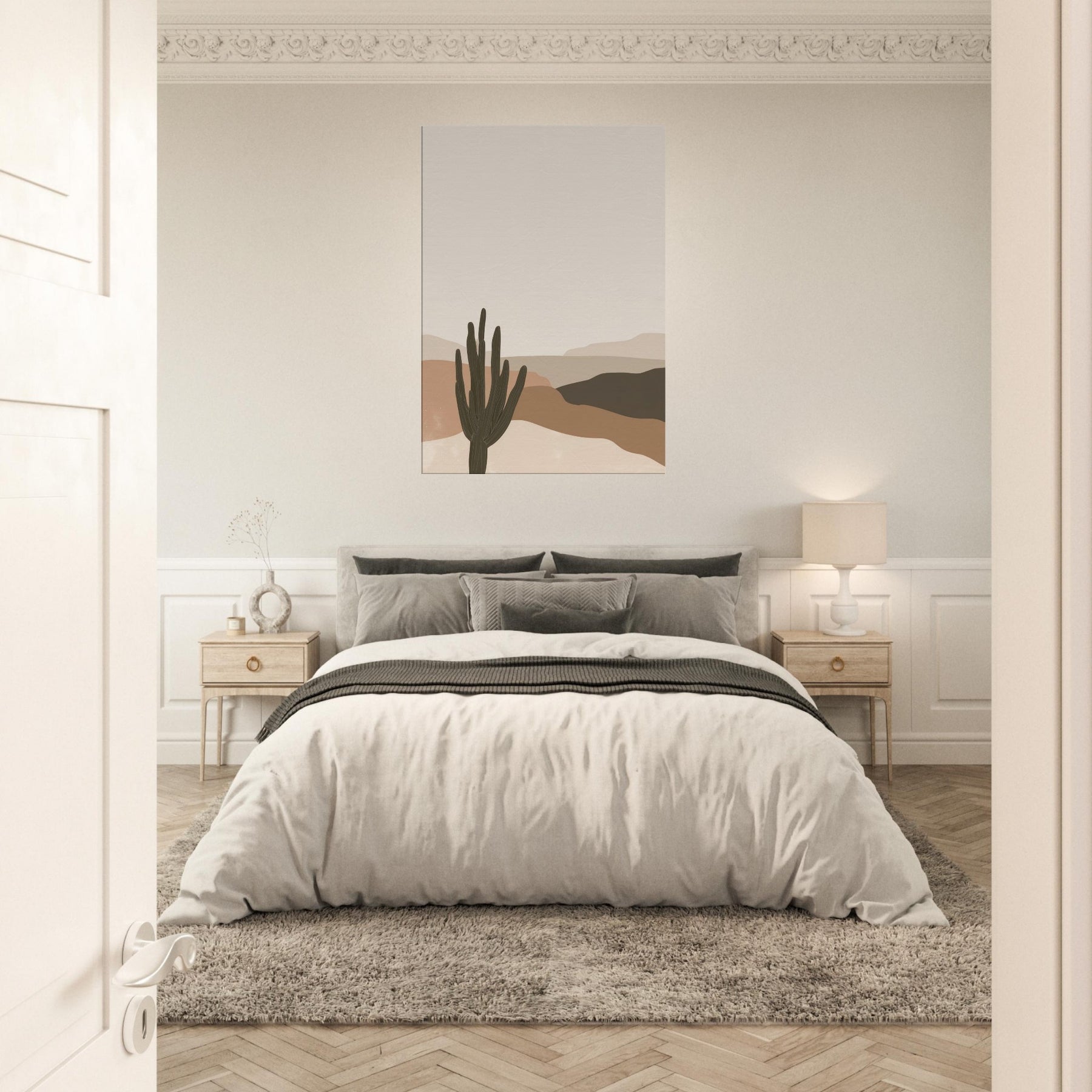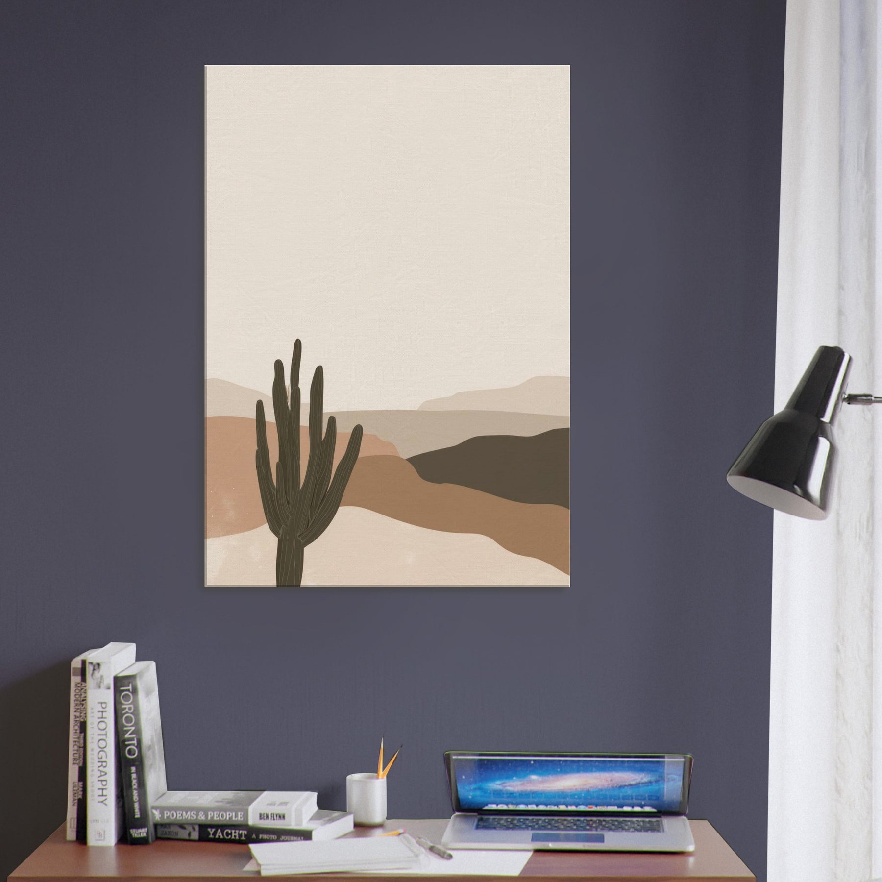 Mediate on quiet horizon and warm mineral light. This Desert minimalist study unfolds across soft sands and a solitary cactus, inviting stillness into your living room or bedroom. The composition breathes with spacious negative space, letting color and texture shimmer like heat rising off a dune at dusk. Its serene mood pairs with sculptural edges and muted earth tones, turning any wall into a sanctuary where conversations slow and ideas flow as gently as a desert breeze.