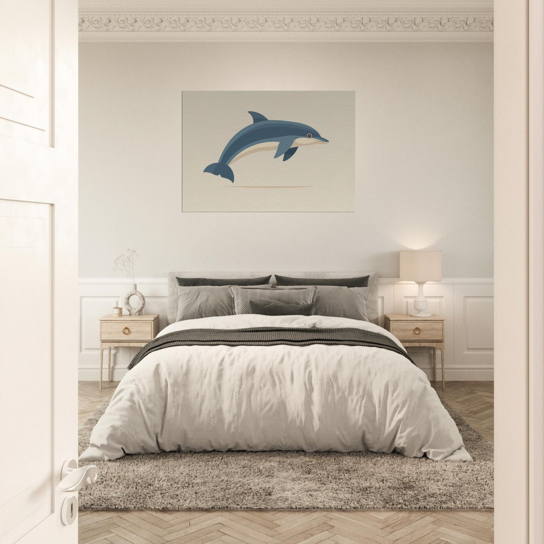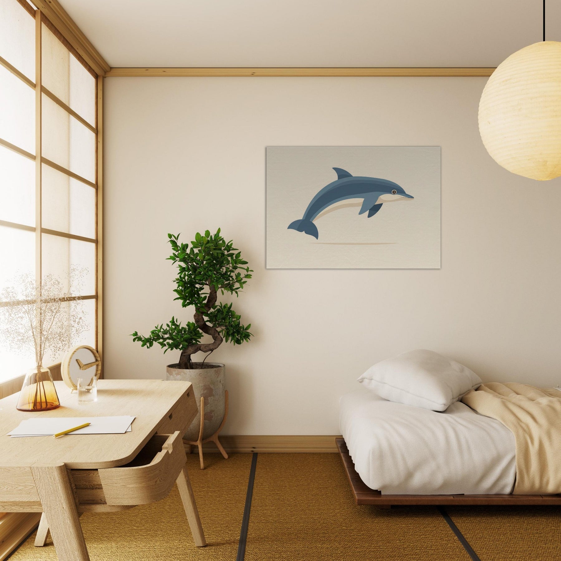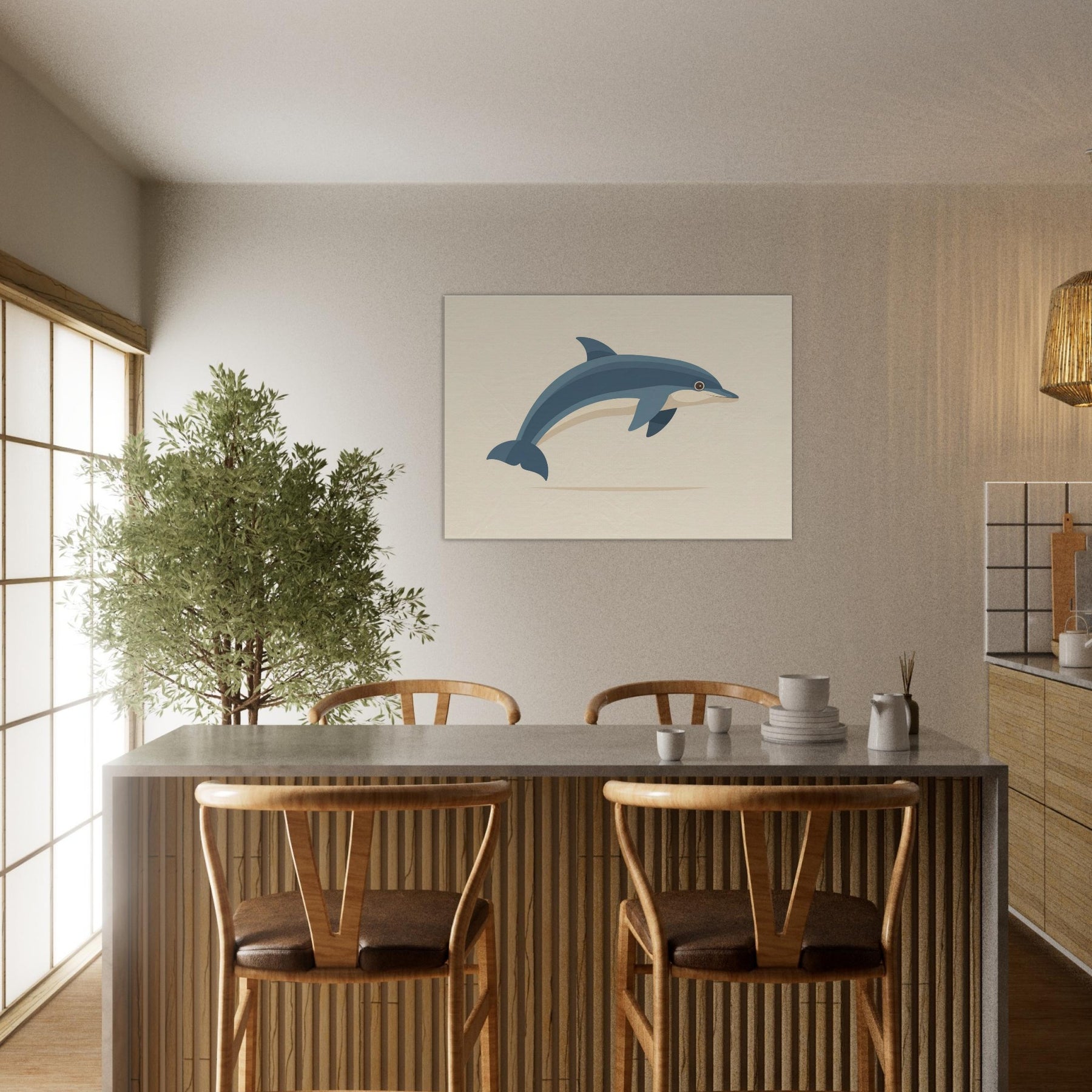 Like a quiet sigh across the sea, this minimalist study of motion captures a Dolphin gliding through a pale, sunlit space. The clean, layered forms echo the rhythm of waves, inviting calm and clarity to your room. Its restrained palette of blue and sand beside warm neutrals makes the air feel lighter, the mind more at ease, and the walls breathe with a gentle, sculptural presence. Perfect for a living room, study, or hallway, it adds oceanic grace without overpowering your decor.
