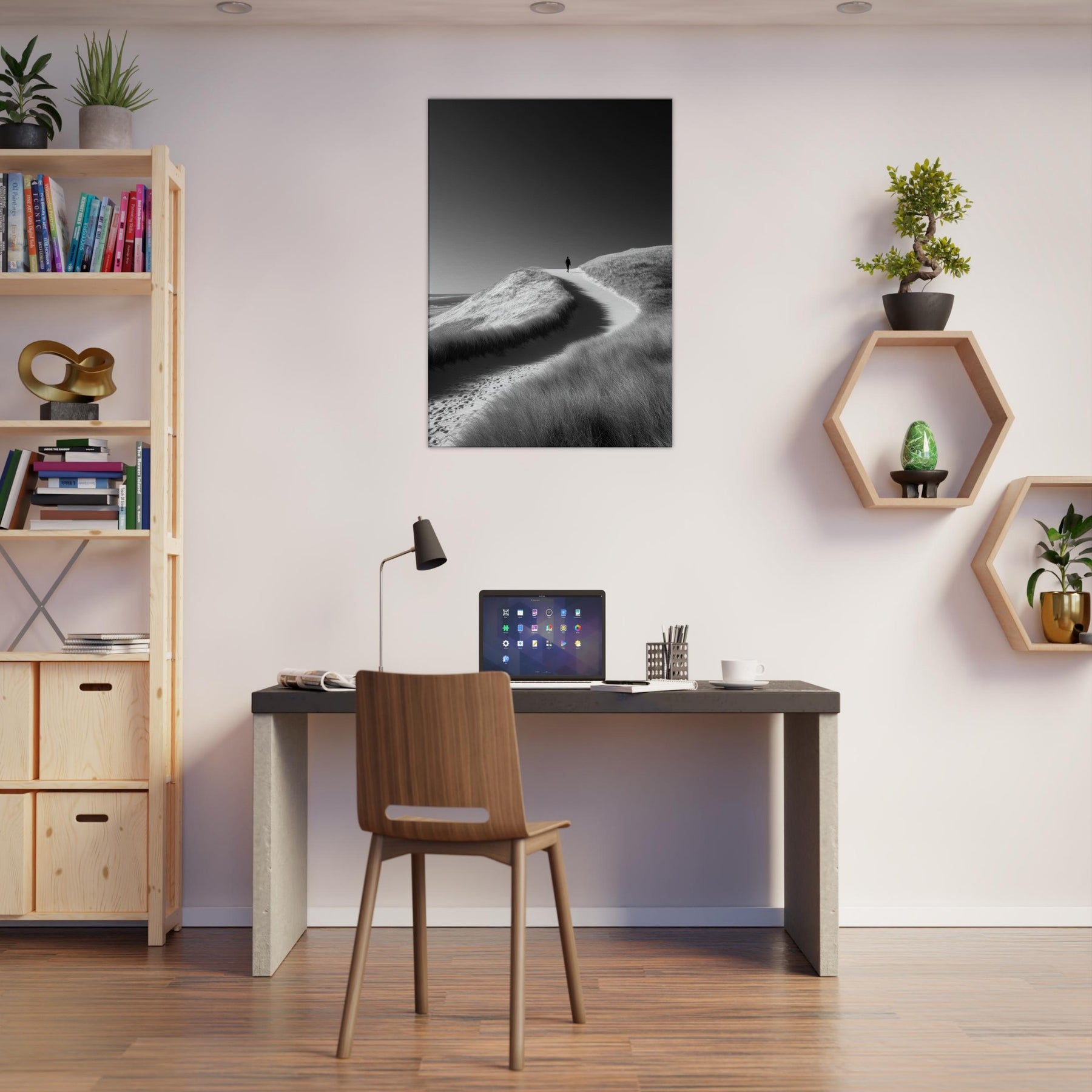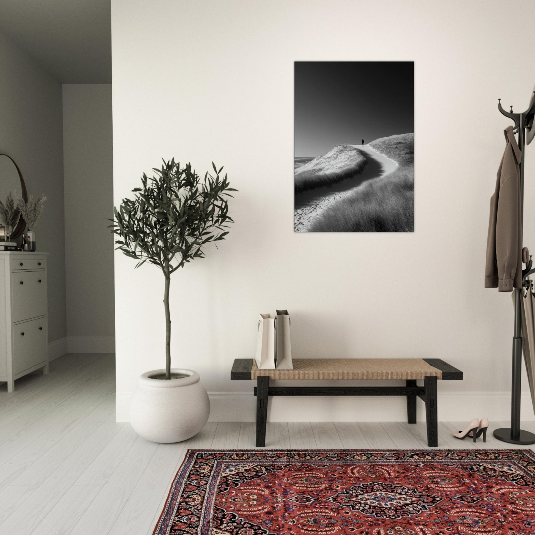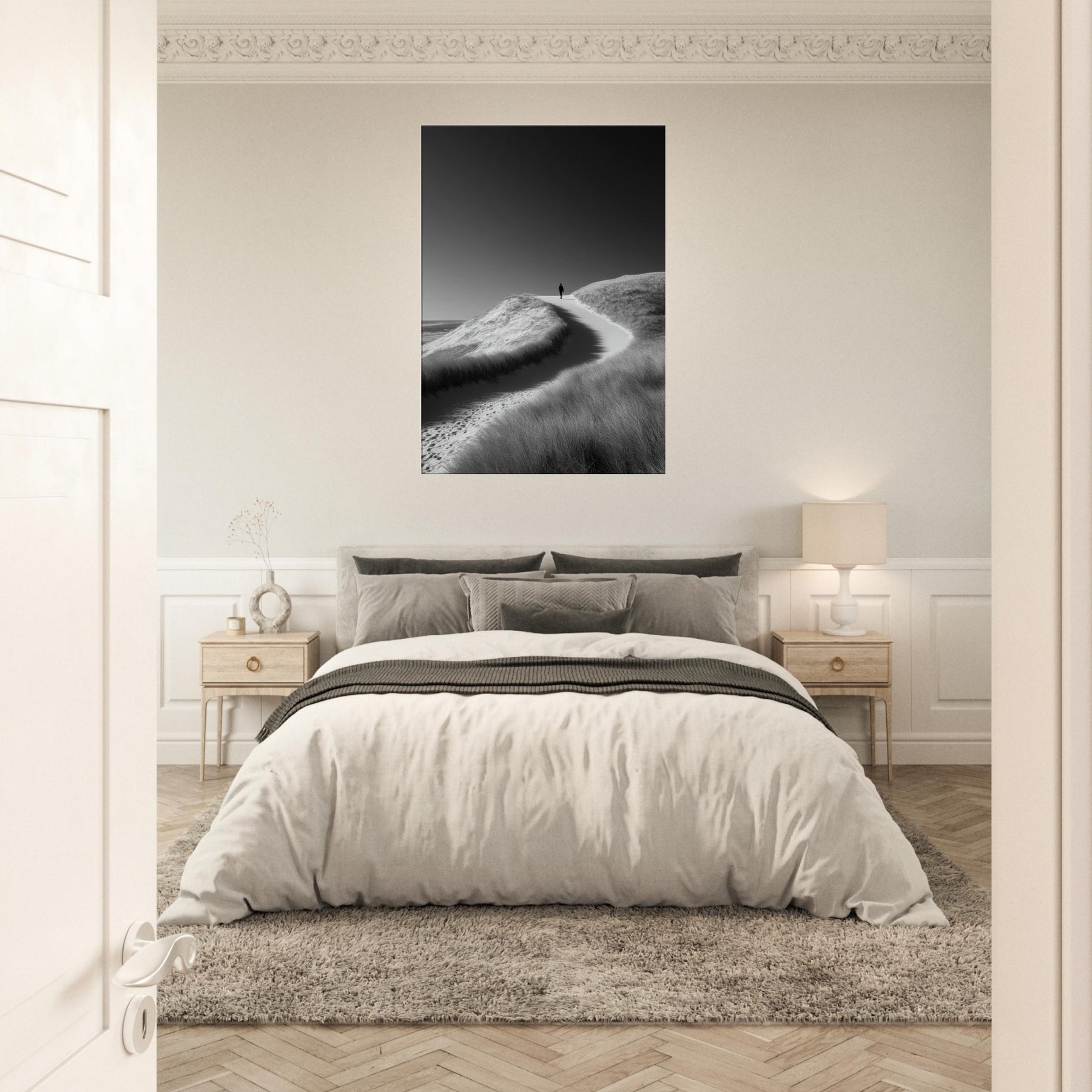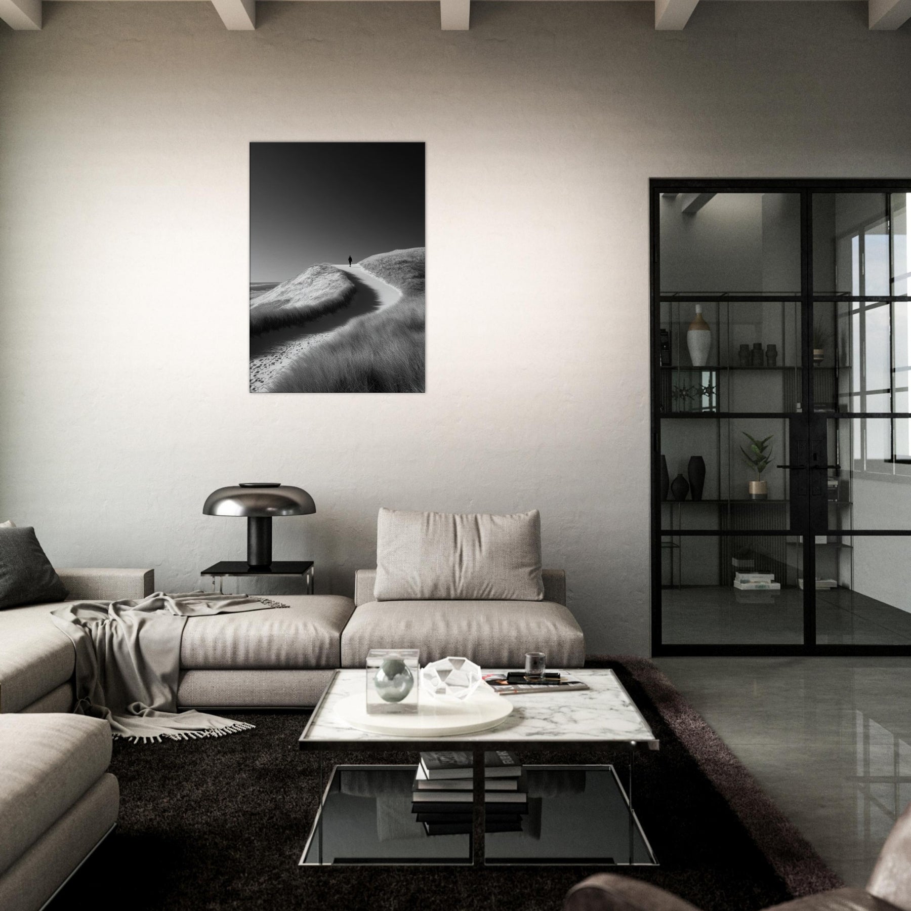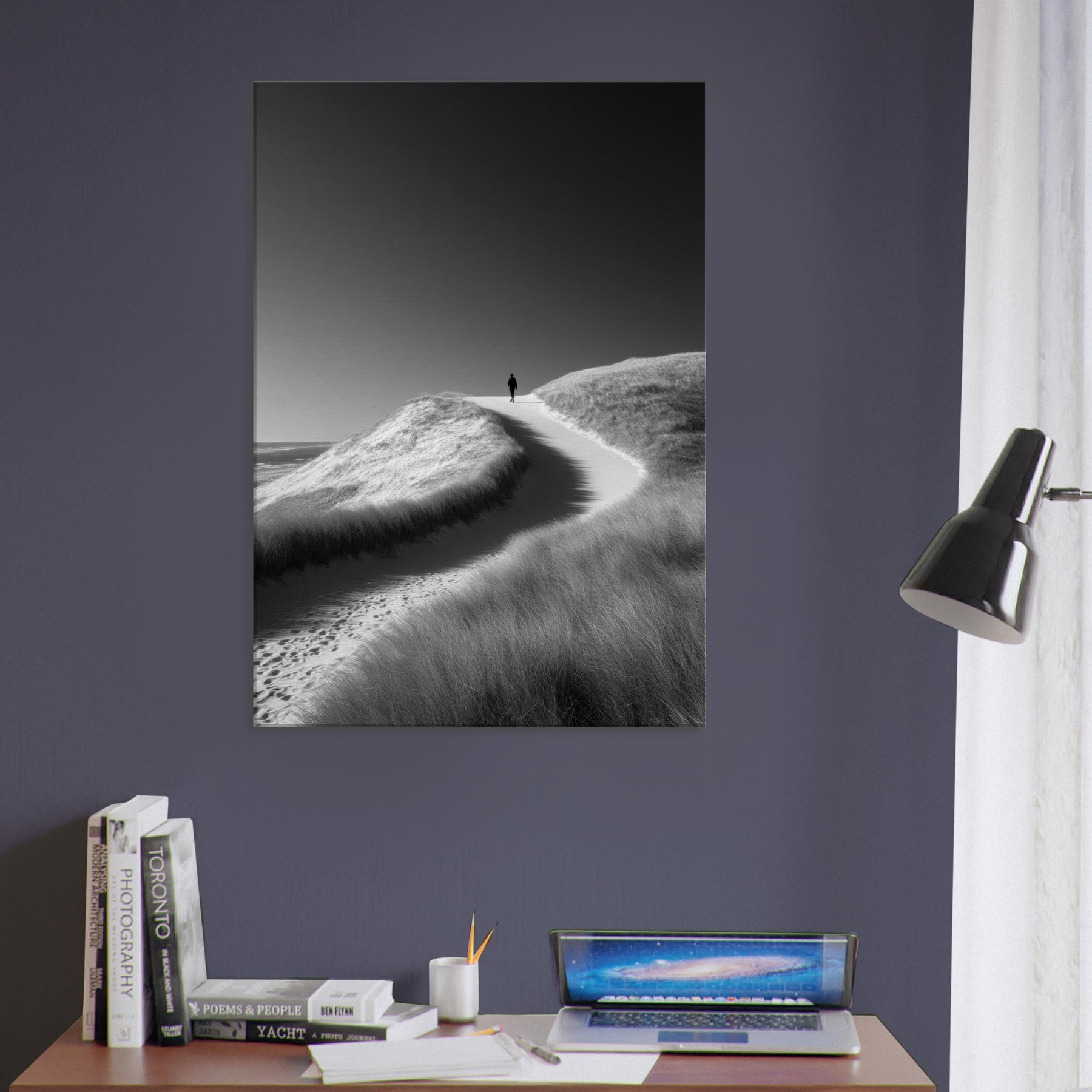 Immerse your room in the hush of Coastal Dunes captured in a precise black and white frame. The stark contrast and soft textures evoke wind sculpted grasses, cool sand, and endless horizon, inviting stillness to linger in the room.