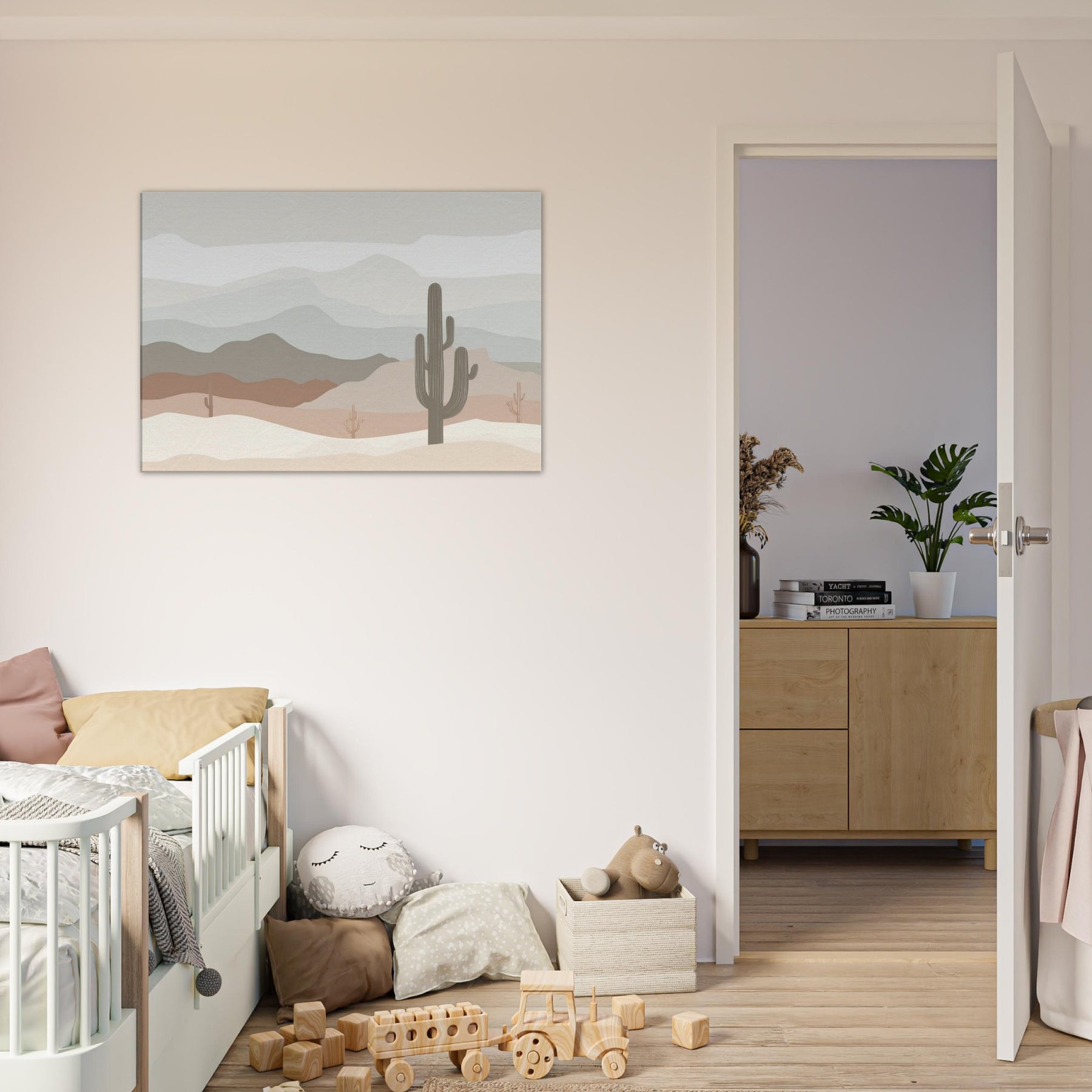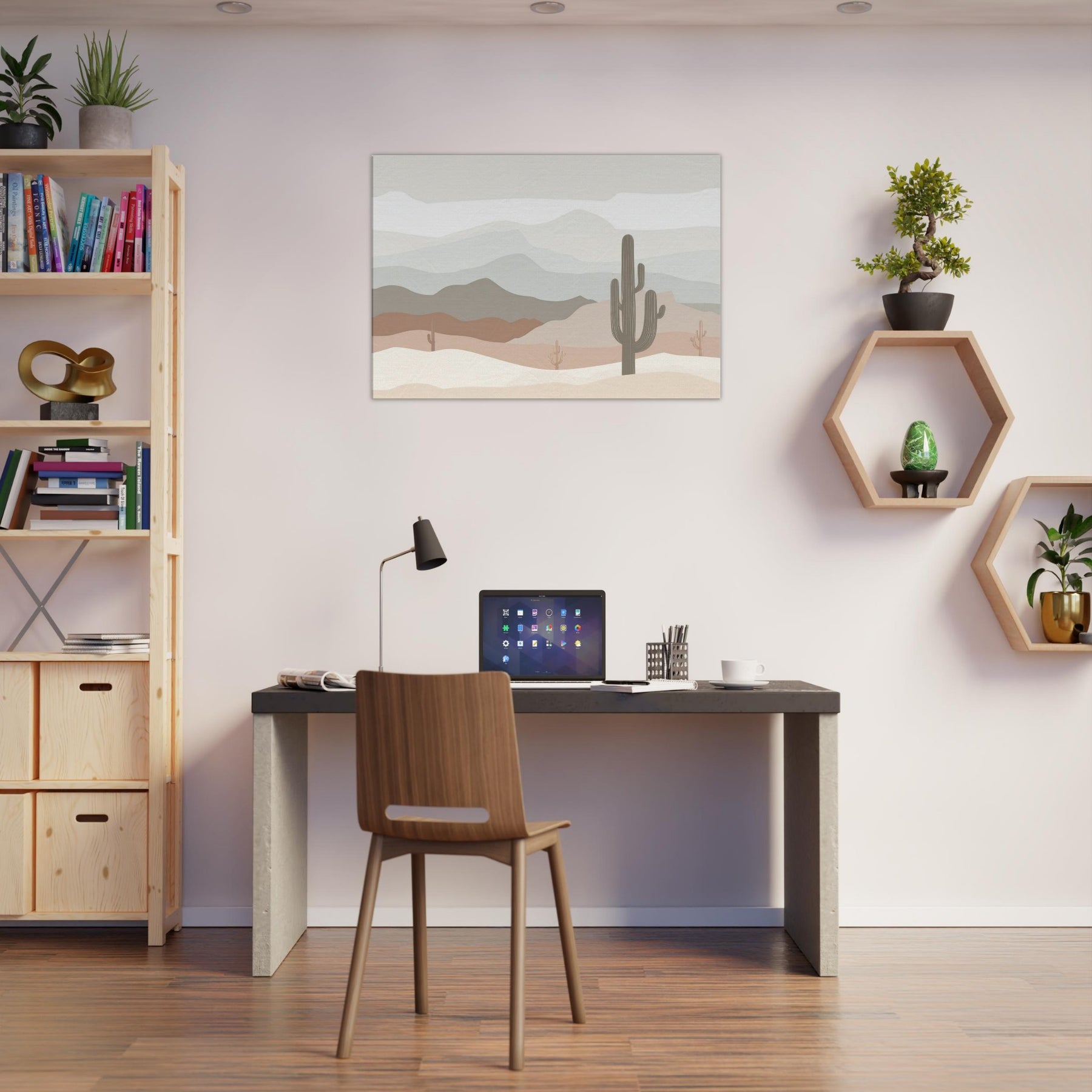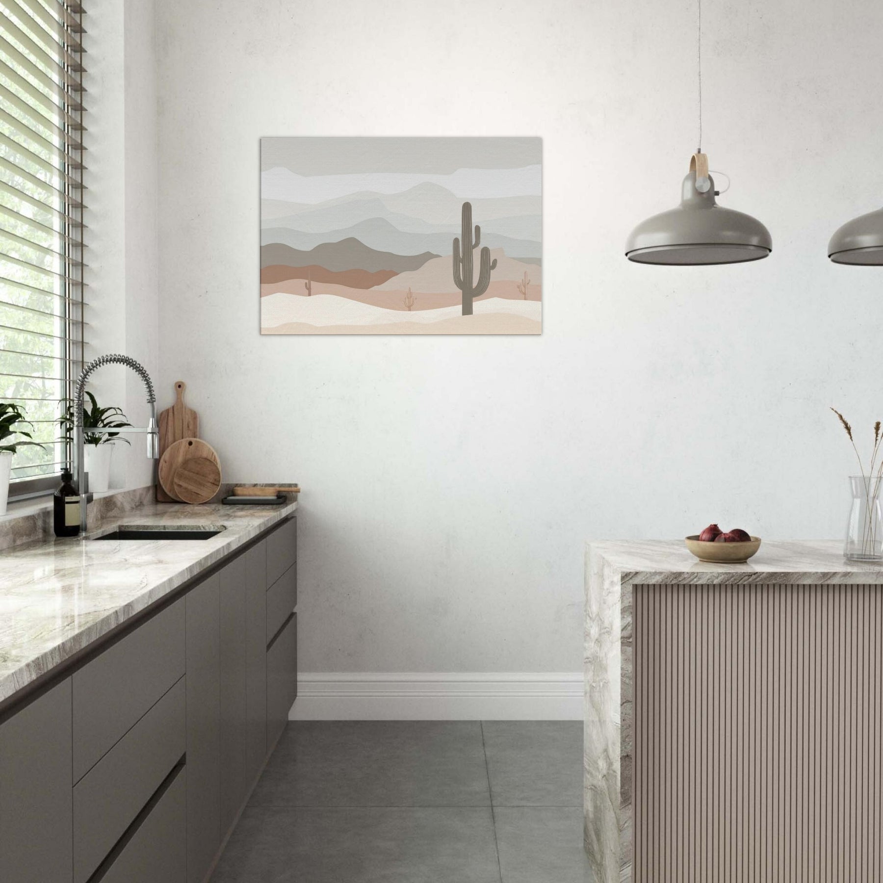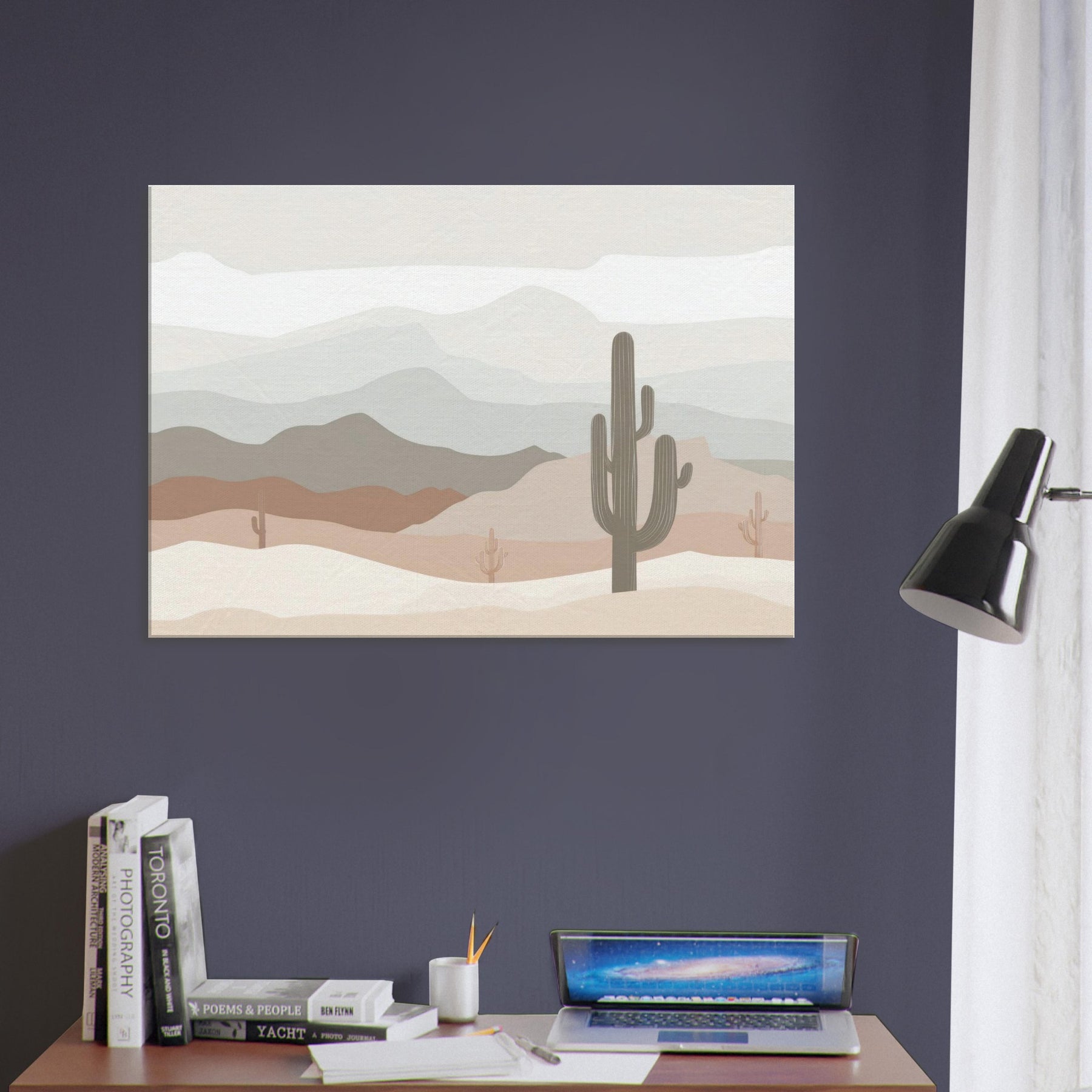 Ease into a quiet horizon with this minimalist Desert scene, where layered dunes cradle pale skies and sculptural cacti rise like quiet sentinels. The soft, earthy palette invites warmth and calm, turning any living room into a still life of breath and light. Perfect for a reading nook or lounge, it absorbs and reflects color through the day, subtly shifting mood as the sun moves. A gentle, timeless backdrop for everyday moments.