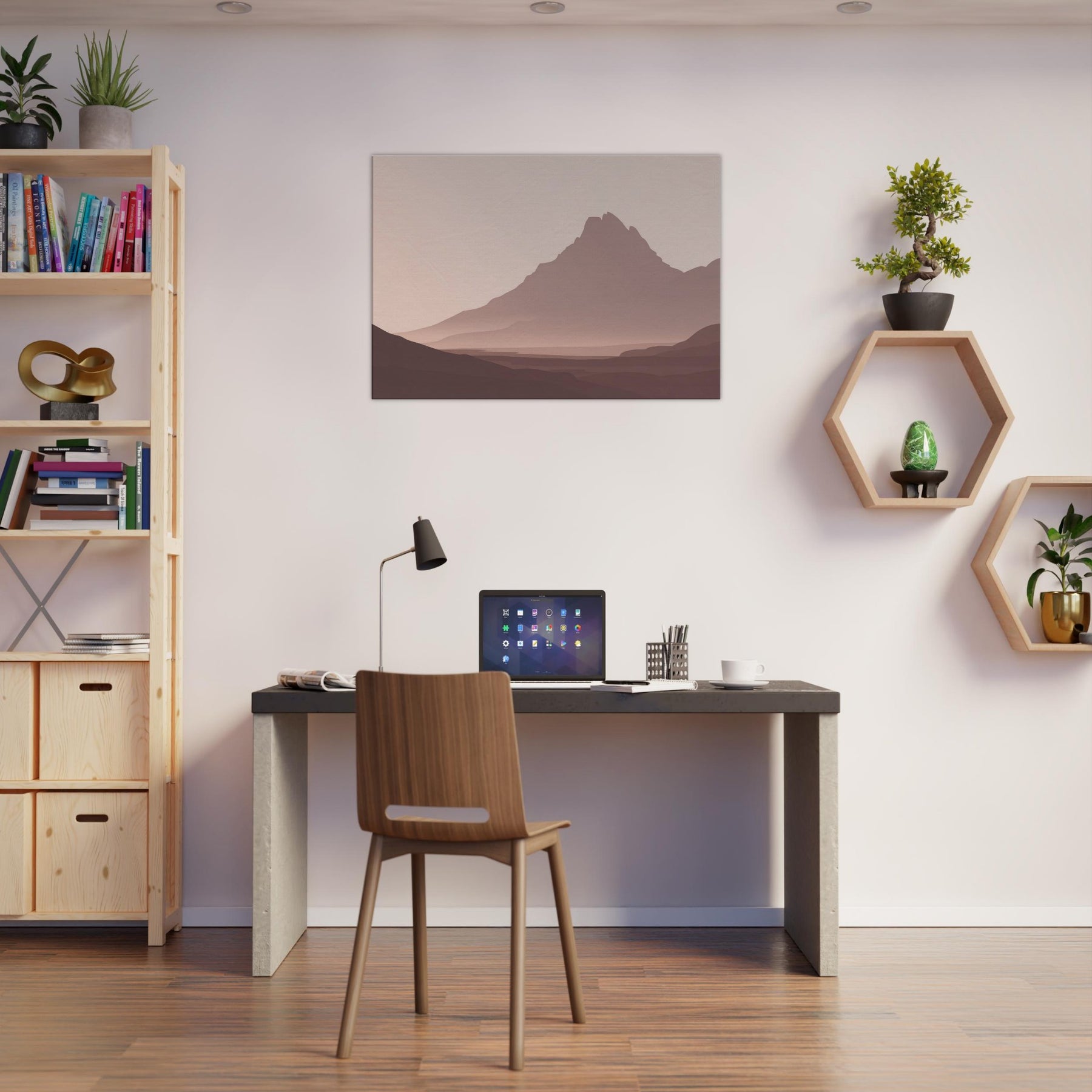Let the Canyon unfold in quiet gradients of rose and sandstone. This minimalist nature study invites stillness into your living space, where soft silhouettes layer like distant horizons and a gentle hush settles around the room. The composition breathes calm through negative space, turning a wall into a window of dusk. Hang it in a living room or bedroom to cultivate a serene retreat, a subtle reminder that vast landscapes can begin at home.
