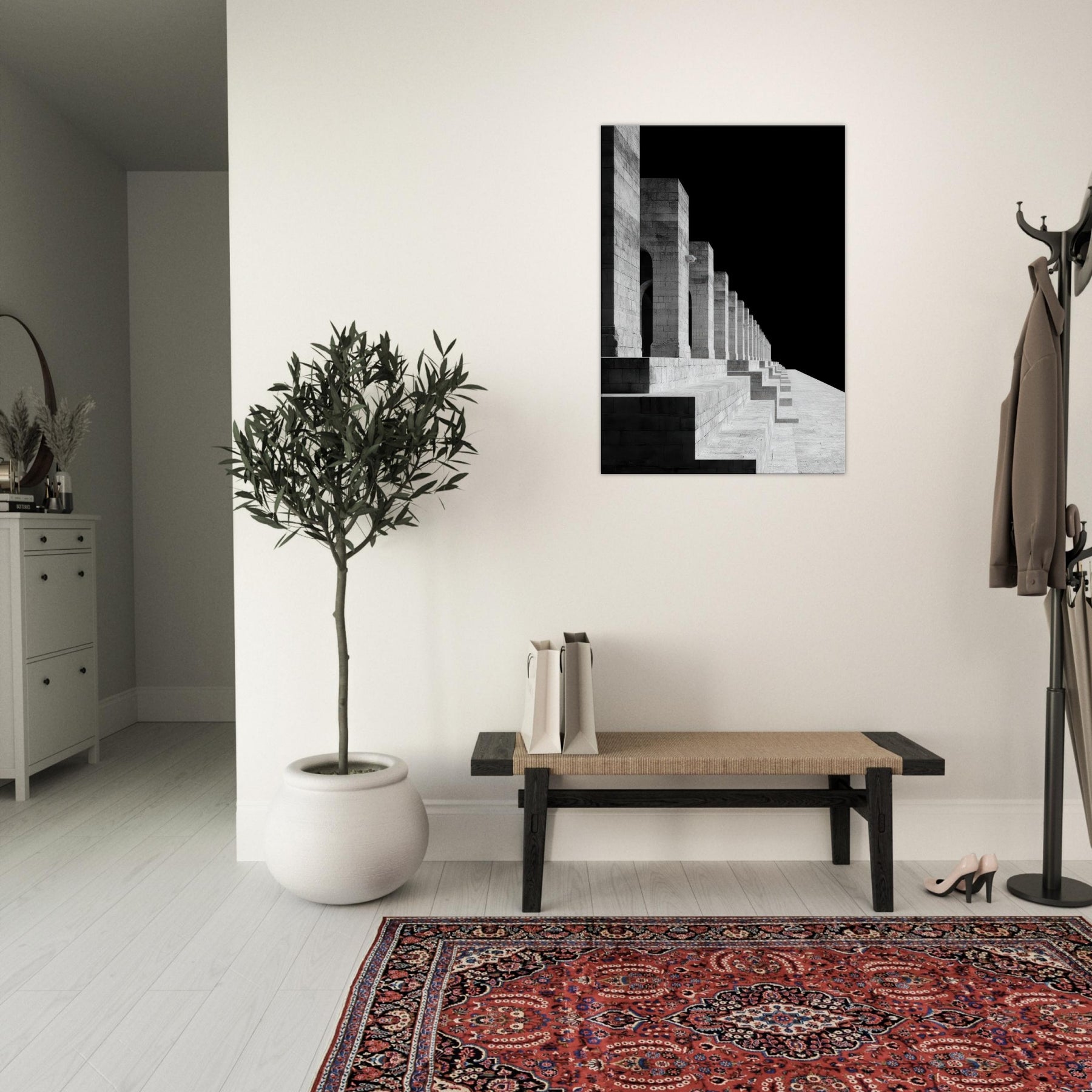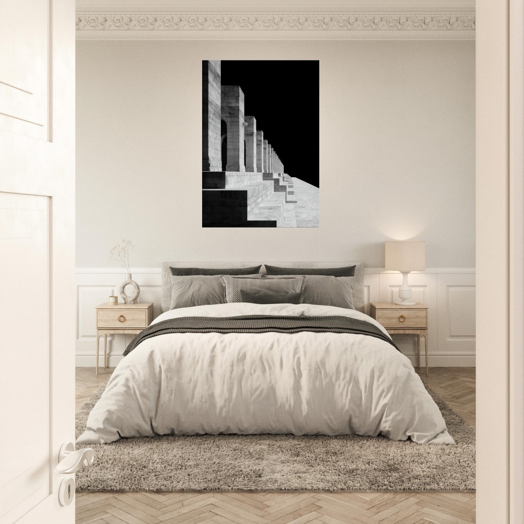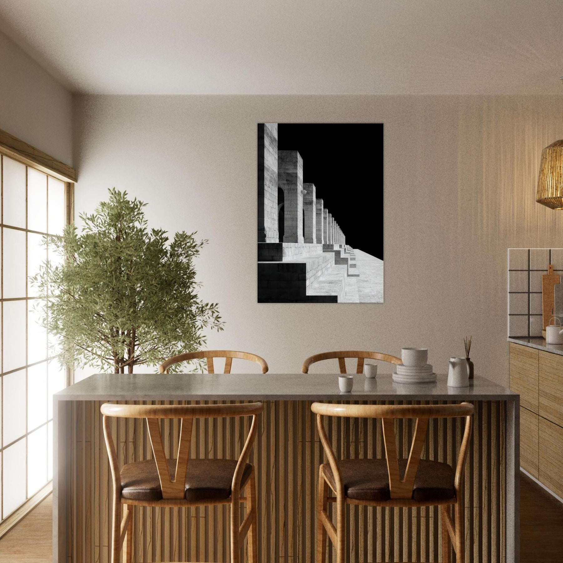 The image invites a contemplative mood, turning a living space into a sanctuary where light, shadow, and memory meet. Hang this Angkor Wat print beside a sofa or in a hallway to create a refined focal point that feels ancient, serene, and endlessly architectural.