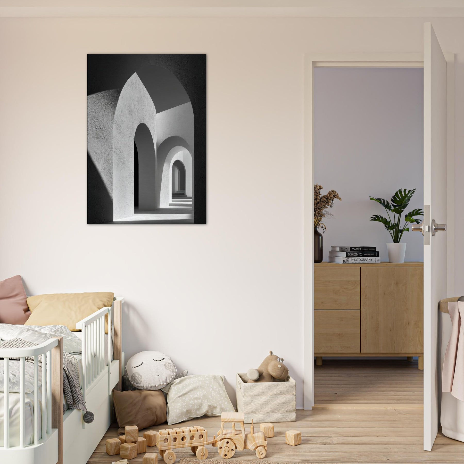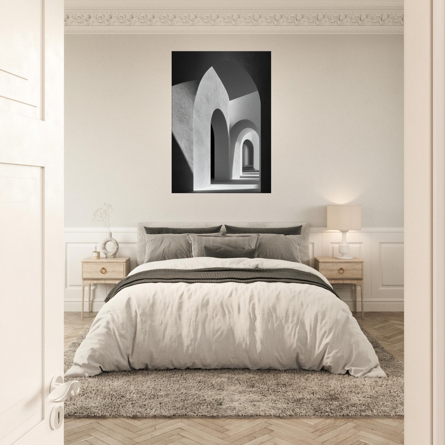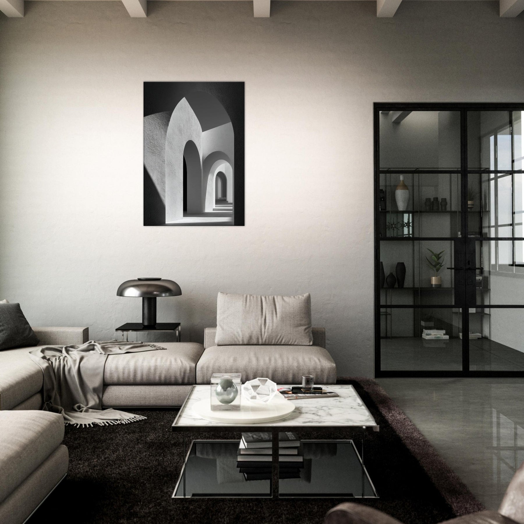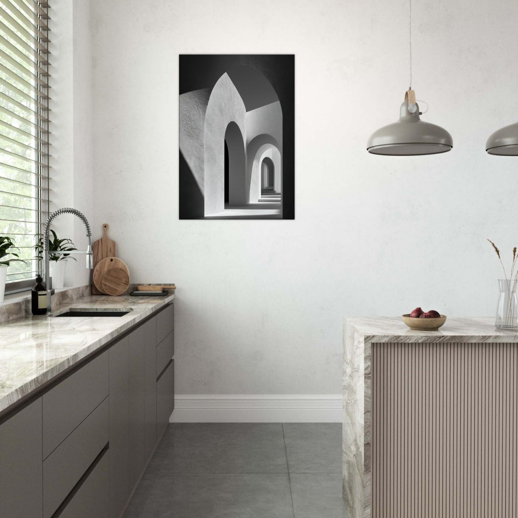 In this restrained study, the Primary Subject Arches Composition unfolds as a study of light, shadow, and architectural breath. The black and white palette sharpens the contrasts, turning each arch into a quiet chorus of curves and echoes. The smooth textures and luminous gaps invite a sensory drift, as if walking through a halflight corridor that lengthens the room and your thoughts. Placed in a living space, it yields a serene, contemplative atmosphere an artful anchor for evenings and conversations.