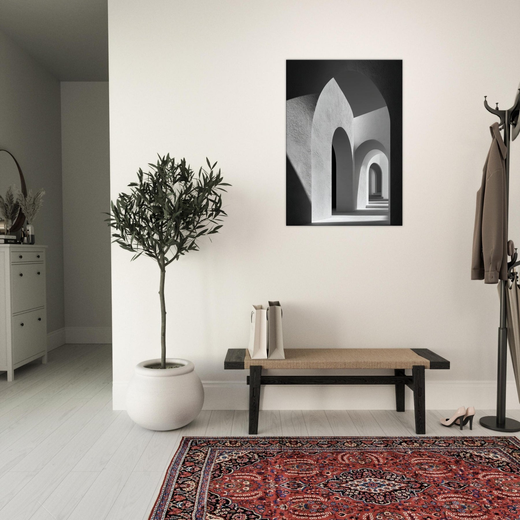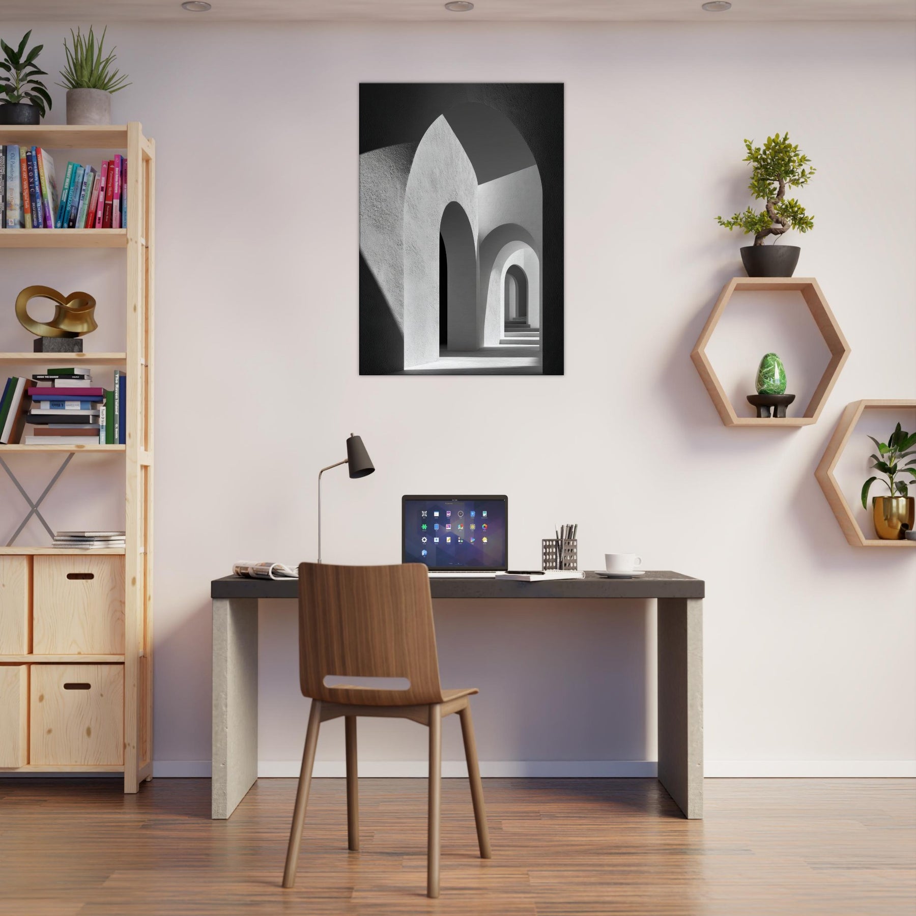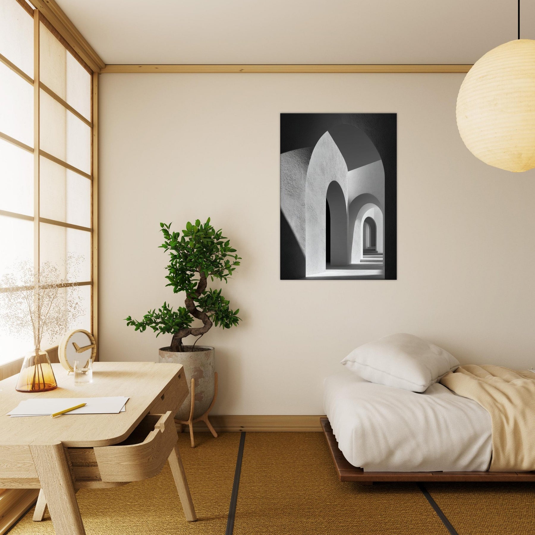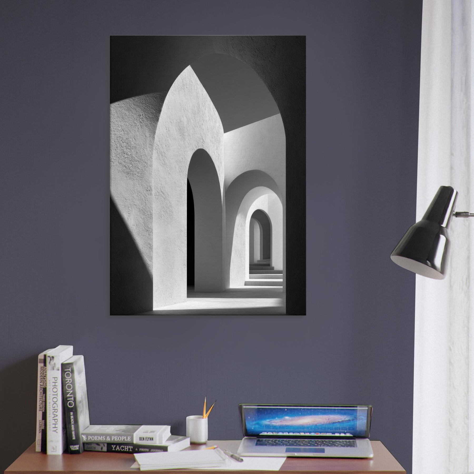 In this restrained study, the Primary Subject Arches Composition unfolds as a study of light, shadow, and architectural breath. The black and white palette sharpens the contrasts, turning each arch into a quiet chorus of curves and echoes. The smooth textures and luminous gaps invite a sensory drift, as if walking through a halflight corridor that lengthens the room and your thoughts. Placed in a living space, it yields a serene, contemplative atmosphere an artful anchor for evenings and conversations.
