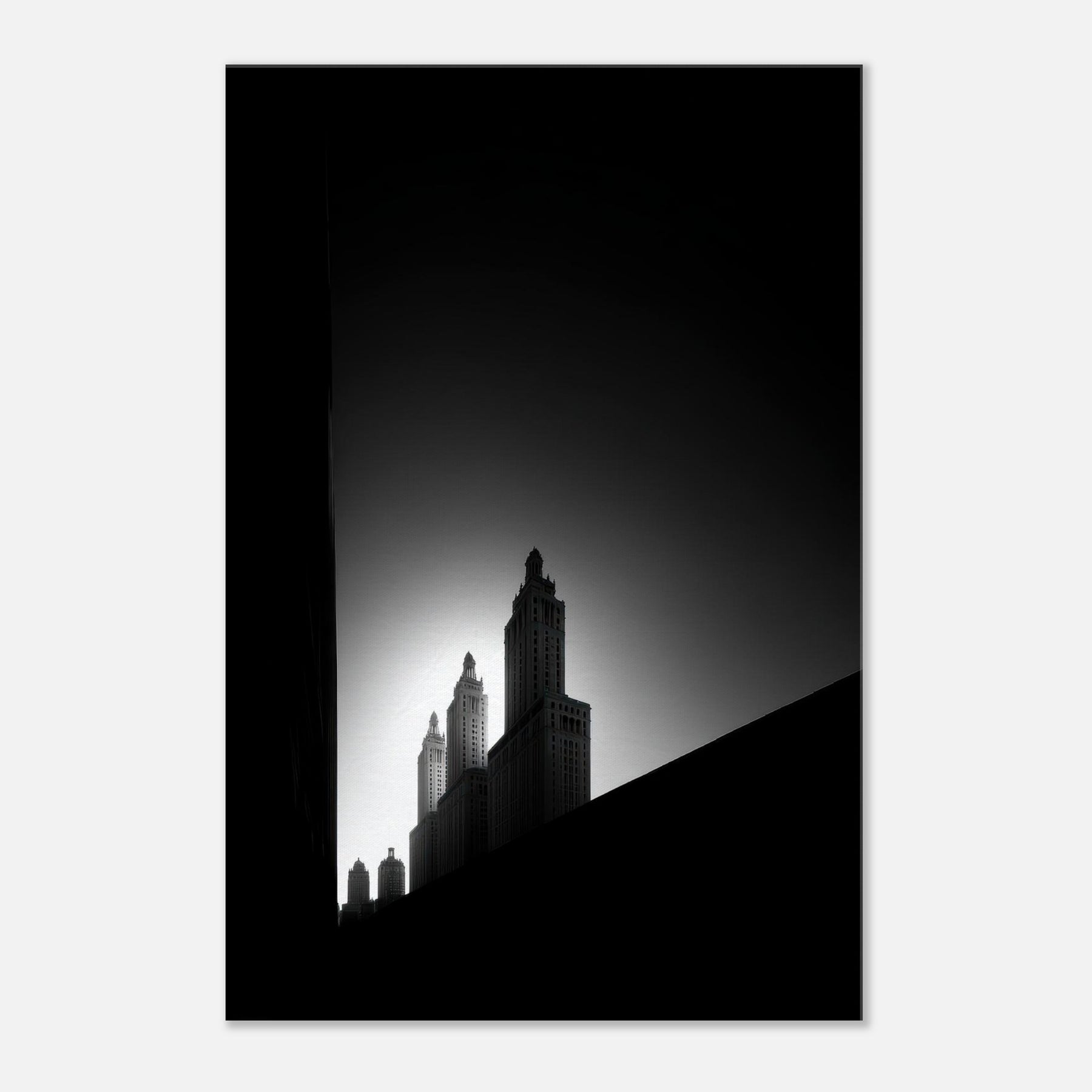 Venice rises in stark, sculpted lines against a quiet gradient, a study in restraint and memory. This black and white cityscape breathes with timeless mood where arches become whisper thin shadows and the water's edge dissolves into light.