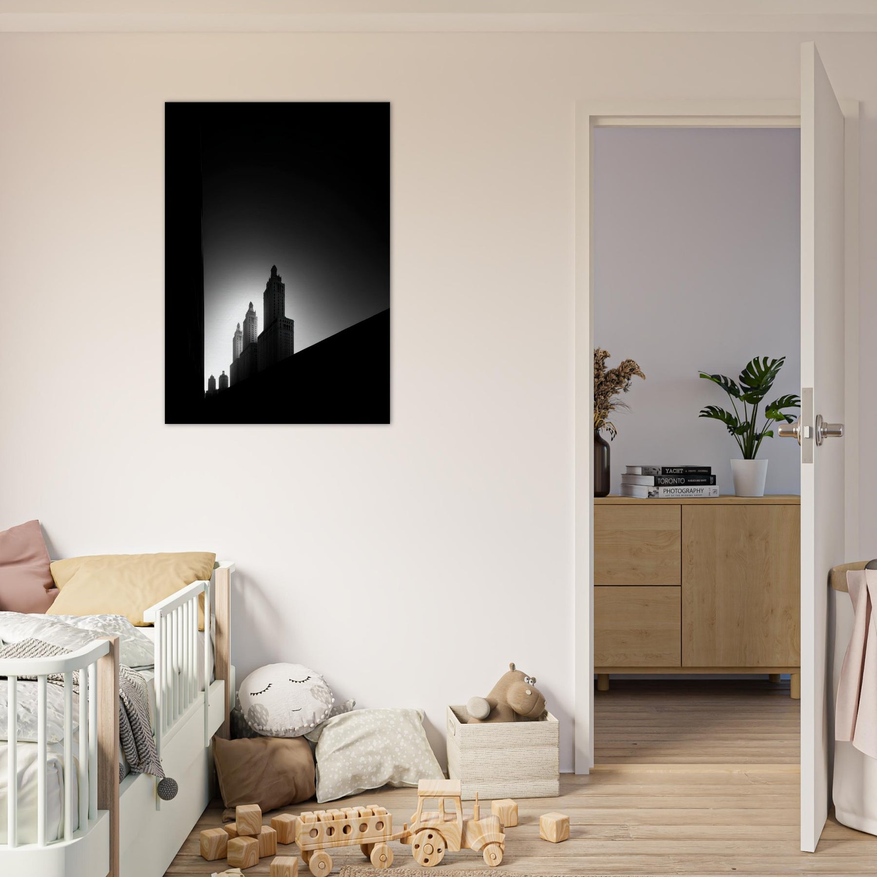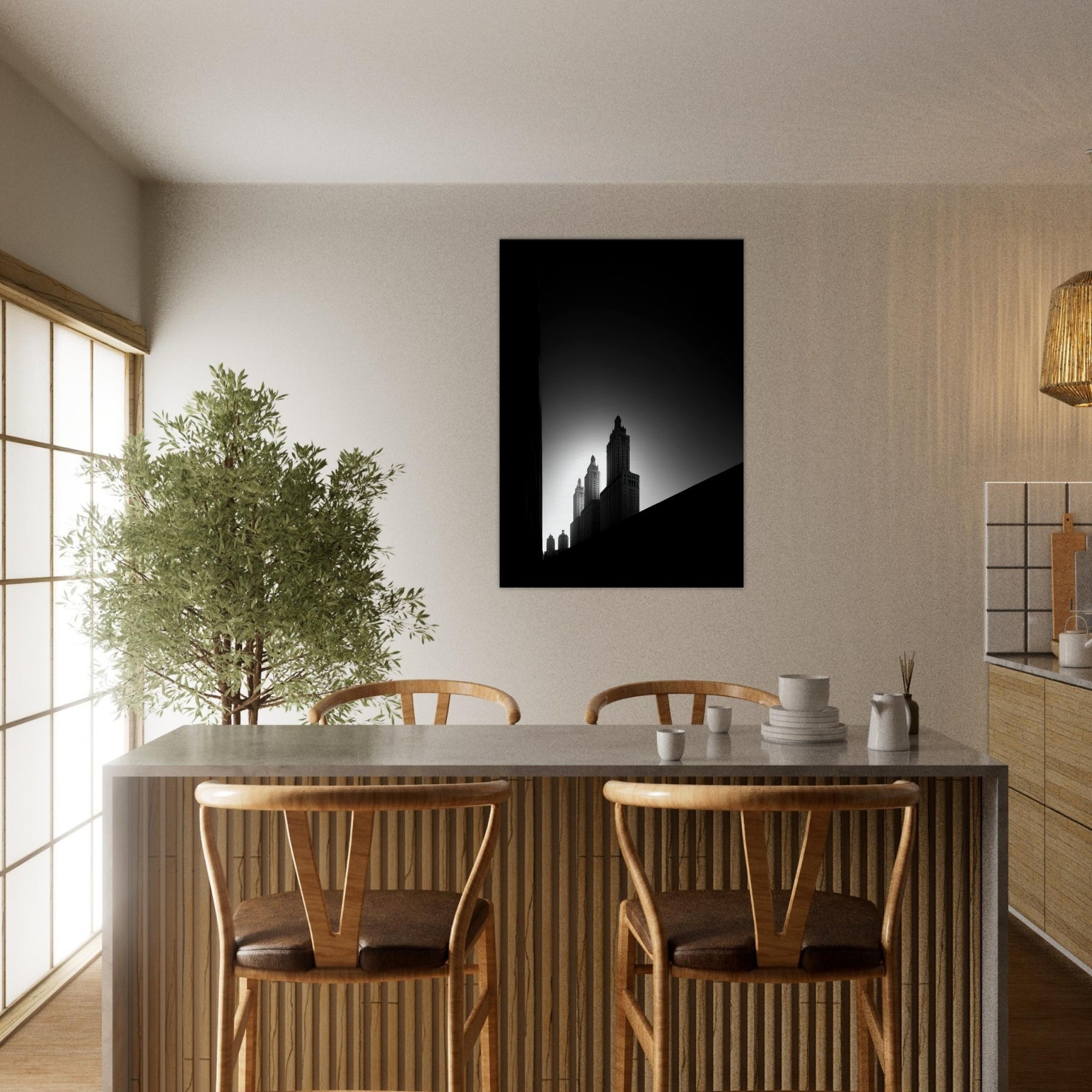 Hang it to invite calm precision into the living room, letting the graphic geometry echo in your furnishings and your thoughts. The piece doesn't shout; it companions you in evenings, mornings, and reflections, turning everyday spaces into a gallery of imagined walks through Venice.