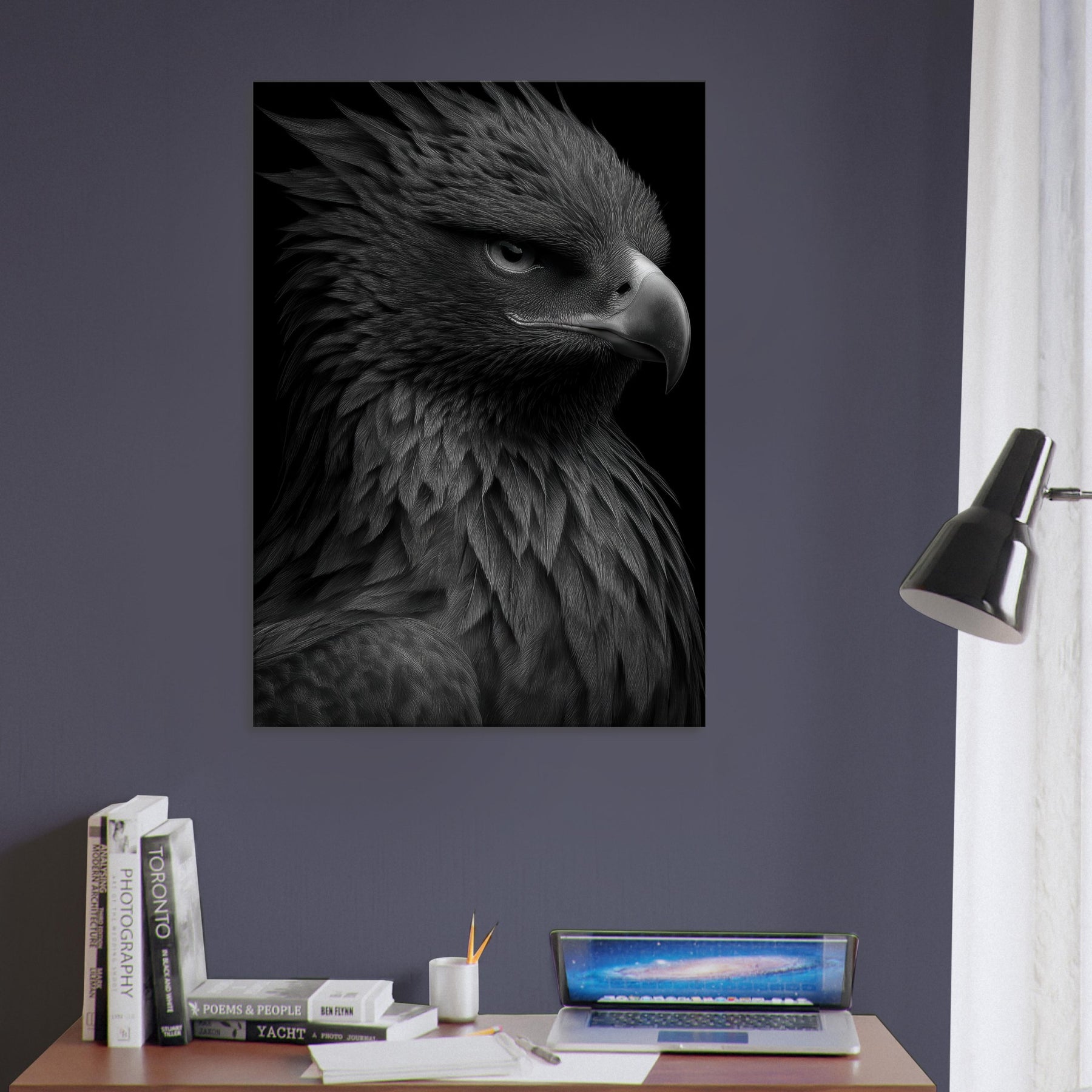 This artwork wraps a living space in momentum and mystery bold, cinematic, and serene all at once turning chairs and sofas into stages for imagination. With luminous detail and timeless mood, it elevates rooms that crave drama, focus, and a touch of legend.