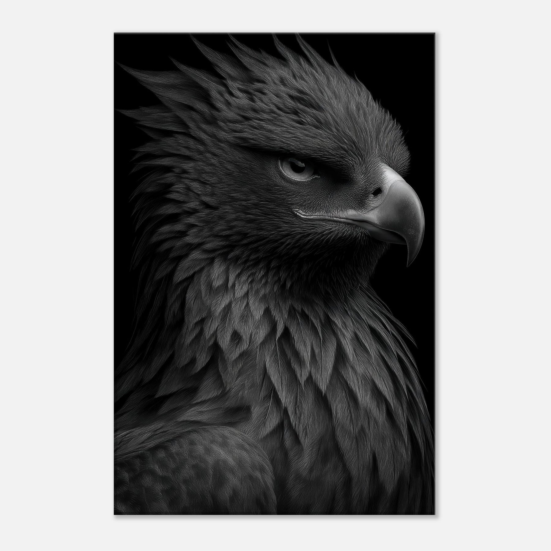 Fiery Phoenix emerges in a study of contrast, a black and white ode to mythic ascent. The stark chiaroscuro reveals every feather as if lit from within, a quiet blaze you can hang on your wall.
