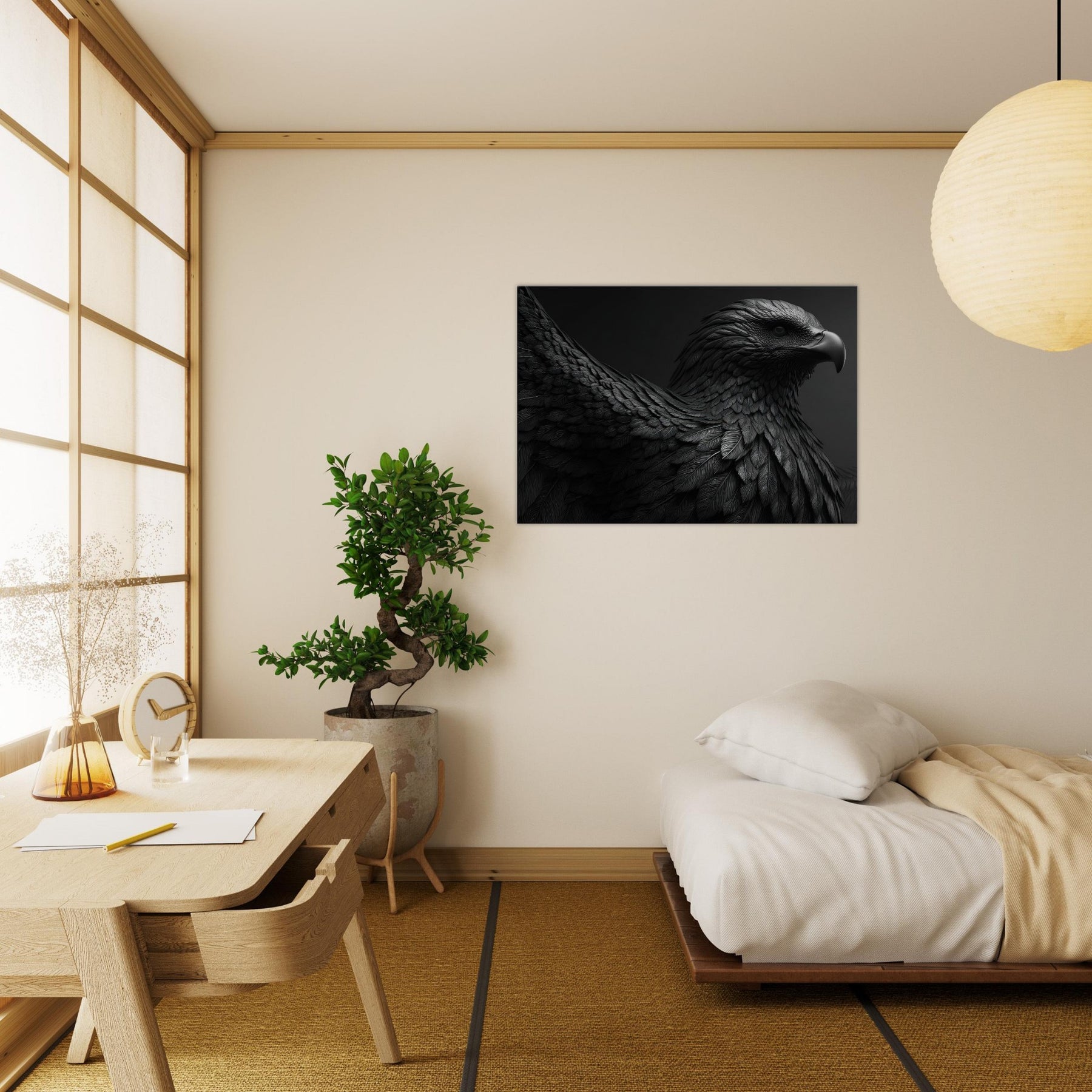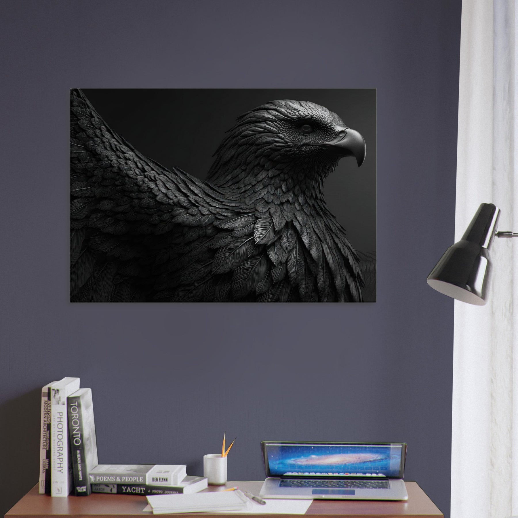 This mythical figure rises from shadow, a nocturnal flame that brings courage, focus, and a touch of drama to everyday spaces. Perfect above a sofa or in an entry hall, it invites contemplation while energizing the room with timeless fantasy and refined, modern clarity.