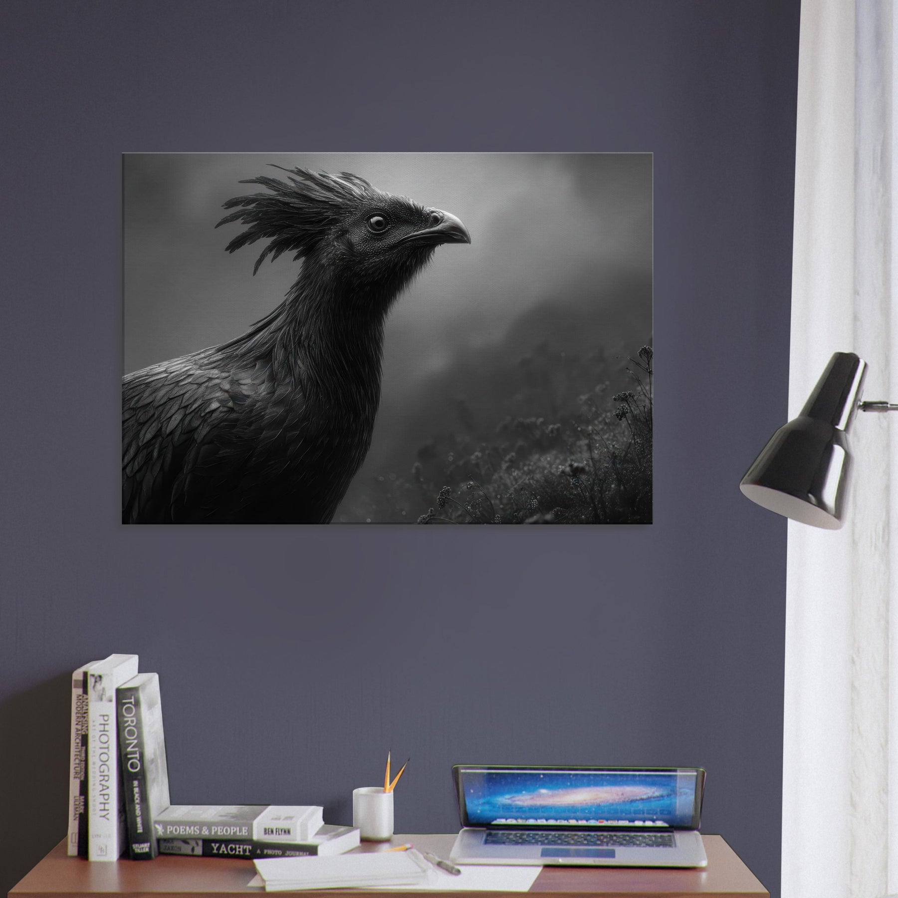 The atmosphere feels ancient and intimate, a guardian of hearth and dream. Hang it where you want the room to breathe drama, mystery, and a refined mythic energy.