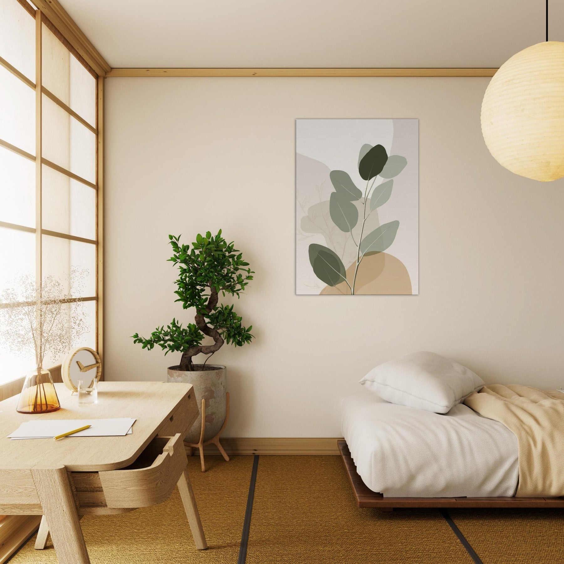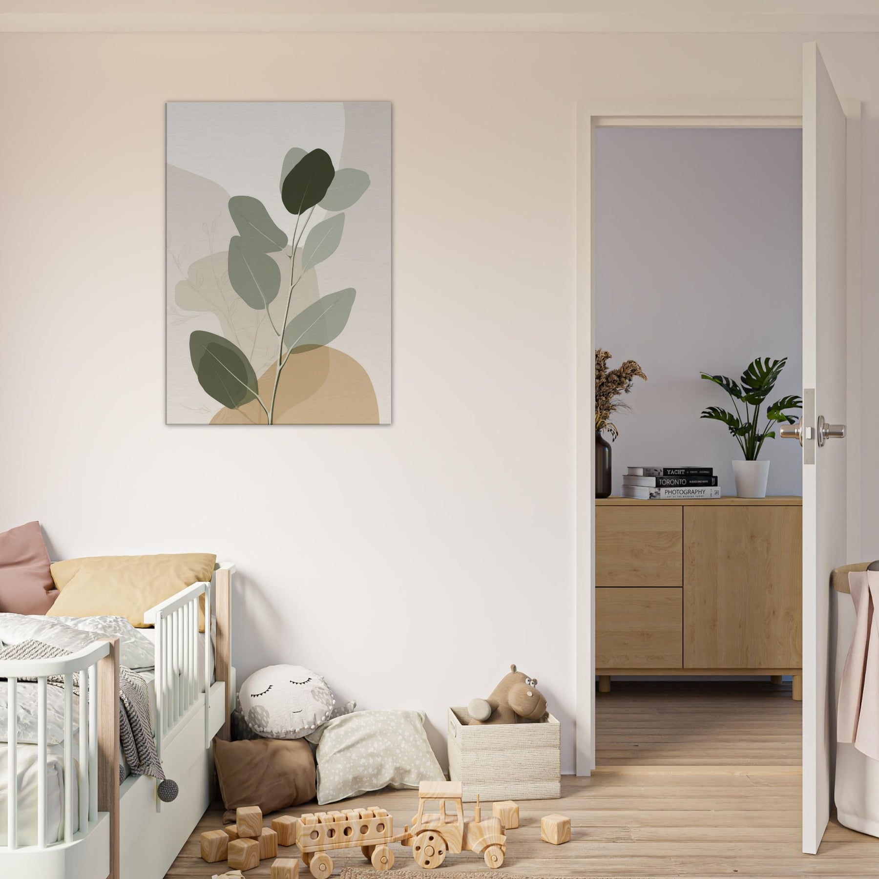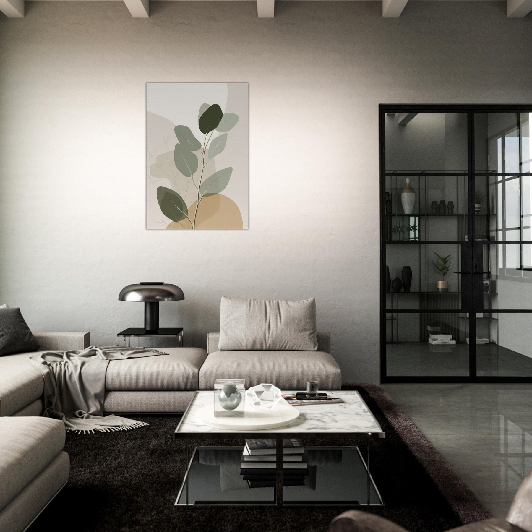 Let the quiet elegance of Eucalyptus drift into your living room. This minimalist wall art dissolves foliage into soft shapes and restrained color, inviting a calm, breathing atmosphere. The cool greens and warm neutrals echo daylight on a quiet afternoon, like a moment of fresh air framed on your wall. Perfect above a sofa or bedside, it lends nature's serenity to modern interiors, enriching the space with subtle texture, gentle contrast, and a sense of airy openness.