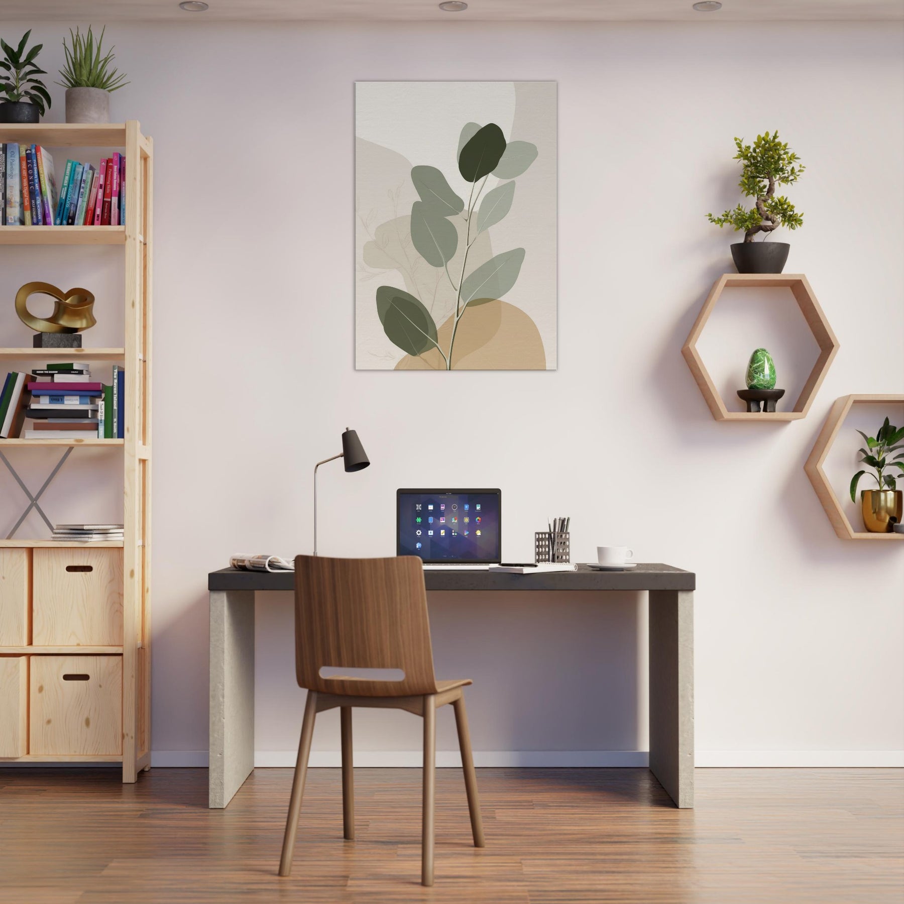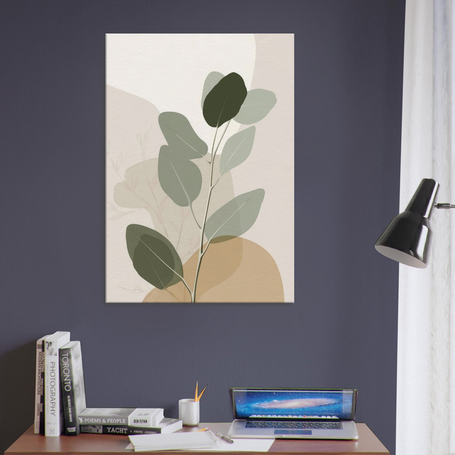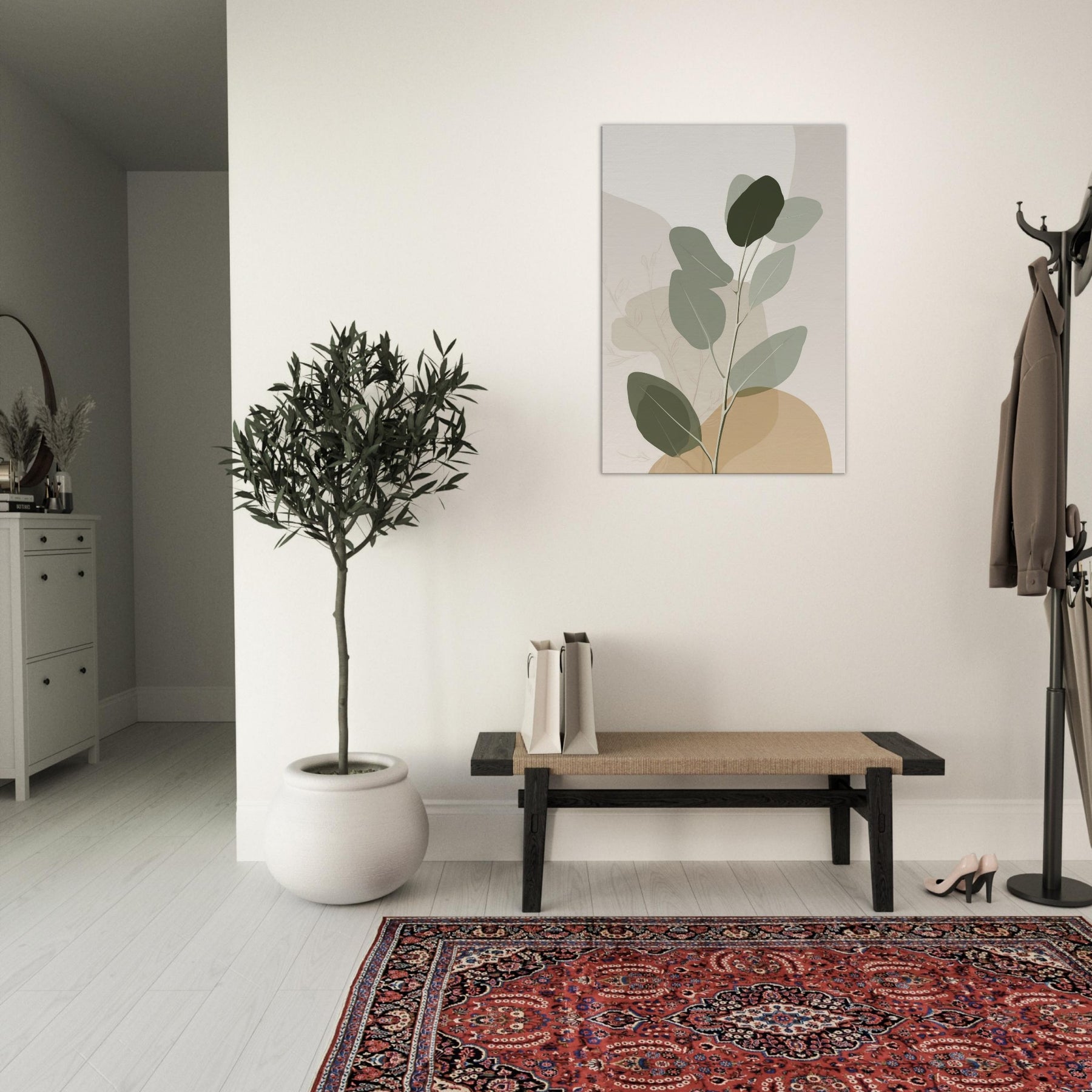 Let the quiet elegance of Eucalyptus drift into your living room. This minimalist wall art dissolves foliage into soft shapes and restrained color, inviting a calm, breathing atmosphere. The cool greens and warm neutrals echo daylight on a quiet afternoon, like a moment of fresh air framed on your wall. Perfect above a sofa or bedside, it lends nature's serenity to modern interiors, enriching the space with subtle texture, gentle contrast, and a sense of airy openness.