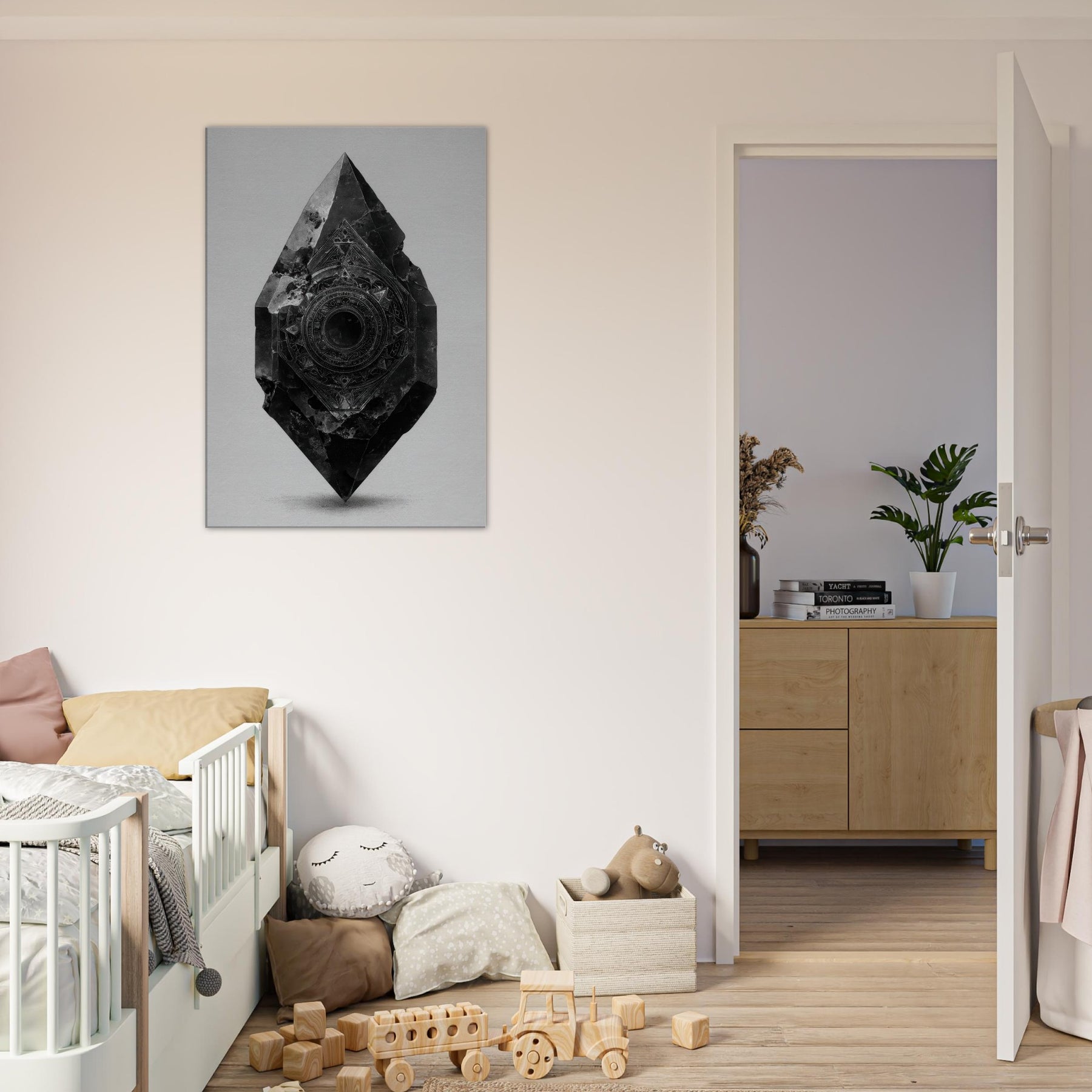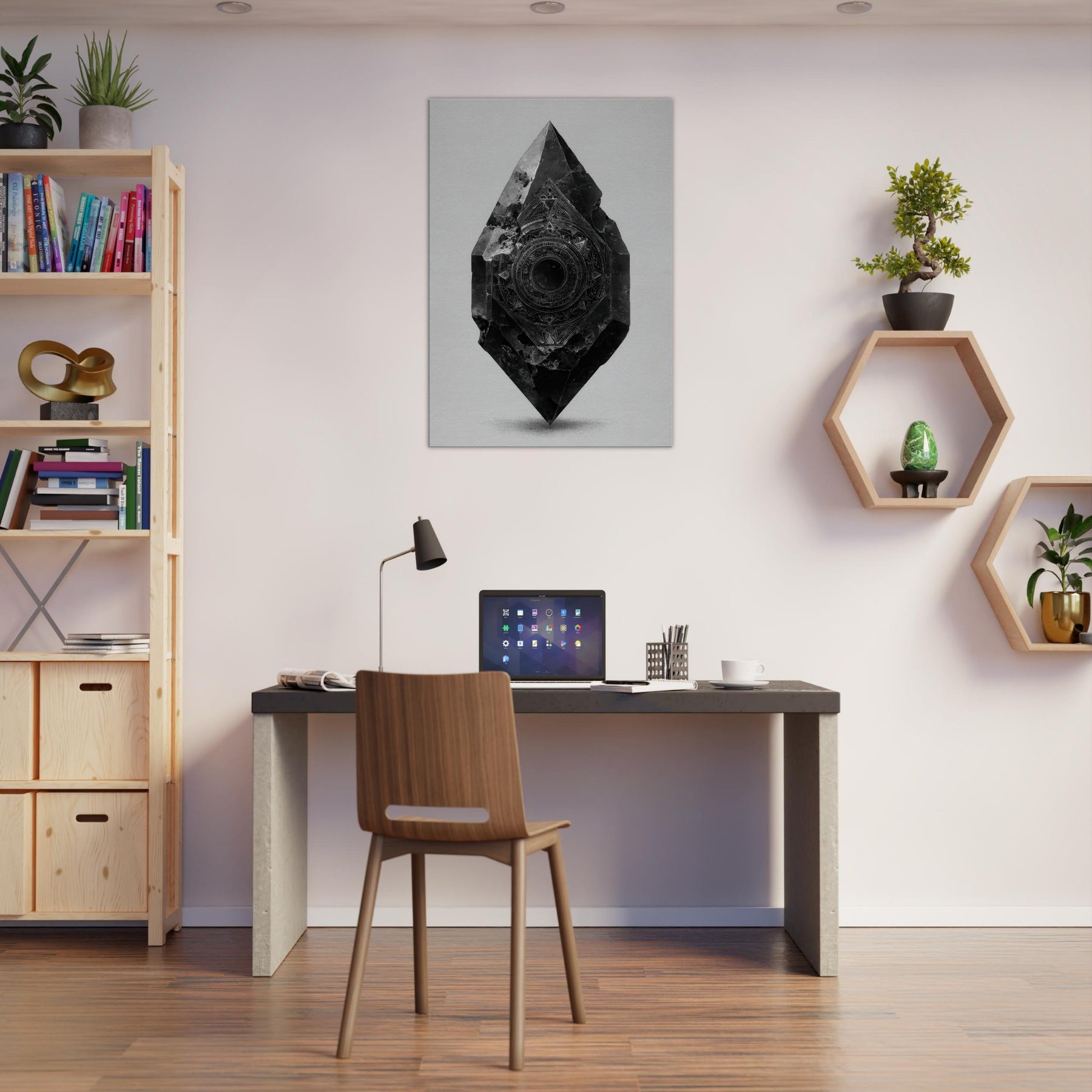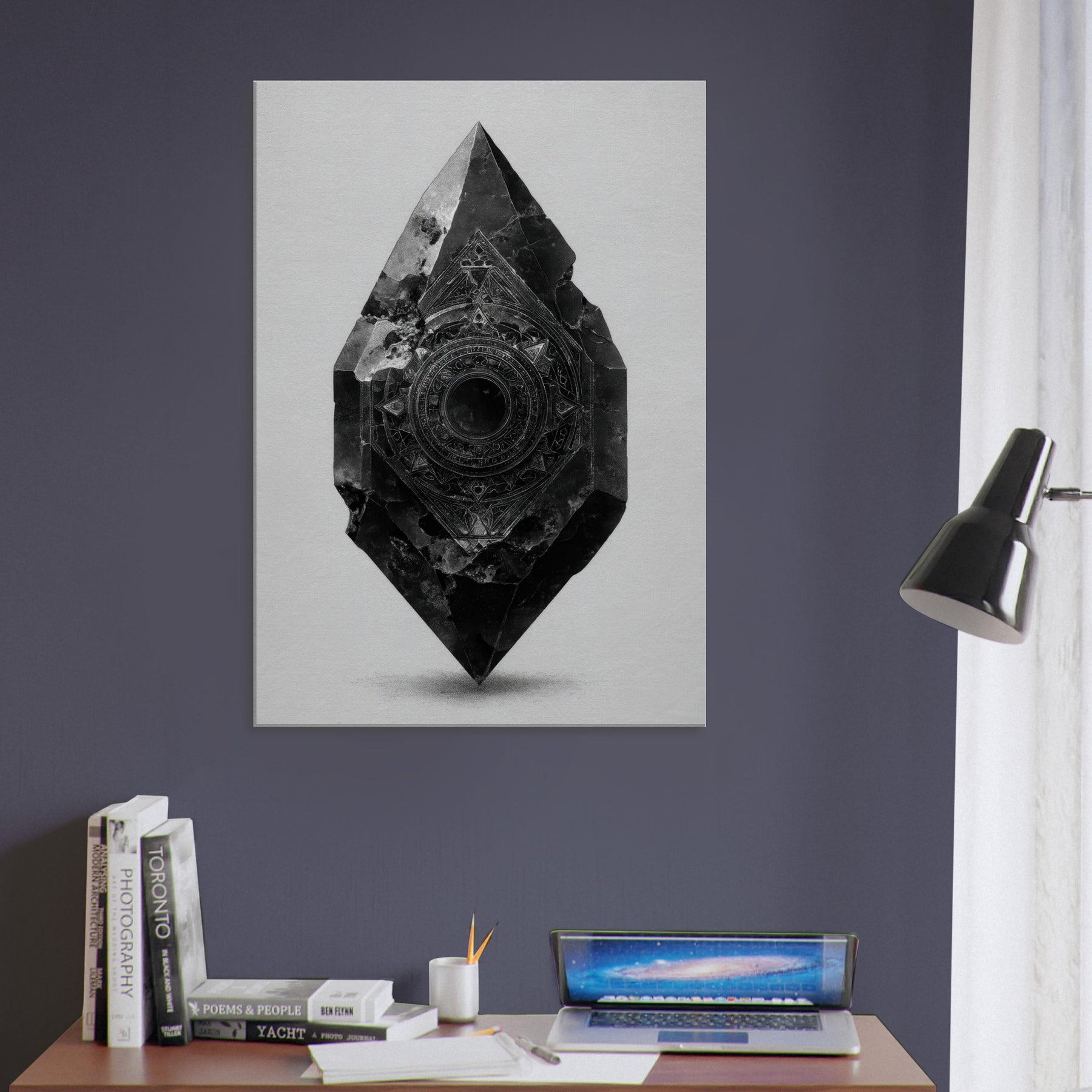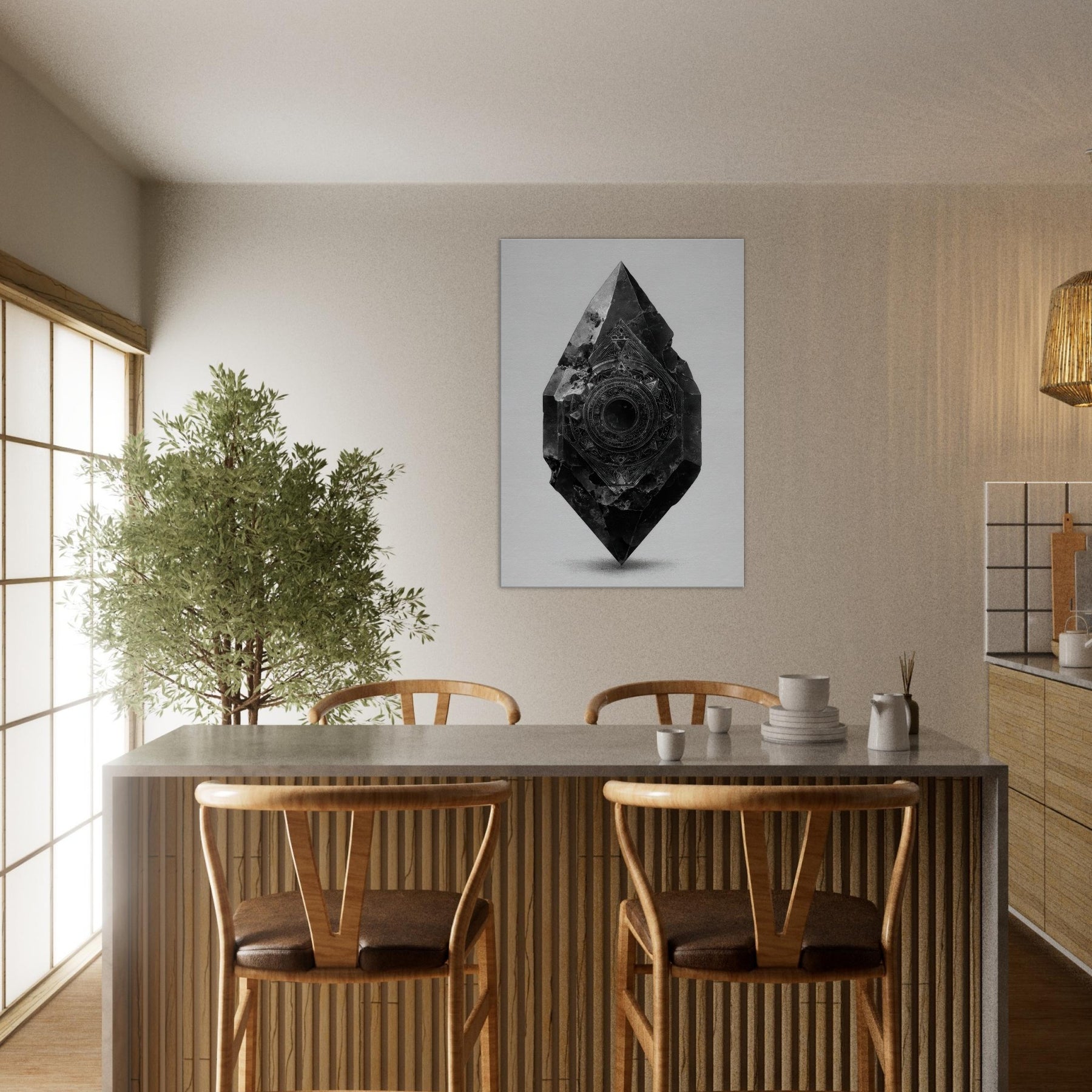 Let the Pendulum (Divination) emerge from black and white as a guiding stillness in the room. This enigmatic sculpture radiates a nocturnal glow the hush of a bell at midnight, the whisper of symbols turning in a quiet orbit. Its beveled facets catch light, casting delicate, shifting shadows across a pale wall. In living spaces, it becomes a focal breath, inviting reflection, ritual, and intention. A mystical presence for living rooms or studios, it steadies mood and elevates contemplation.