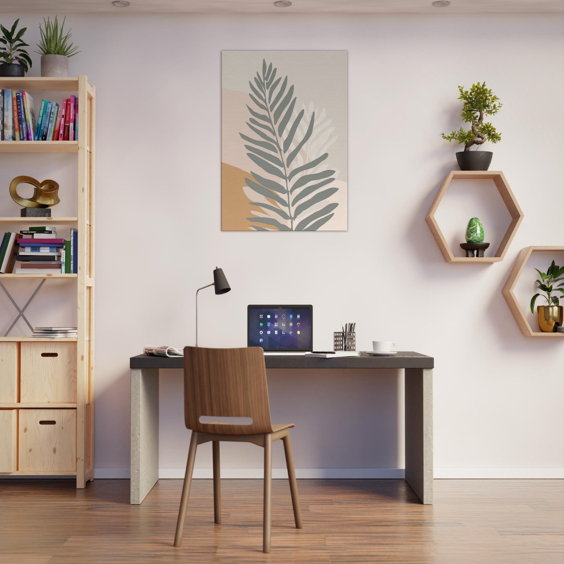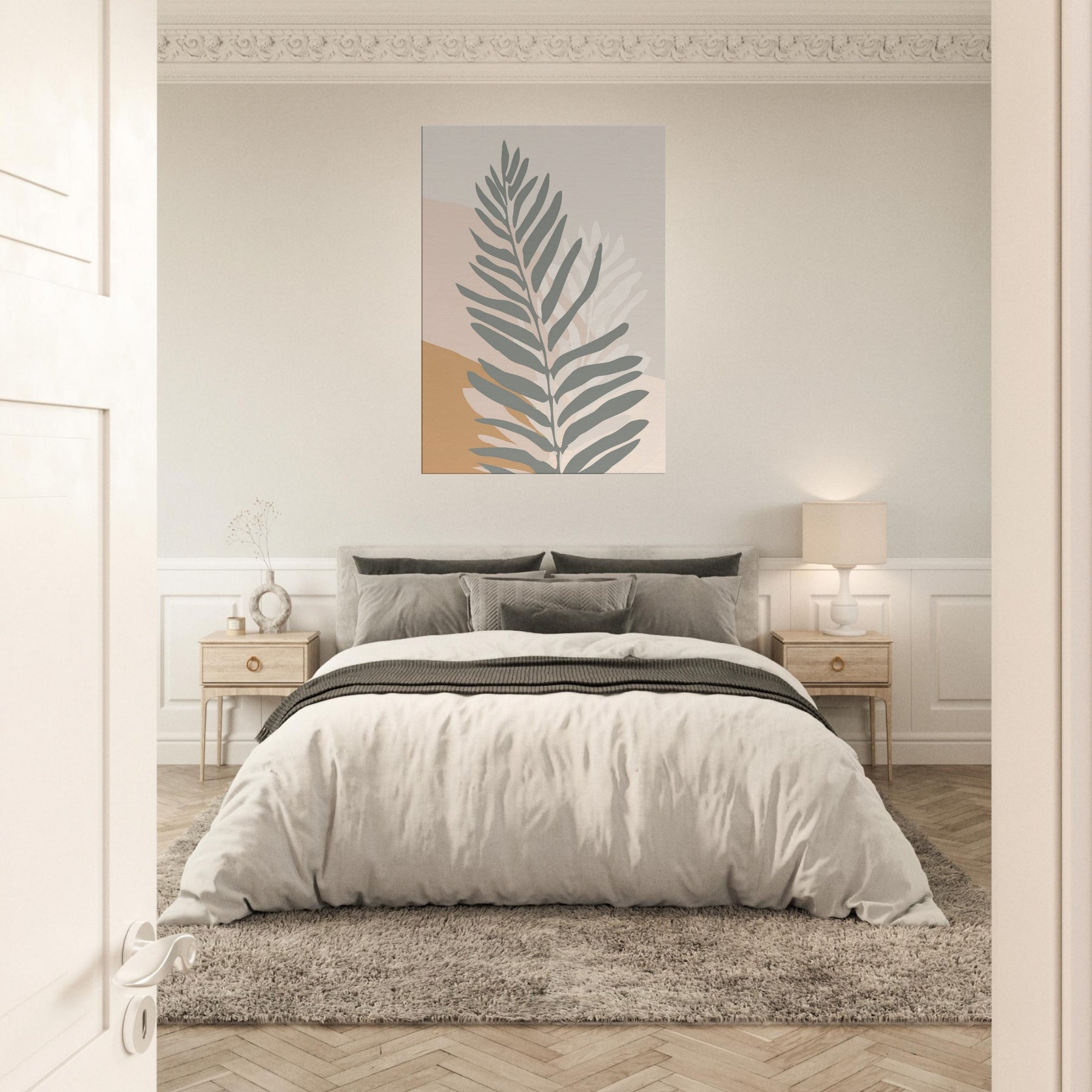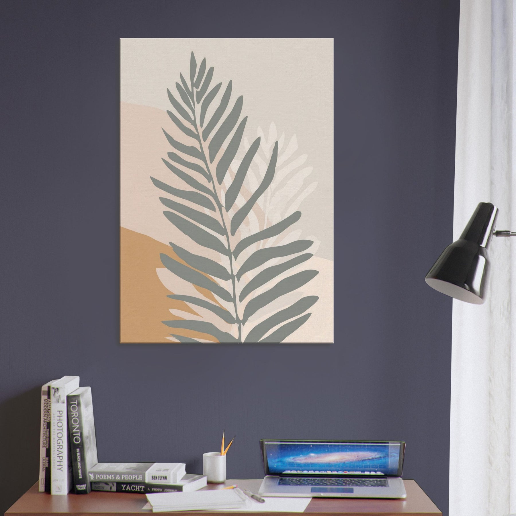 Fern takes center stage as a quiet breath of nature, reduced to clean lines and soft neutrals. This minimalist composition wraps a room in calm the cool gray green fronds standing against warm sand tones, creating space and stillness. It invites sunlight to dance, casting gentle shadows that deepen the atmosphere without shouting. The Fern print becomes a subtle anchor in living spaces or bedrooms, guiding the eye, soothing the senses, and elevating everyday moments with understated elegance.