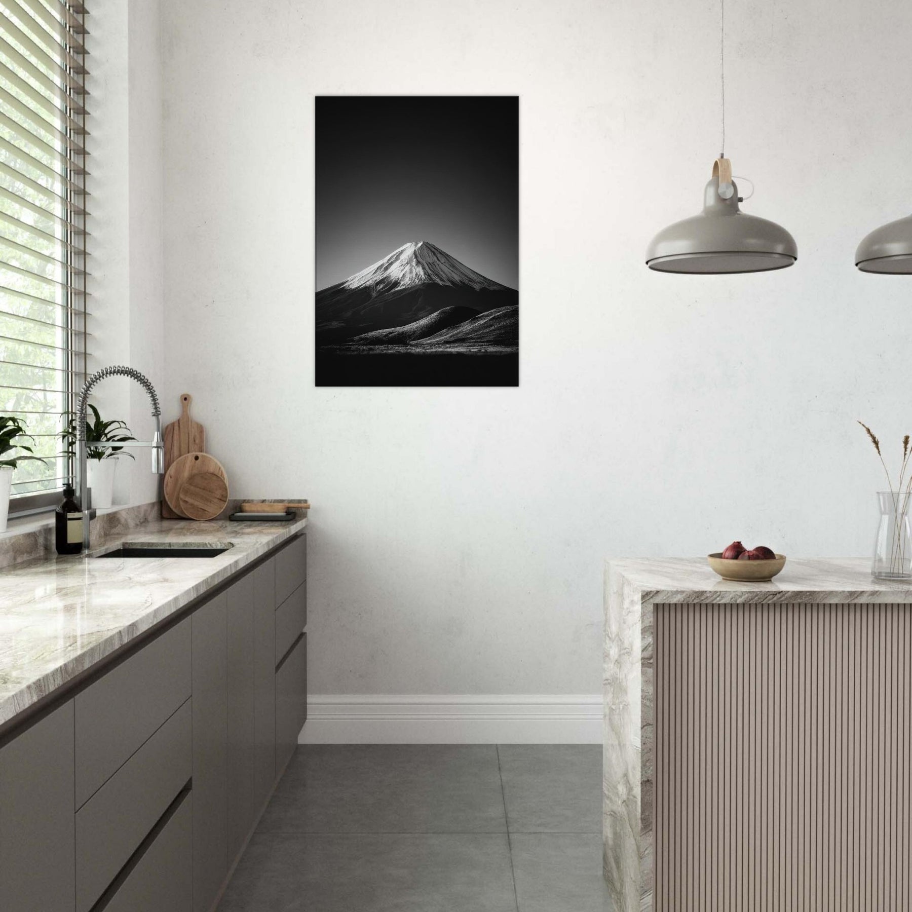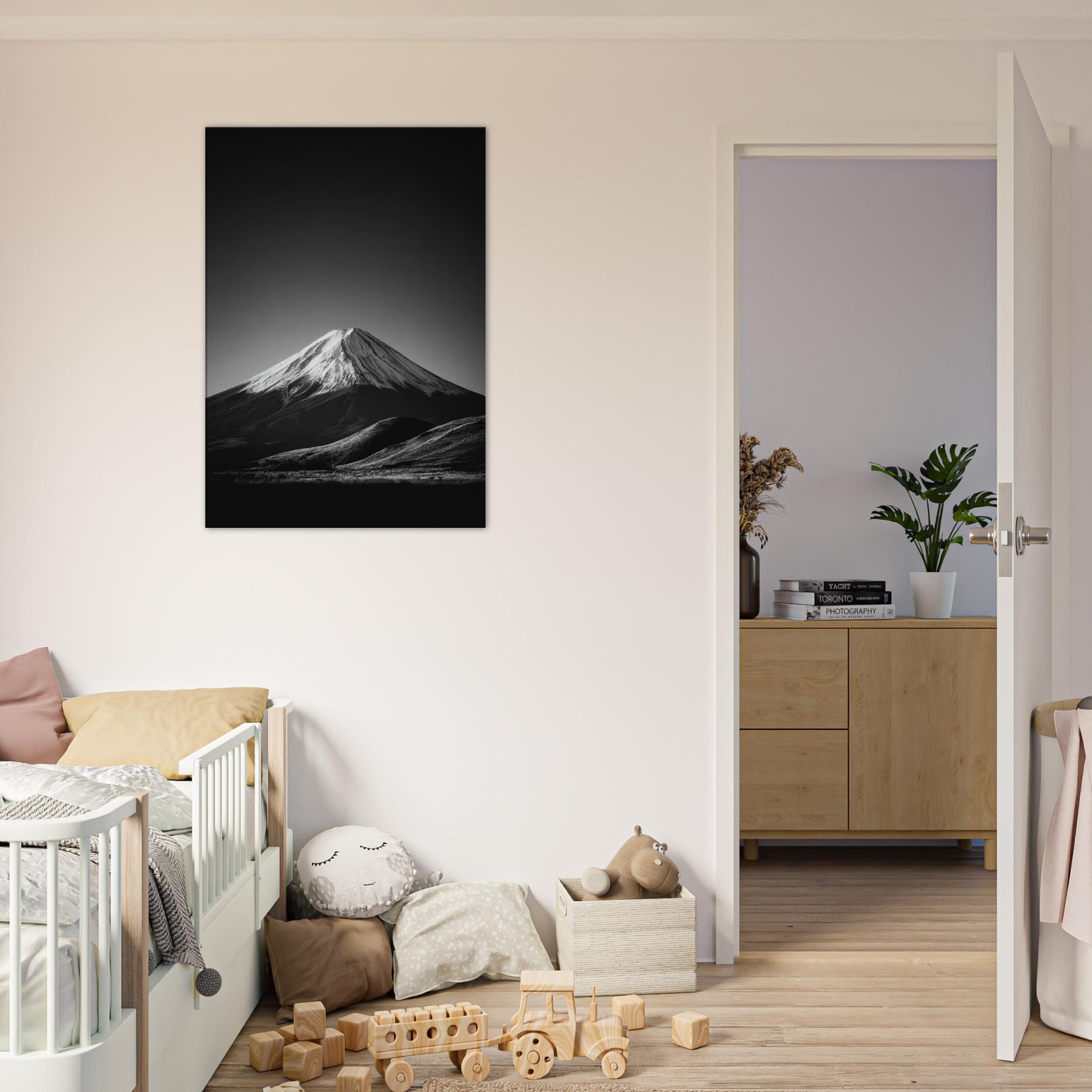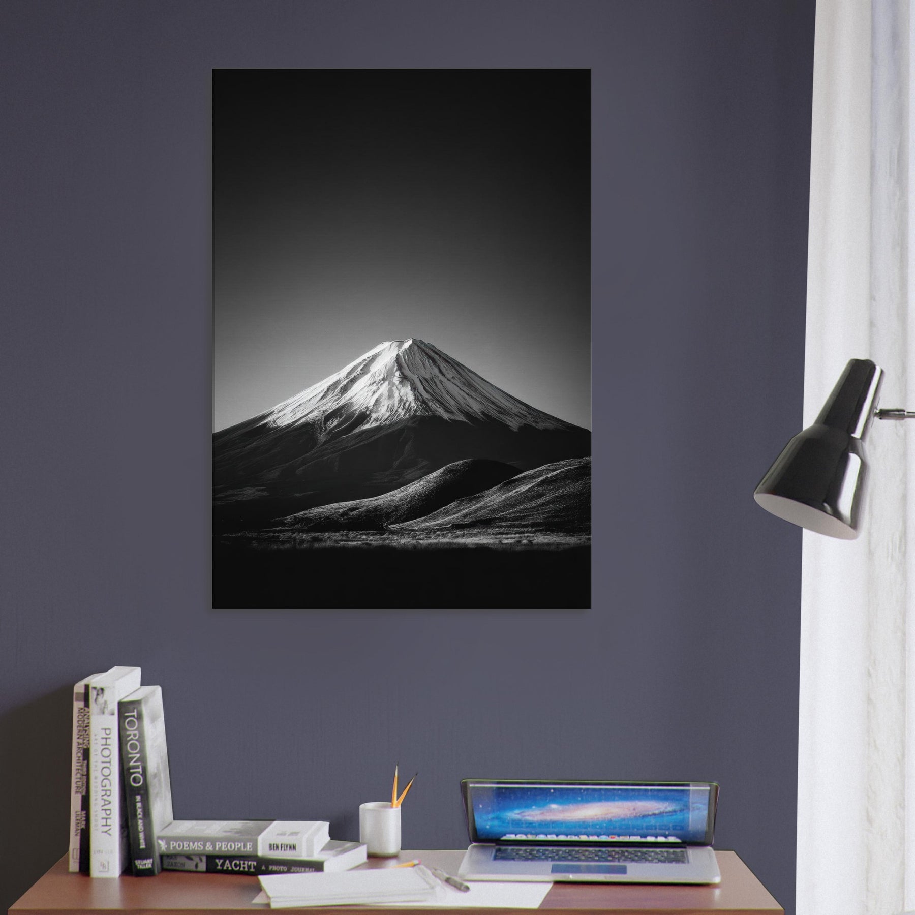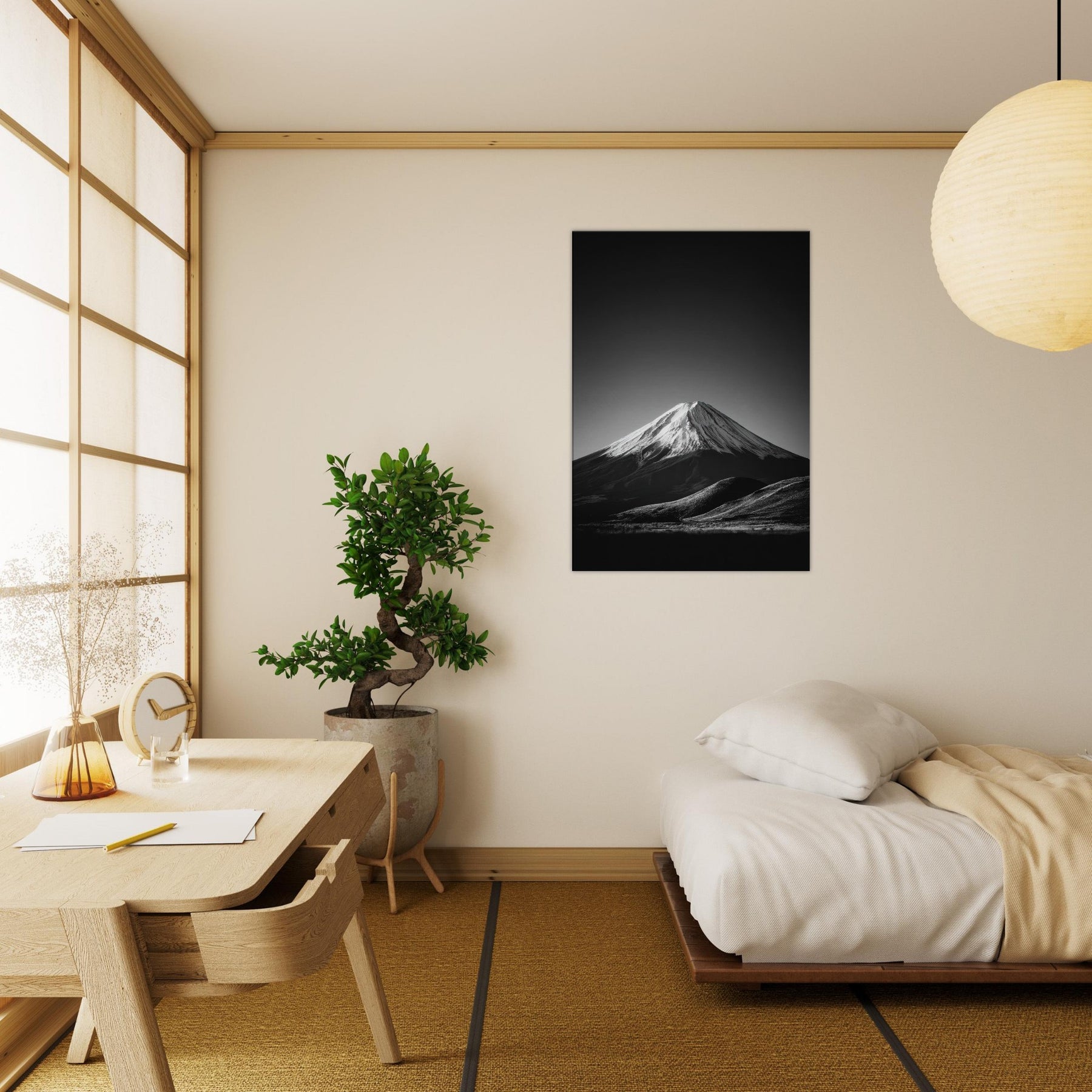 Mount Fuji rises in quiet command, rendered in black and white to reveal breath and texture rather than color. This monochrome portrayal invites a contemplative stillness, where snow kissed ridges glow like etched ink and the valley folds drift into soft shadow. Hang it in a living room or study to summon dawn’s hush, a sense of vast horizon, and the subtle drama of nature’s quiet balance. A timeless focal point that complements modern furnishings while nourishing calm, reflective spaces.