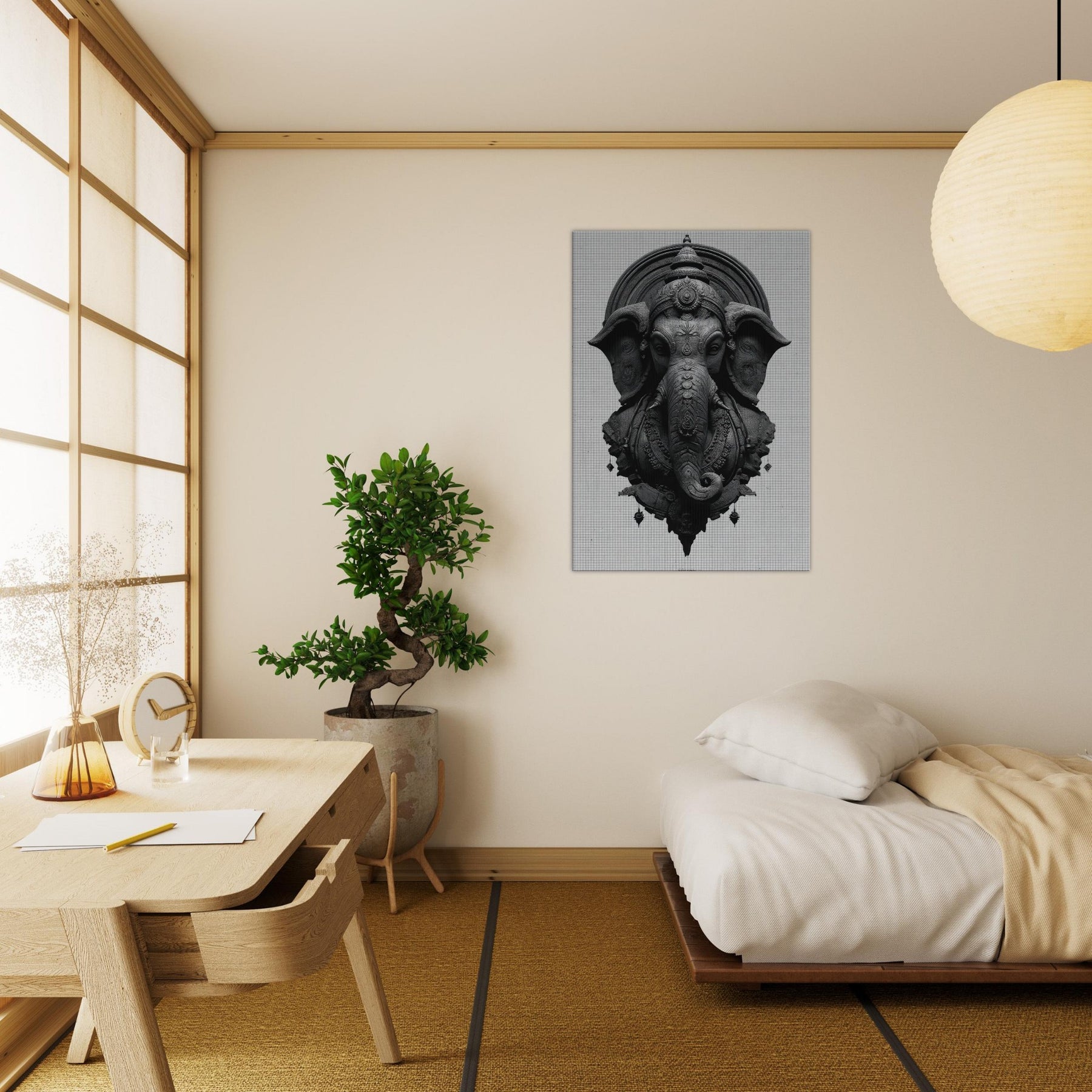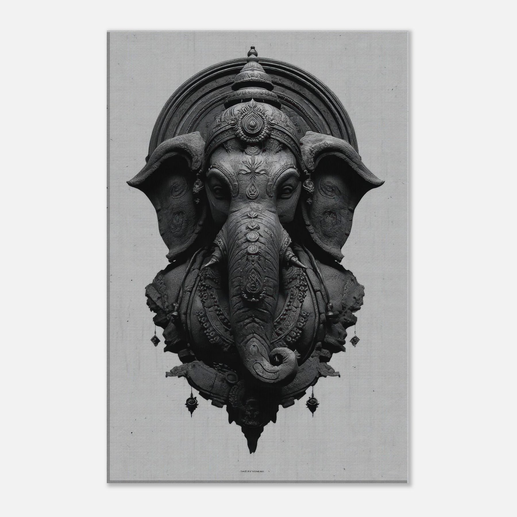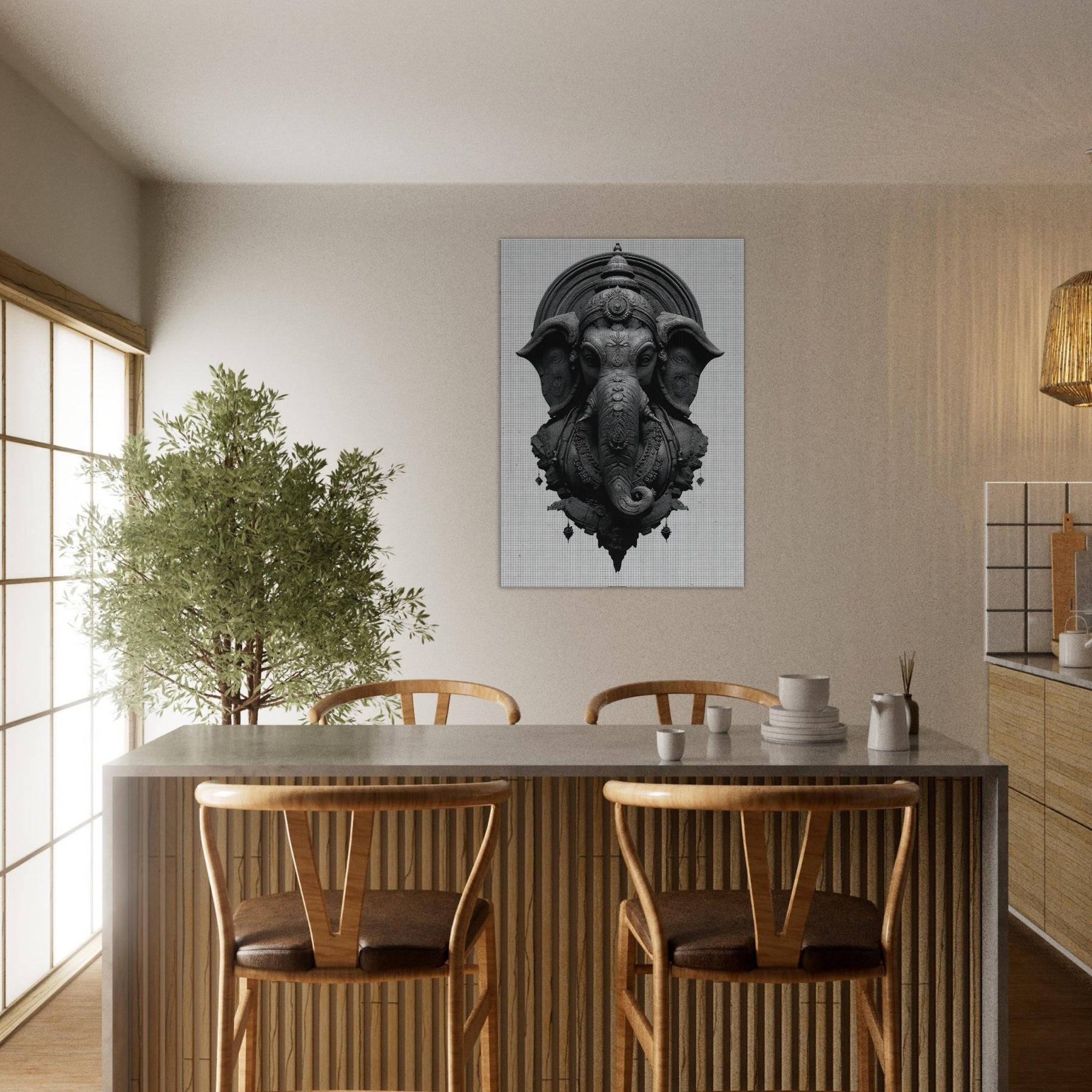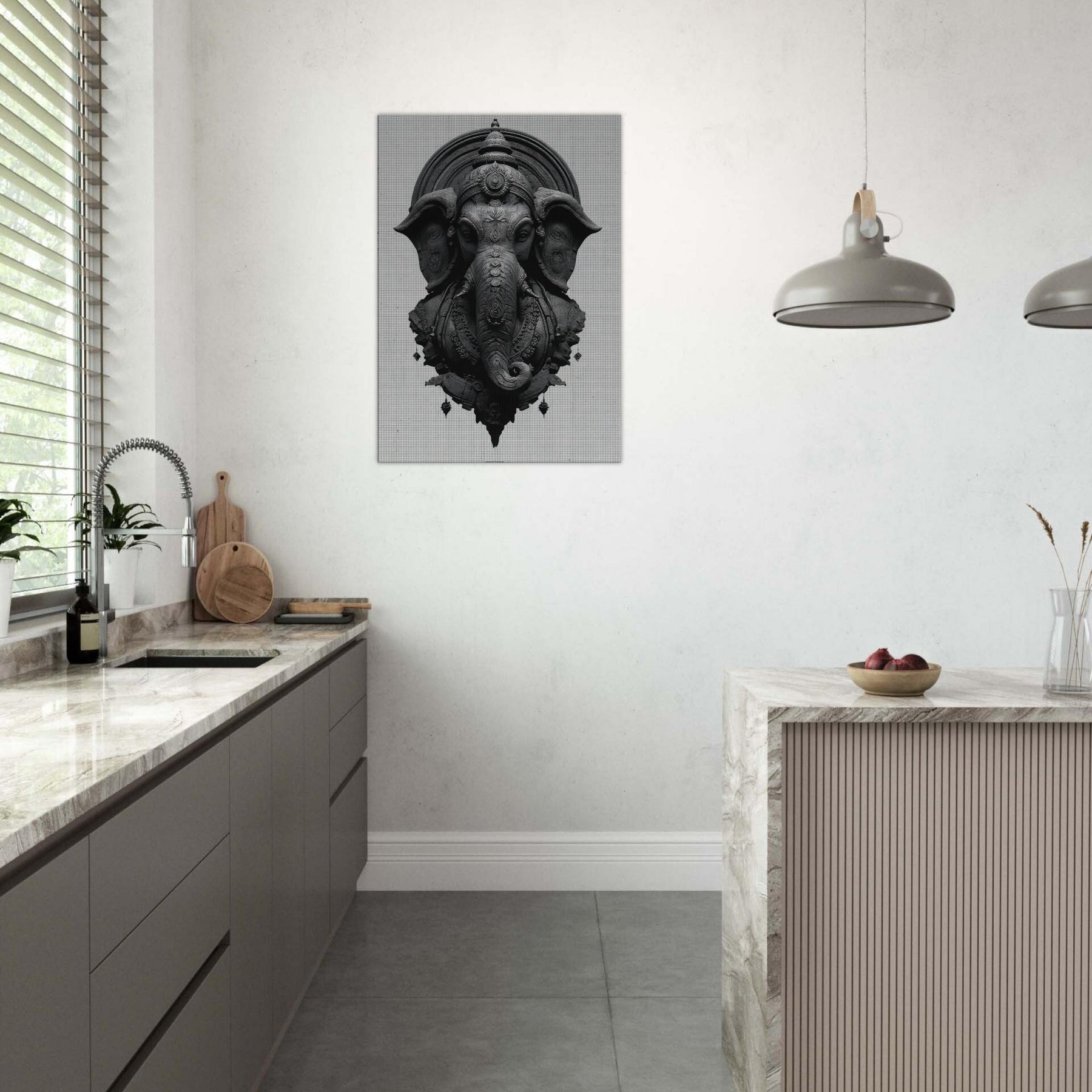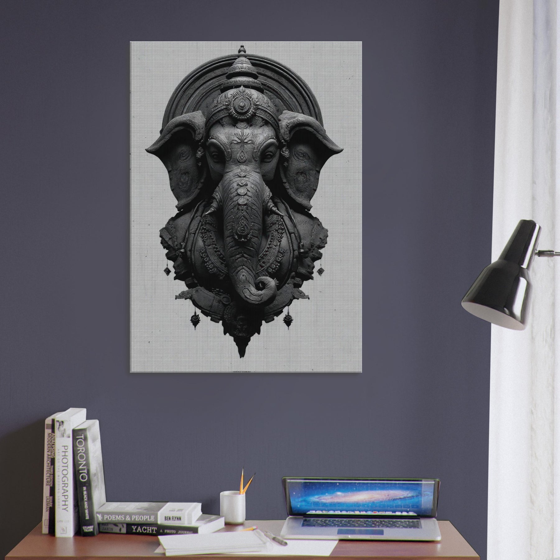 Rendered in stark black and white, this Ganesha study invites stillness into any room. The sculpture's ornate, ceremonial details rise with quiet authority, casting soft shadows that feel like a whispered mantra. Its symmetrical balance and mystic presence create a focal point of calm, turning a living space into a meditative retreat. Perfect above a mantel or beside a reading nook, it nourishes curiosity, invites contemplation, and elevates everyday moments with refined, timeless grace.