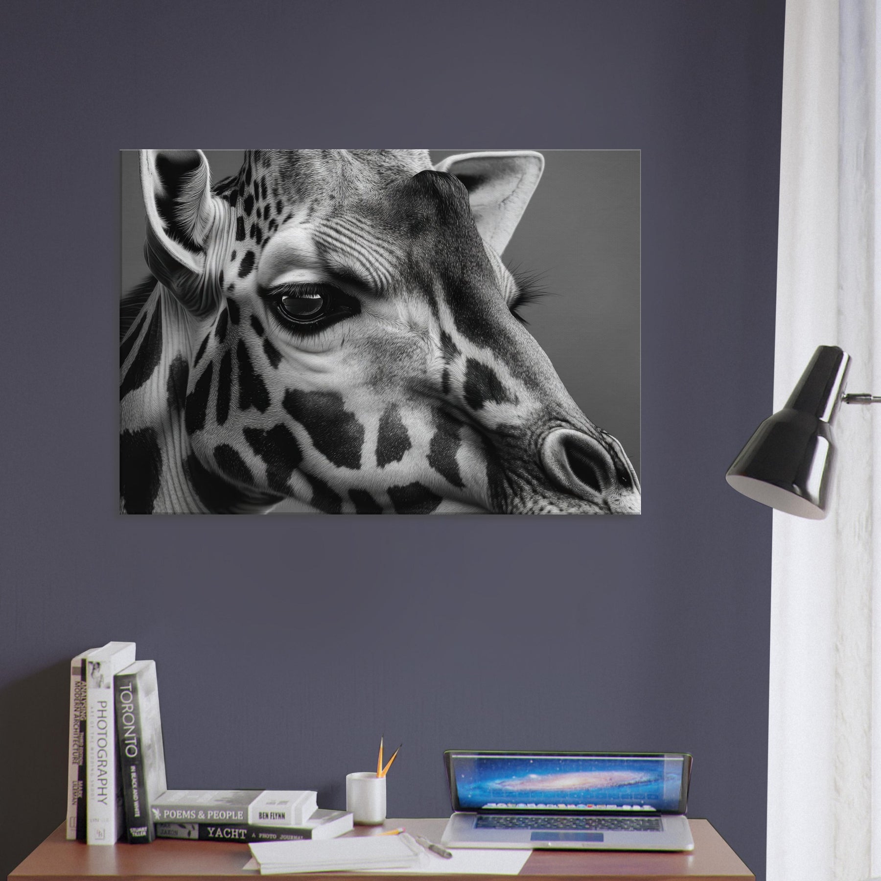 In this black and white study, the Giraffe becomes a whisper of form and light, a poised silhouette inviting calm and contemplation. The crisp lines trace every ridge of skin and eyelash, revealing a quiet intelligence as if the savannah had learned to breathe in shadow. Hang this statement piece where morning sun or evening glow can curl around its contours, and watch a living space soften into a gallery of minimal grace, where the Giraffe lends balance, mystery, and timeless presence.