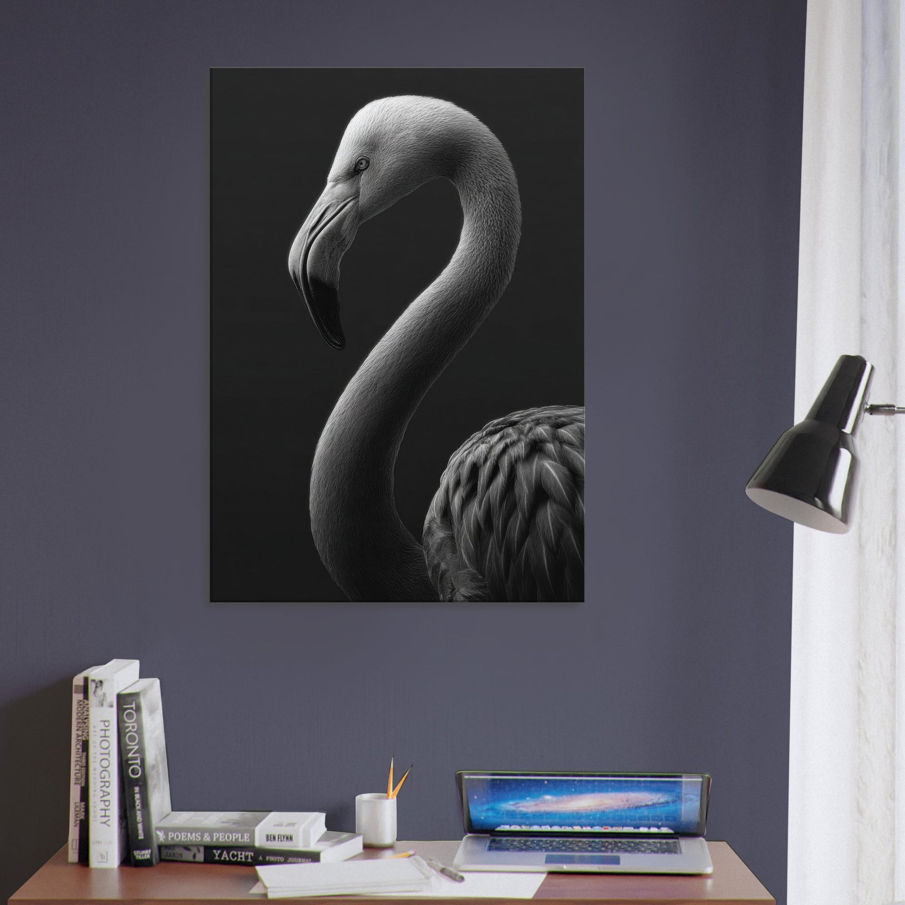 Let the Flamingo silhouette in monochrome walk with you through your living space. This piece captures a poised, almost lyrical presence its elegant neck arcs and feather textures rendered in stark black and white. The absence of color heightens mood: serene, contemplative, and effortlessly chic. Perfect above a sofa or in a quiet hallway, it invites slower breaths, a moment of stillness amid modern rhythms, turning walls into a gallery of grace and restraint.