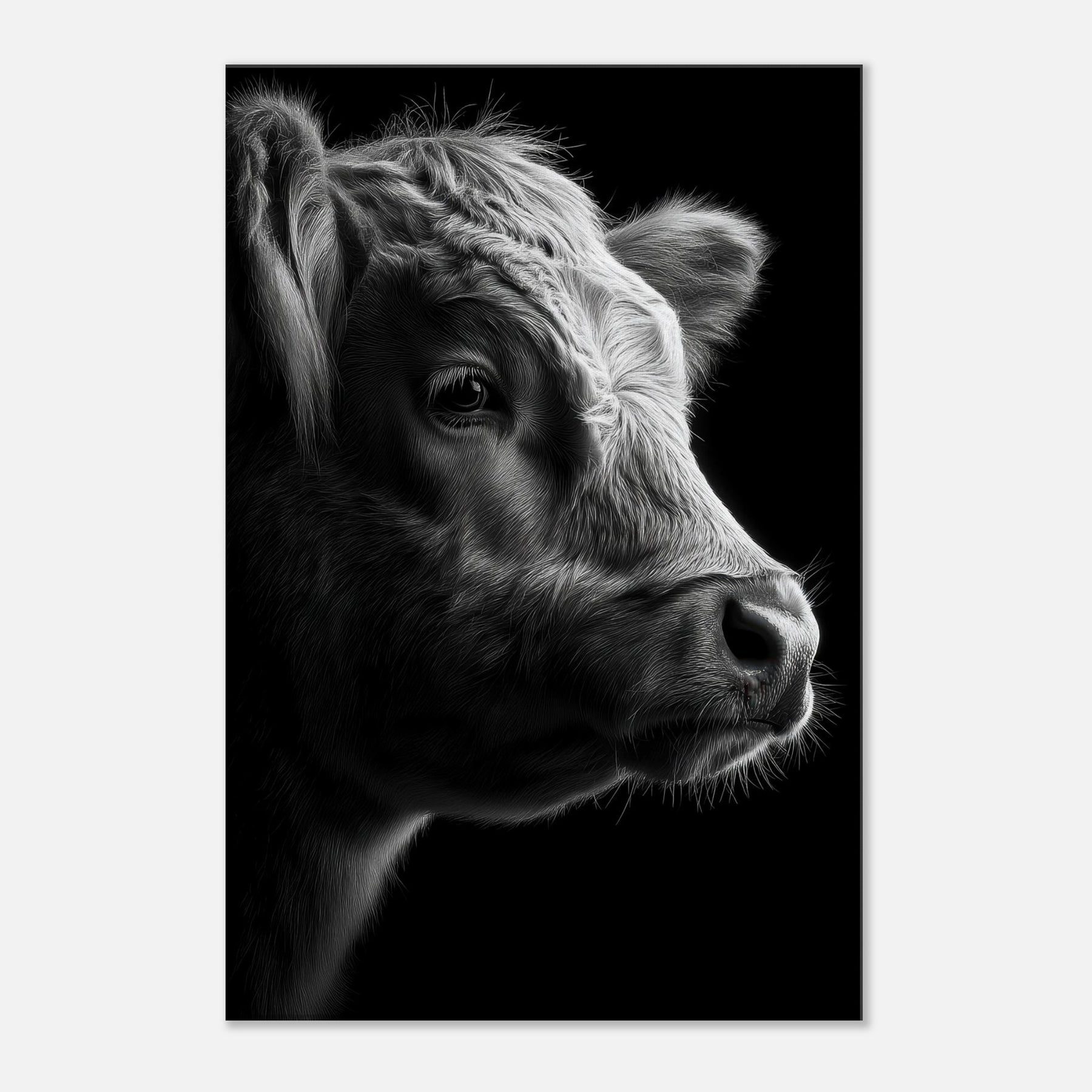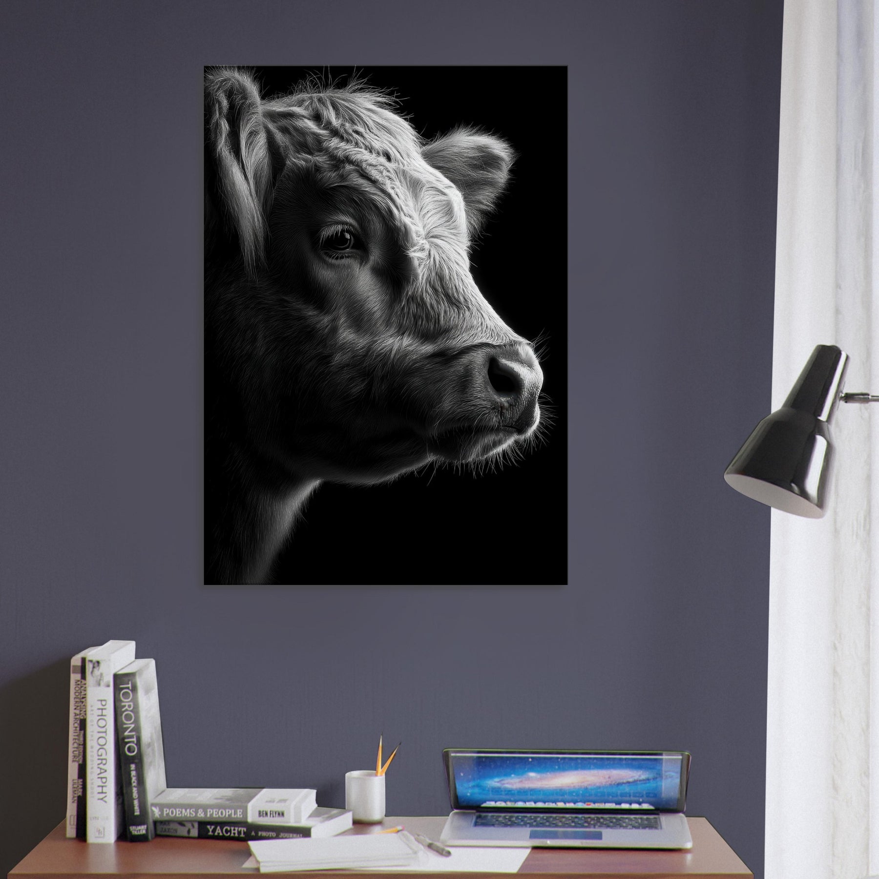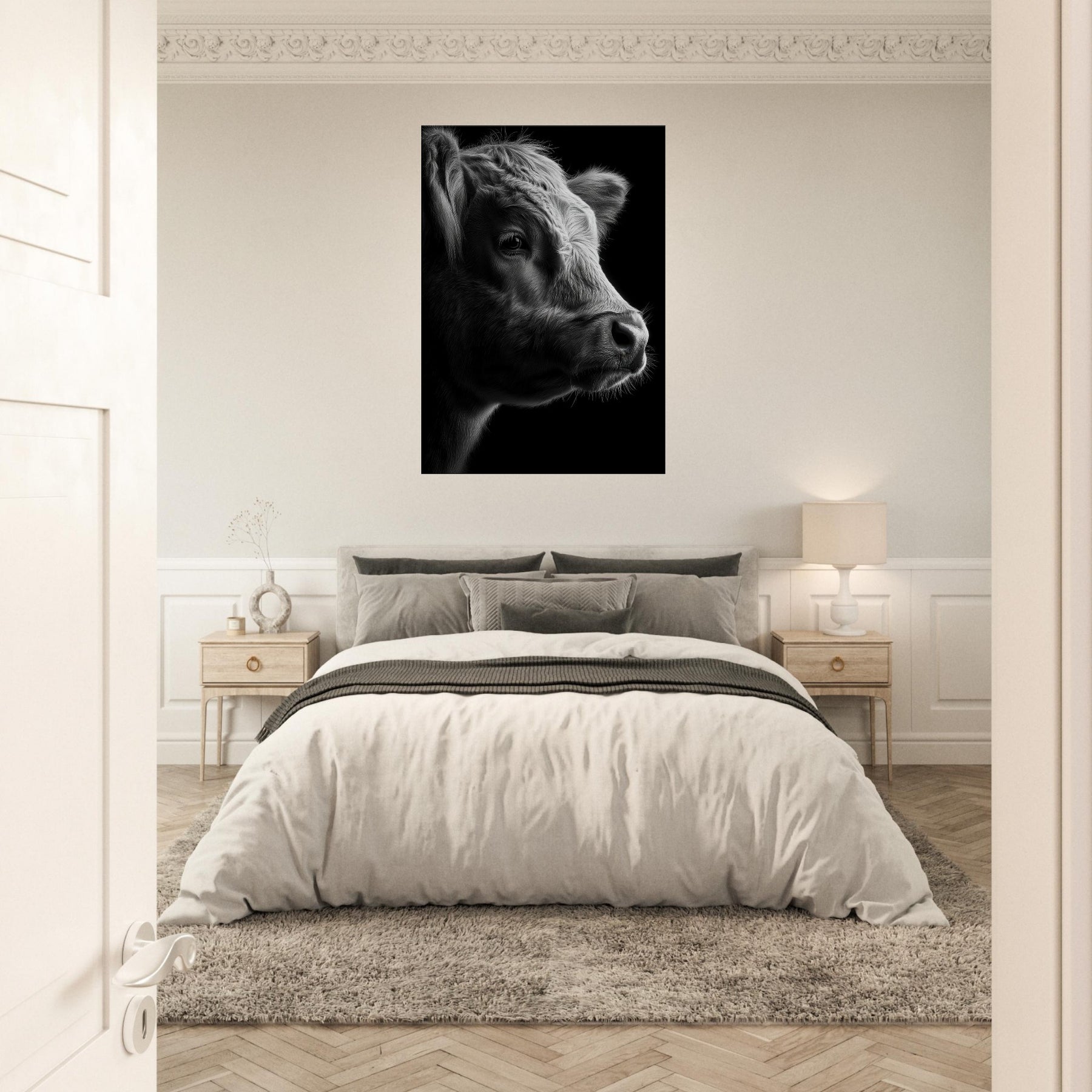 As the Primary Subject: Highland Cow, this stark black and white invites a quiet, contemplative mood into your living space. The fur's every ridge and the curve of the snout emerge in luminous detail, like a whispered memory of the countryside. The image carries the stillness of dawn, the weight of history, and a tactile sense of breath in rhythm with your room. Hang it where soft, reflective light can skim the textures, and let the atmosphere unfold restful, elegant, enduring.