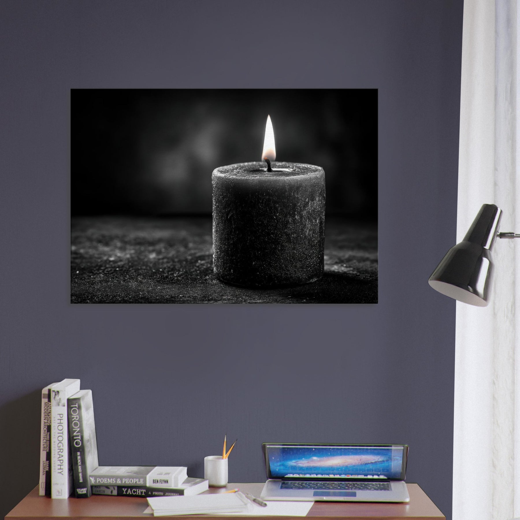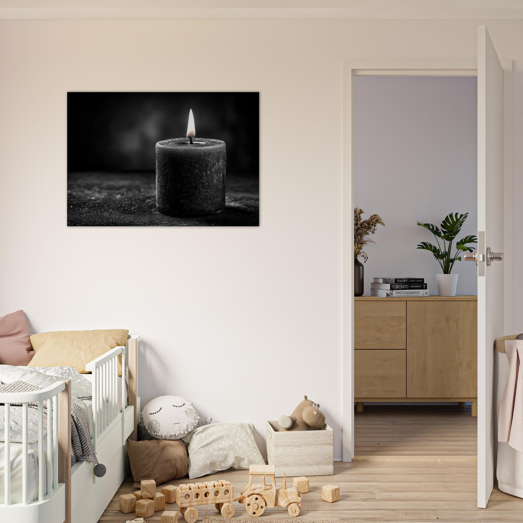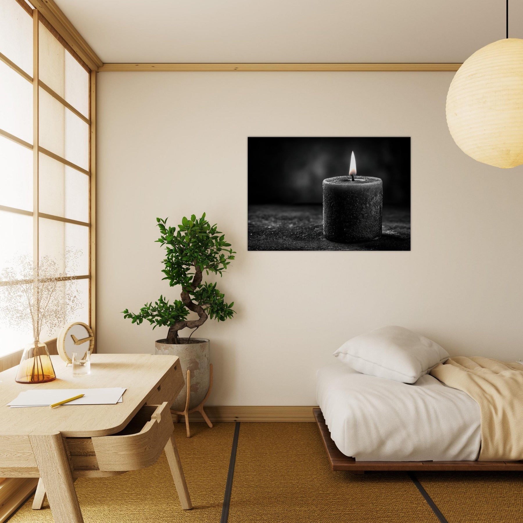 Soft light emerges from a solitary Candle With Halo, rendered in stark black and white that feels like a memory given form. Its powdered glaze and quiet flame summon a sacred hush, turning a plain wall into a vignette of breath and stillness. The Candle With Halo radiates calm authority, inviting contemplation without shouting. In a living room or bedroom, this piece elevates evenings with ritual warmth, timeless clarity, and a gentle, luminous focus that anchors space and mood alike.