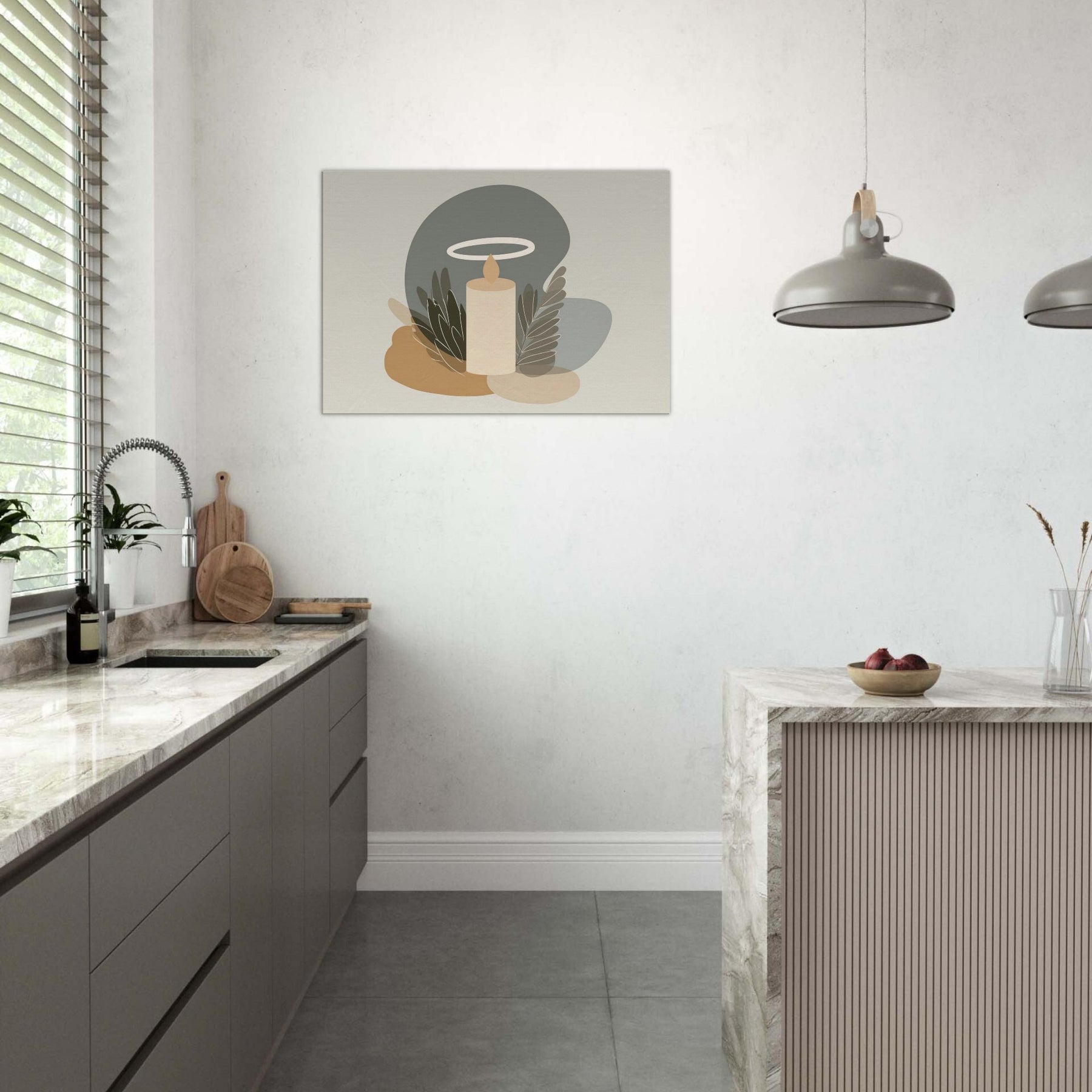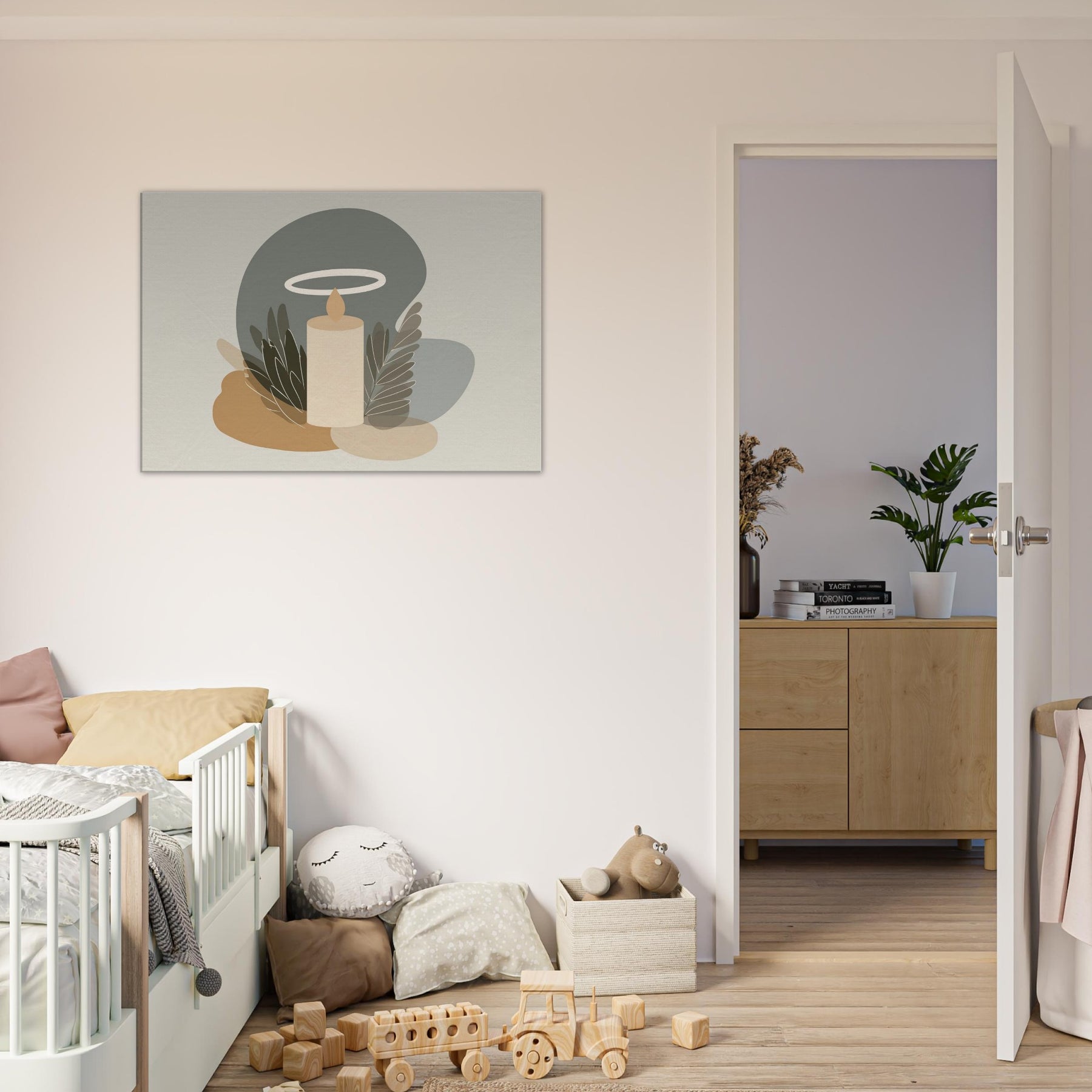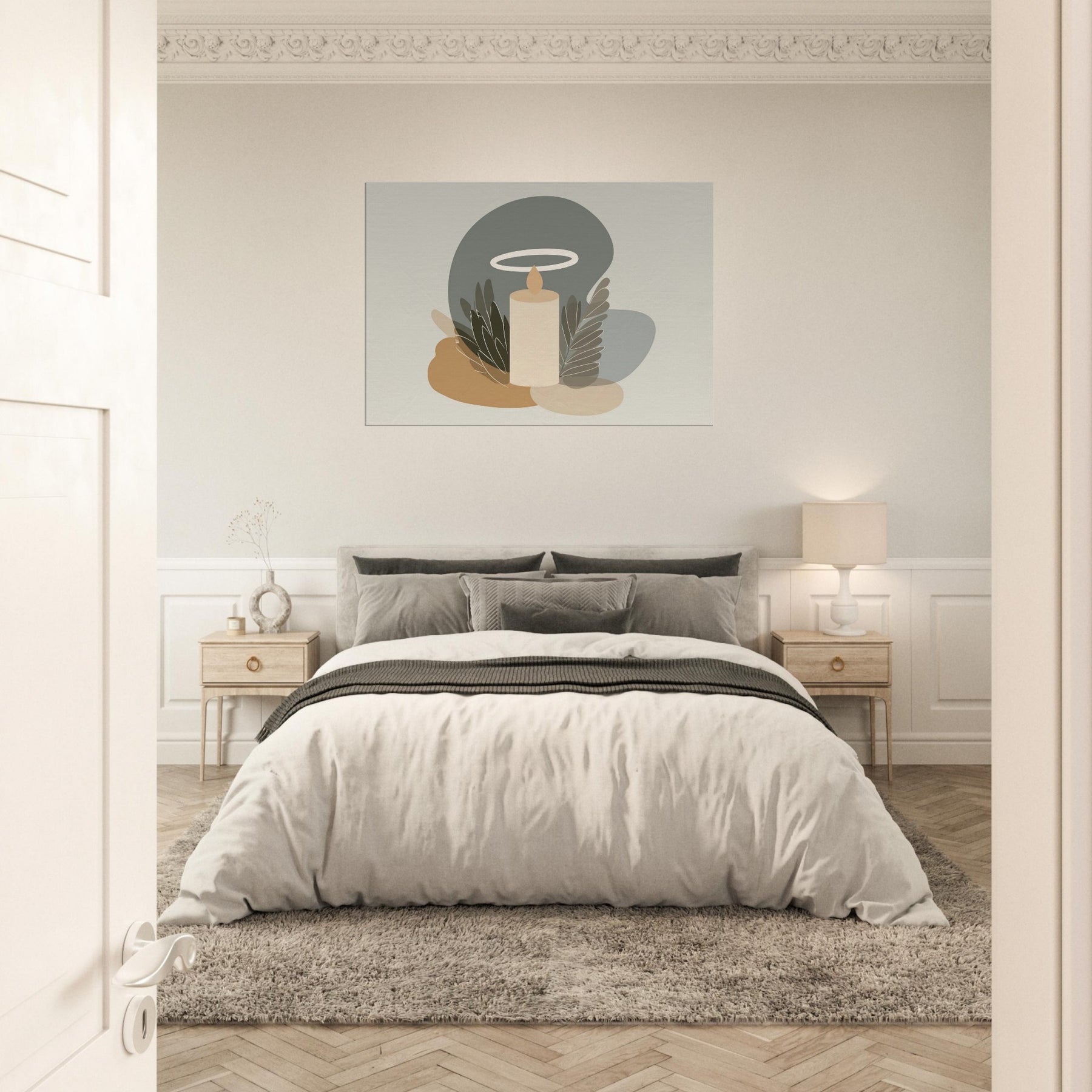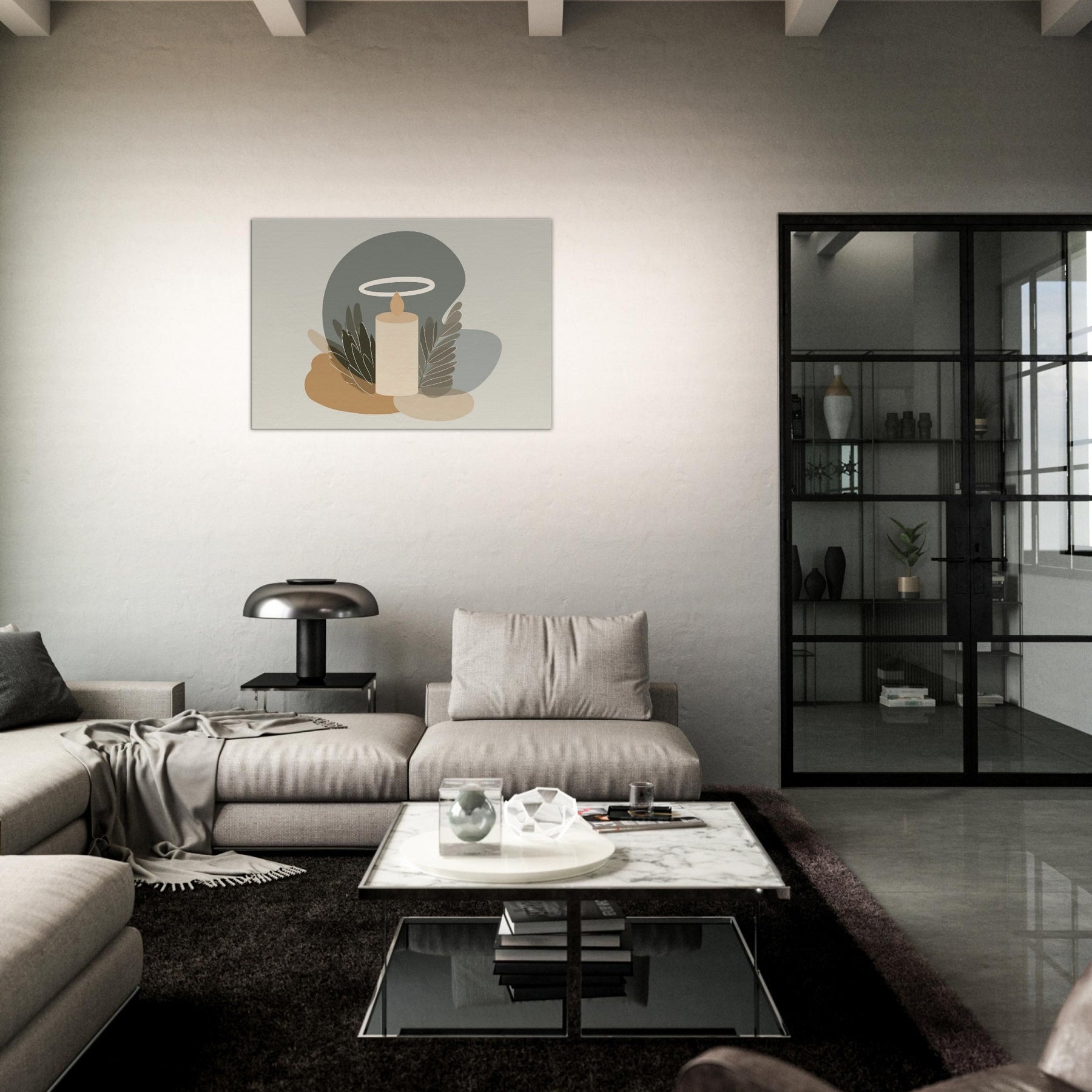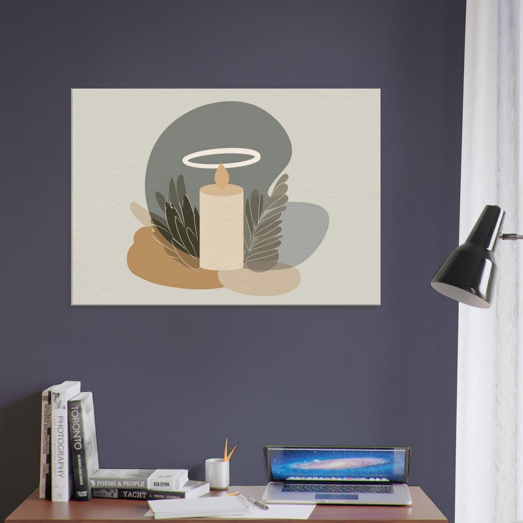 Candle with Halo rests at the center of a calm, color washed scene. The minimalist forms soften into warm neutrals, inviting a moment of stillness as soft light lingers on the walls. This serene composition captures a quiet halo, turning a simple gesture candles burning into a timeless presence. Hang it in a living room, studio, or bedroom to conjure a gentle glow, reduce clutter, and elevate mood. The Candle with Halo becomes a subtle focal point, a whisper of warmth in modern interiors.