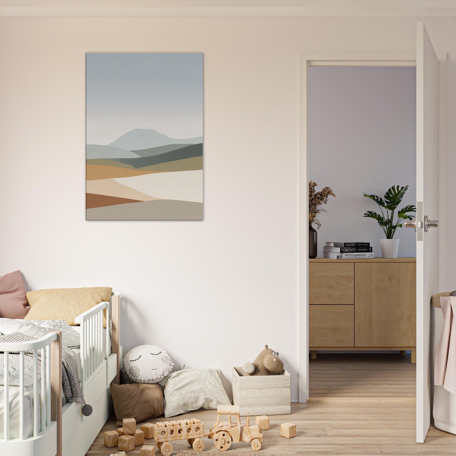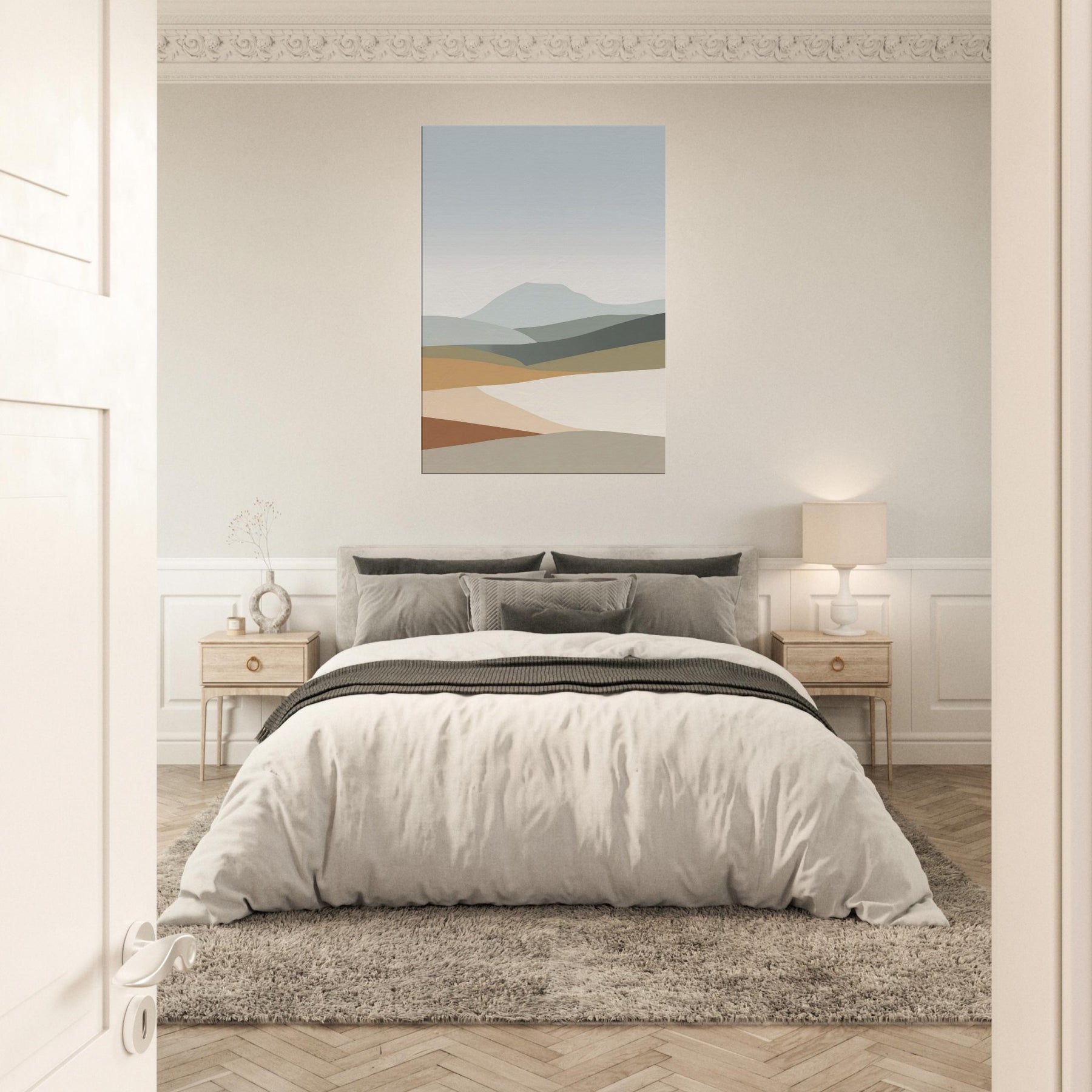 A minimalist meditation in color and space, this Hills washes the room with quiet light and soft, layered horizons. The gentle hills roll across the canvas in muted greens, creams, and browns, inviting slow breaths and stillness. Perfect for a living room or bedroom, it pairs with natural textures to create a serene corner, a visual lullaby that makes daily rituals feel gentler and longer. Let the subject Hills become a quiet anchor for conversations and calm.