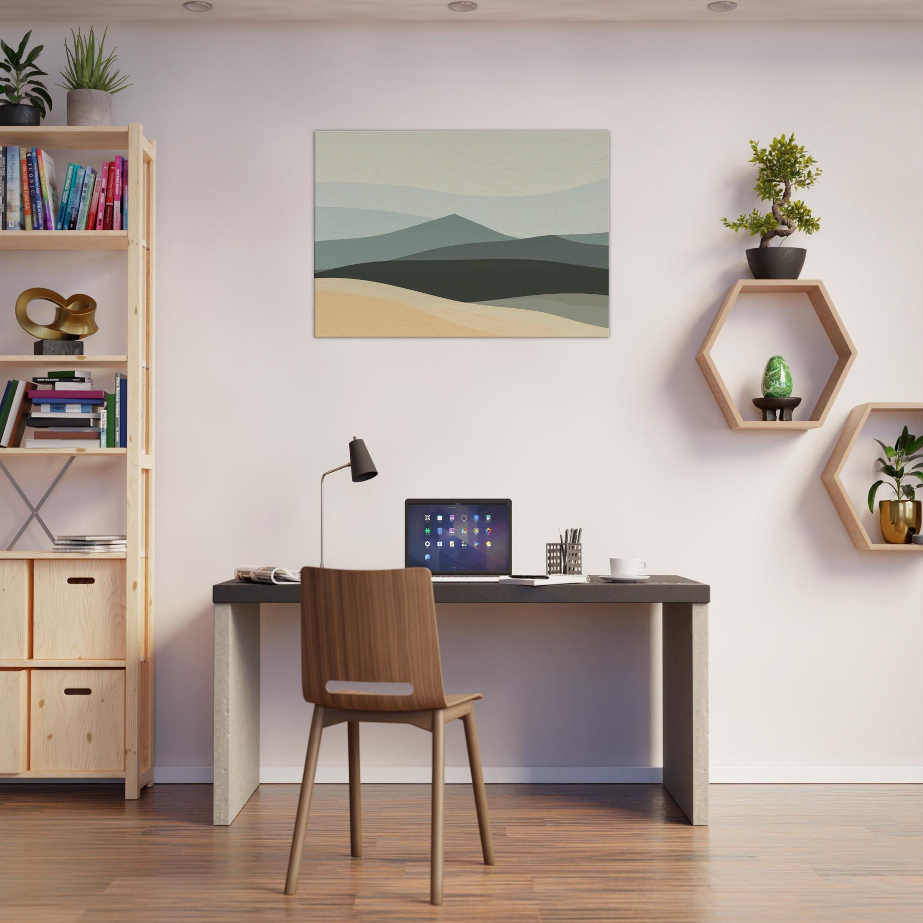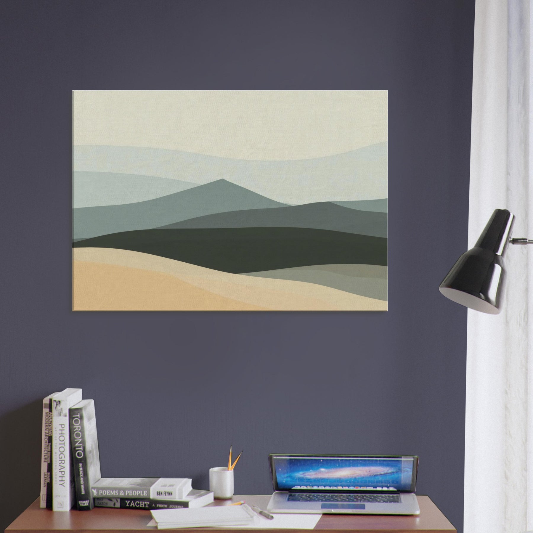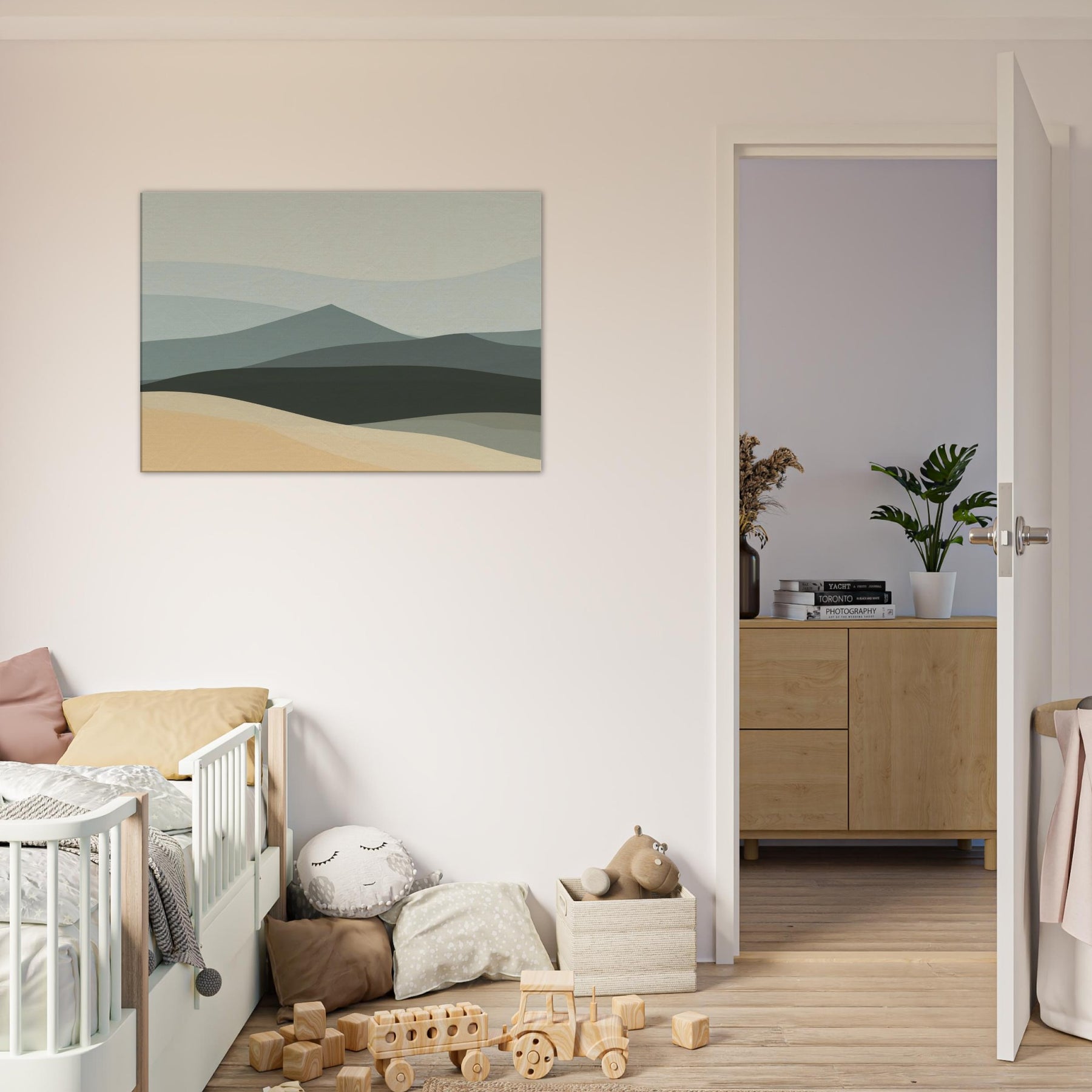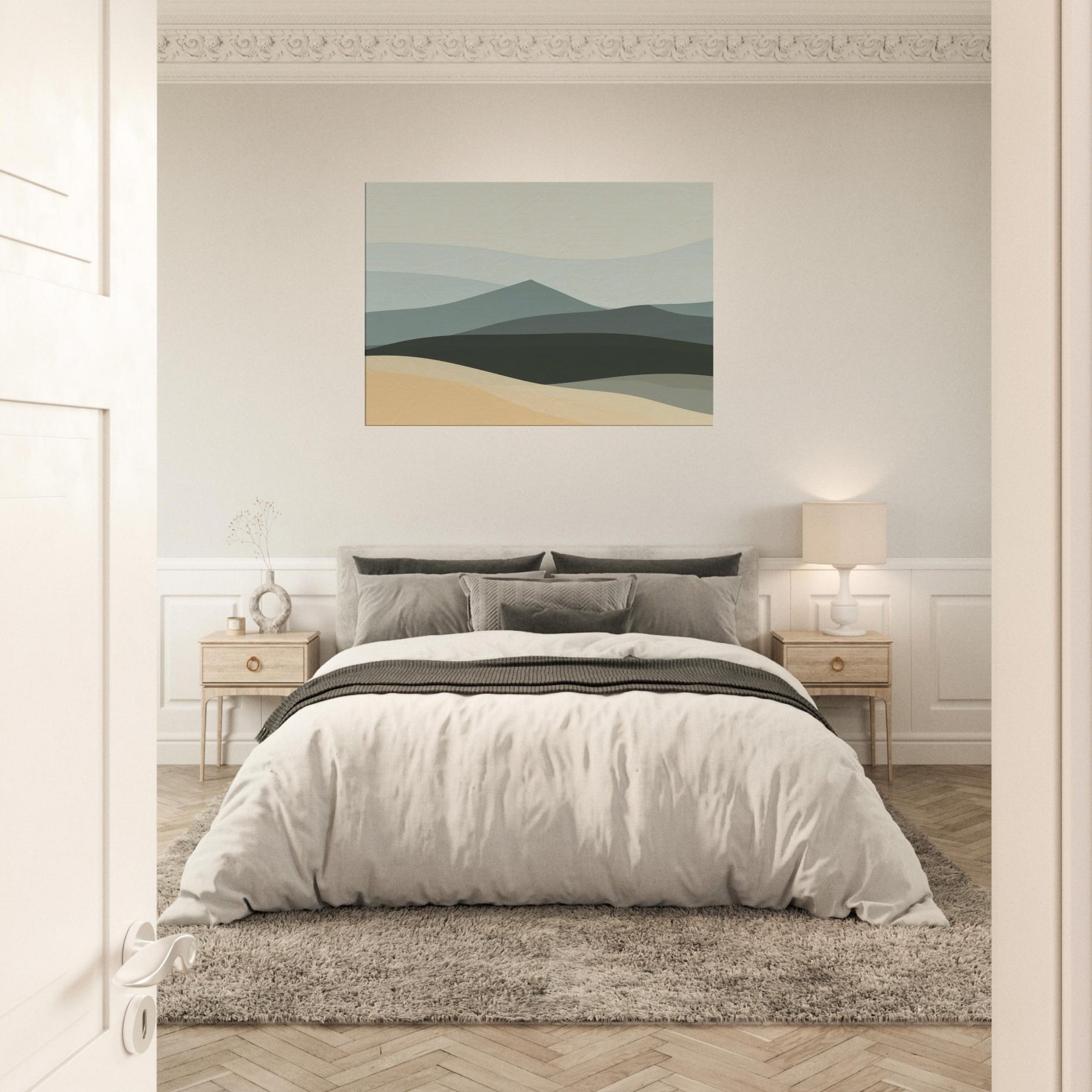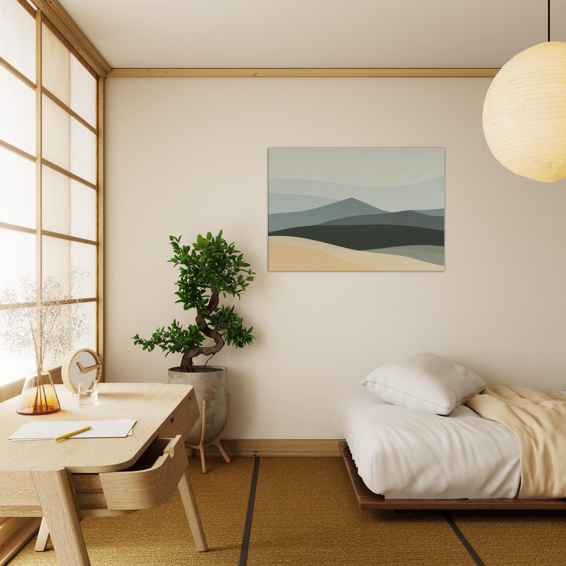 An airy hillside keeps its quiet watch, inviting calm into your living space. The Hills breathe with soft, layered tones that shift like pale dawn across a tranquil horizon. This minimalist offers a generous negative space that slows the eye, turning walls into a window of quiet reflection. Hang it in a living room or bedroom to ground the room with understated elegance, inviting conversations about place, memory, and the gentle rhythm of nature.
